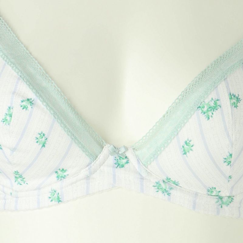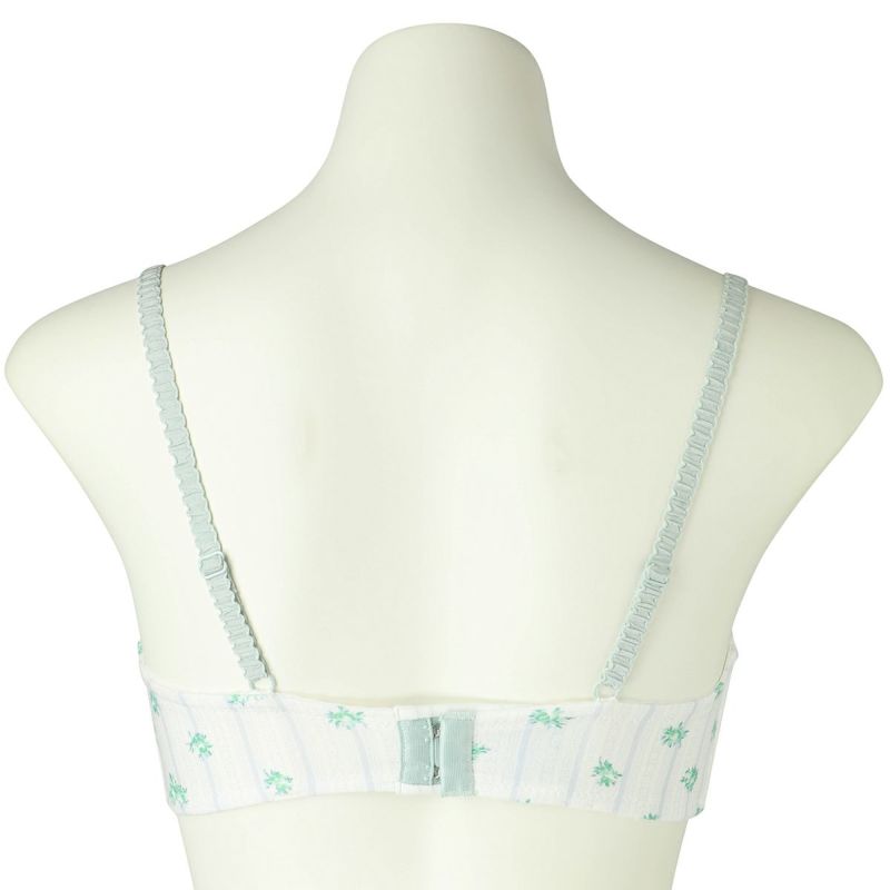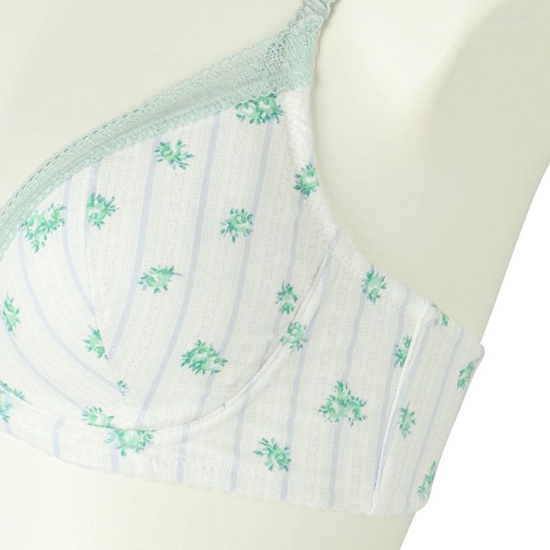 前中心の土台部分をクロス構造にすることで可動域も広くなり体の動きに沿ってくれるワイヤーブラジャー。サイズの許容が広く体型の変化にも対応する設計。バランスよく左右のバストをほどよくホールドしてくれます。広めのワイヤーで脇がはみ出やすい方にもおすすめ。肌に当たるフックアイの部分は綿ベア天でくるんだ特許仕様。