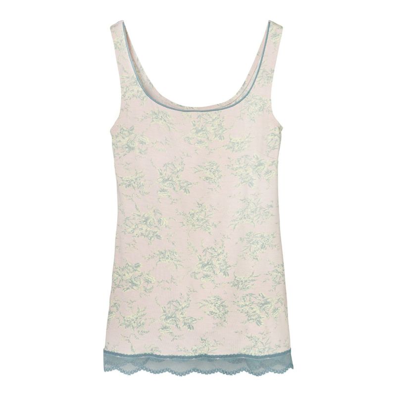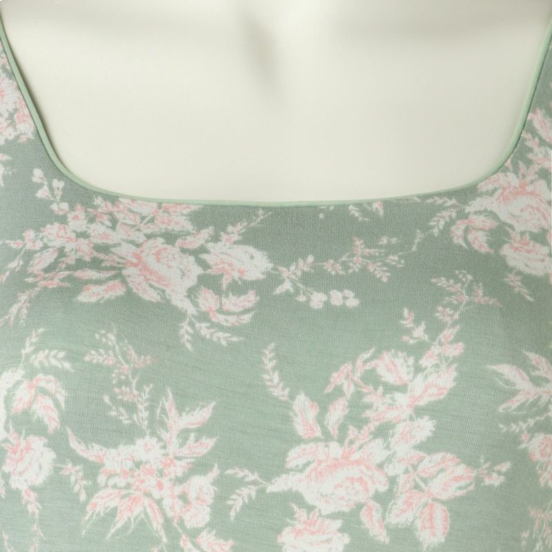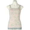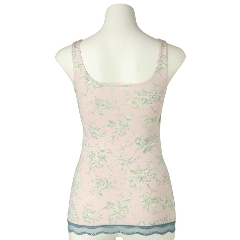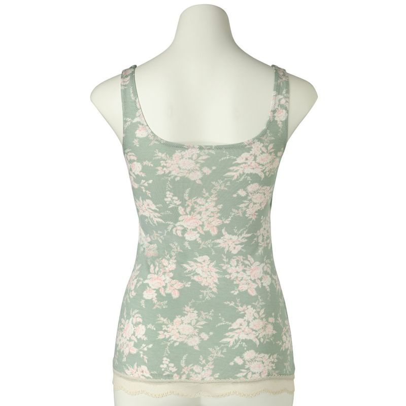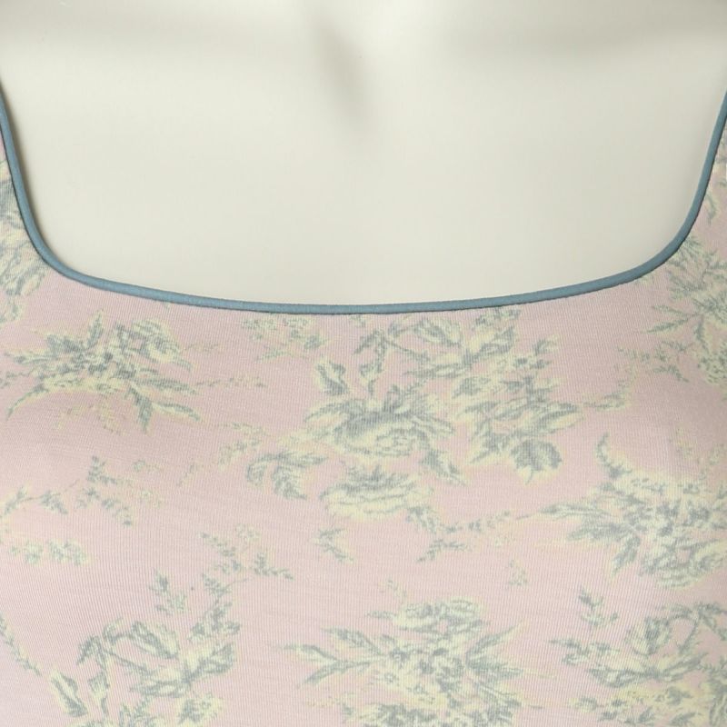 カップ付キャミソールは、インナーレスで1枚で着用できる便利なアイテム。パイピングを施したスクエアネックで透け感もなく下着見えしないのでルームウェアやシアーなトップスにくみ合わせても楽しめる。裏地が前のみの綿ベア天で肌に優しい仕様に。