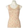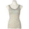 丸型パッド付きなのでブラジャー無しで1枚で着れる便利なアイテム。フロントから背中にかけたハシゴレースがポイント。カップ裏地が背中まであり適度なホールド感で洋服をすっきり着れる。カップ肌側裏地は綿ベア天。