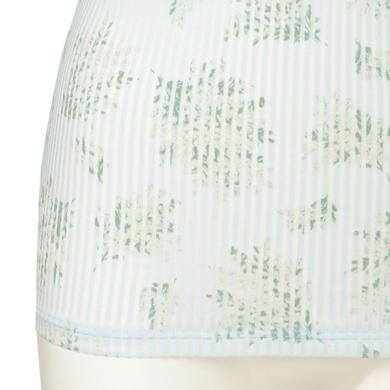 毎年人気のミモザインナーシリーズが登場。今年はストライプ地に繊細なミモザのブーケ柄をプリント。綿とエステルの交編ボーダーという凝った素材で、シアー感のあるデザインに仕上げました。春らしいレースカラーがフェミニンなアクセント◎
