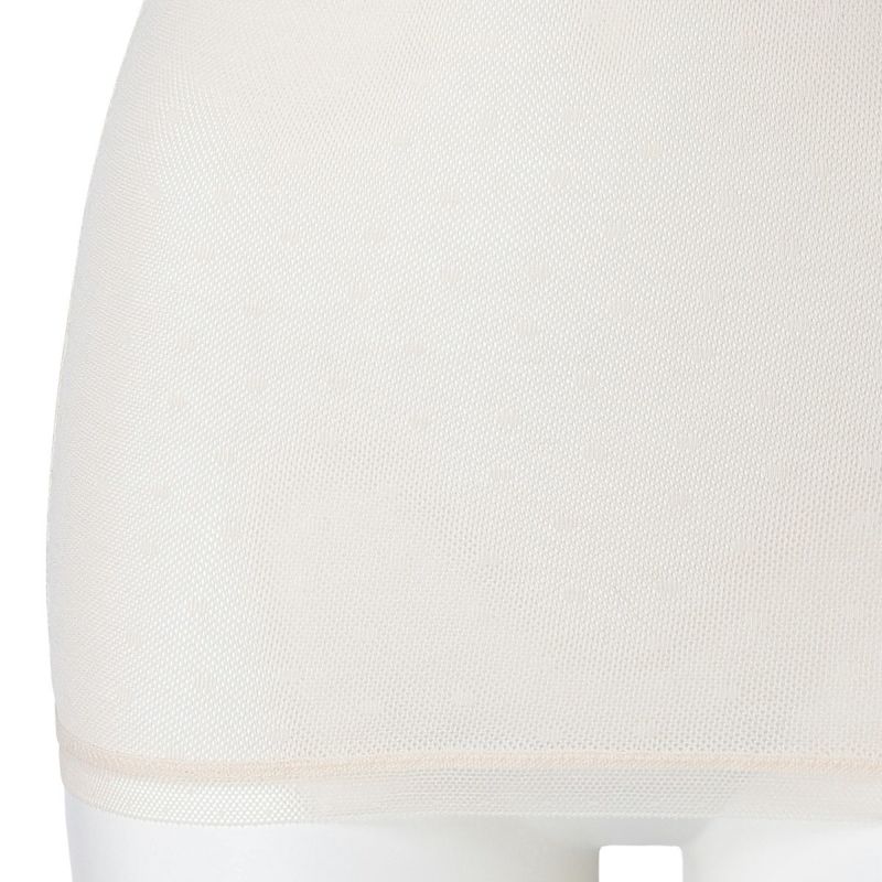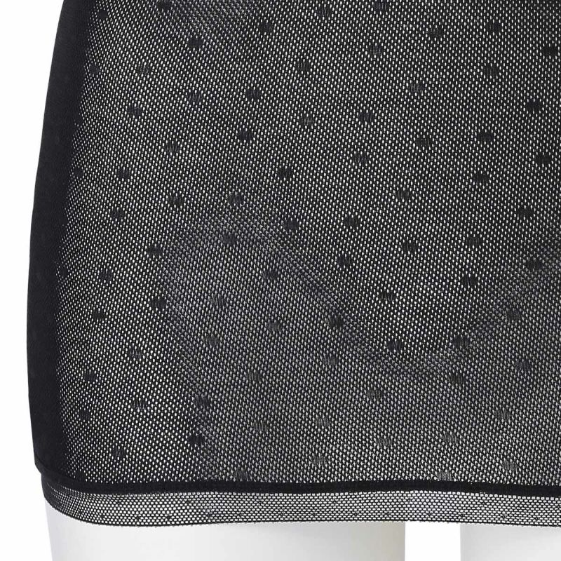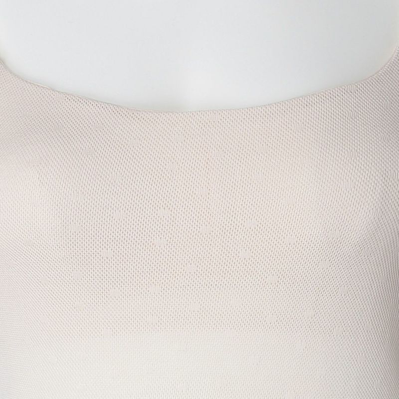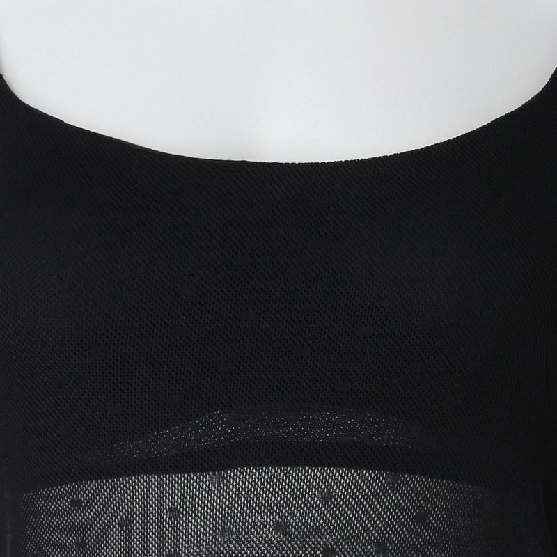 大人気だったドットメッシュ素材をドットのサイズを小さくしリニューアル。糸にシルケット加工を施すことで、きれいな風合いに仕上げ着用によるダレ感も軽減。メッシュの清涼感と通気性で蒸れやすい夏の時期におすすめ。さりげないドット柄をレースにも散りばめて上品な中にも可愛らしさをプラス。