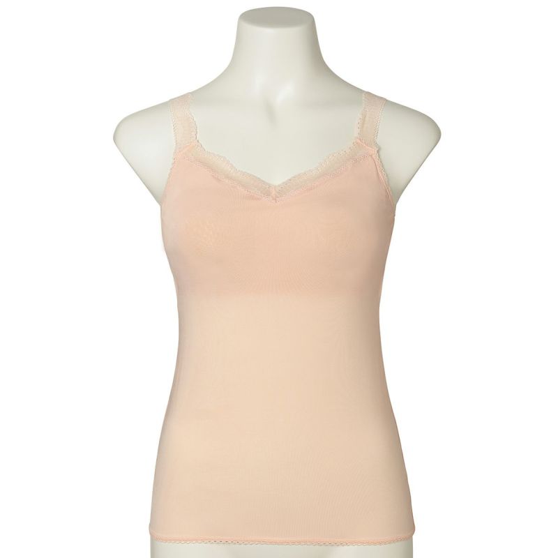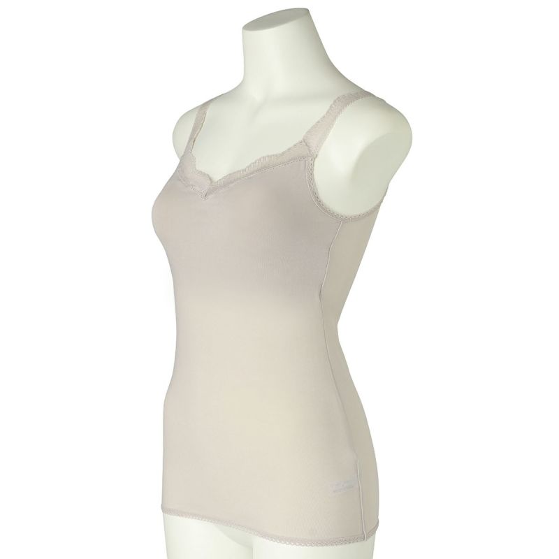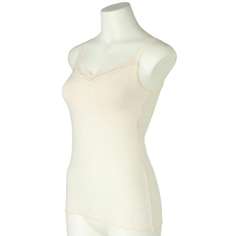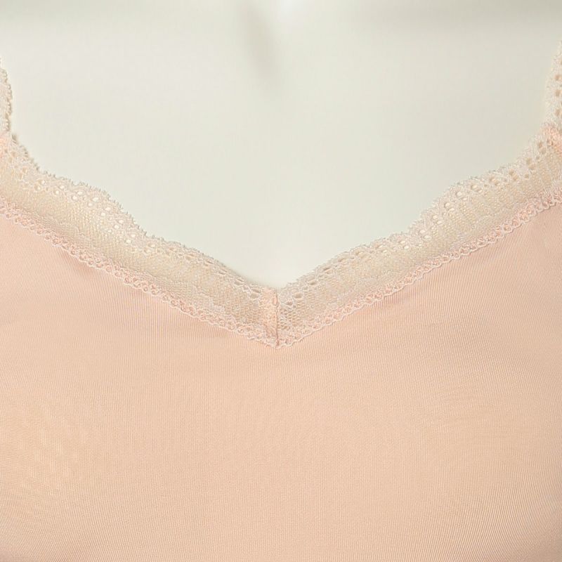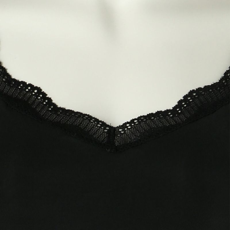 軽いV開きの取り外し可能のカップ付きのキャミソールは、ブラジャー無しで一枚で着れる便利なアイテム。