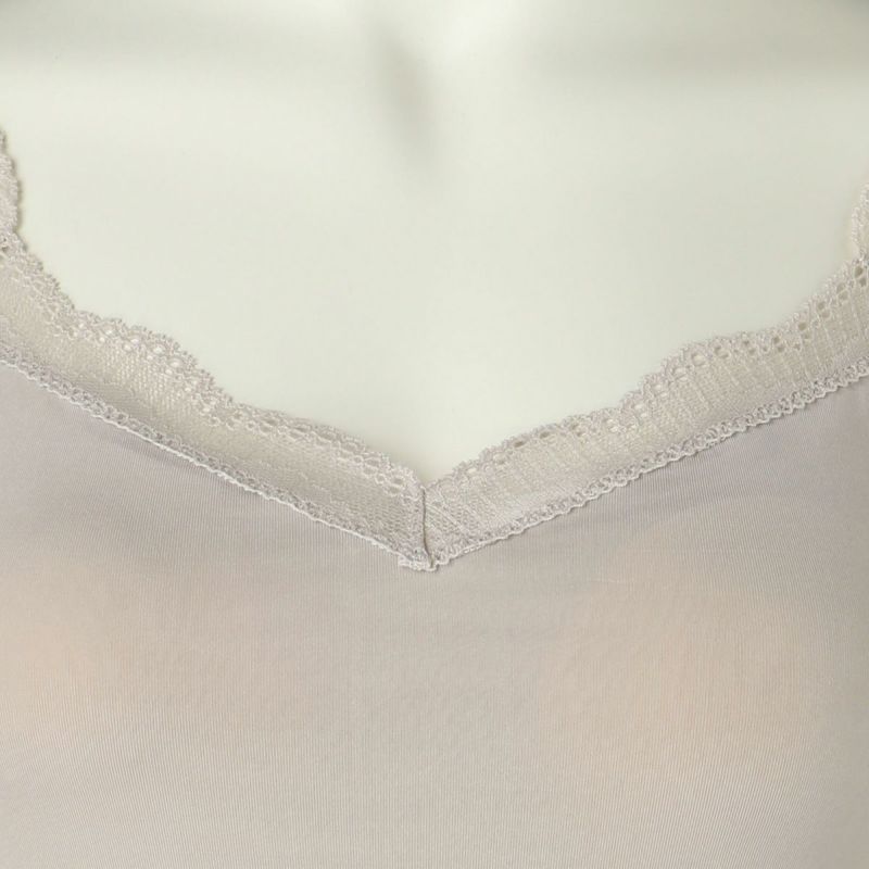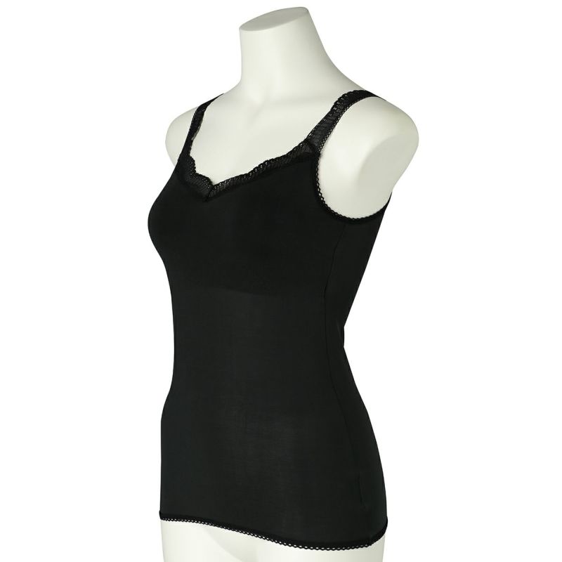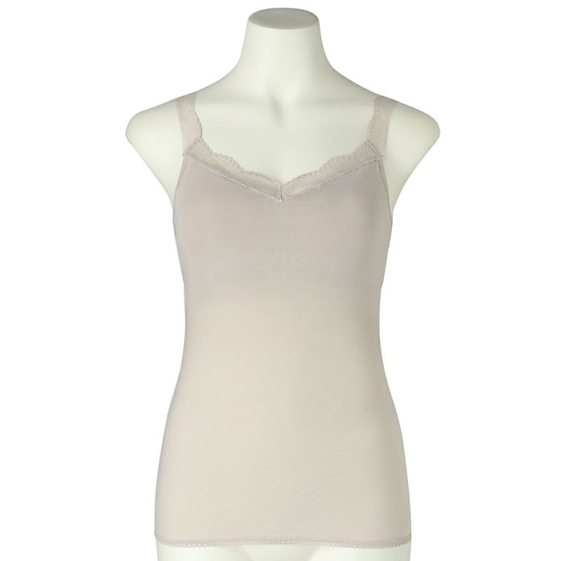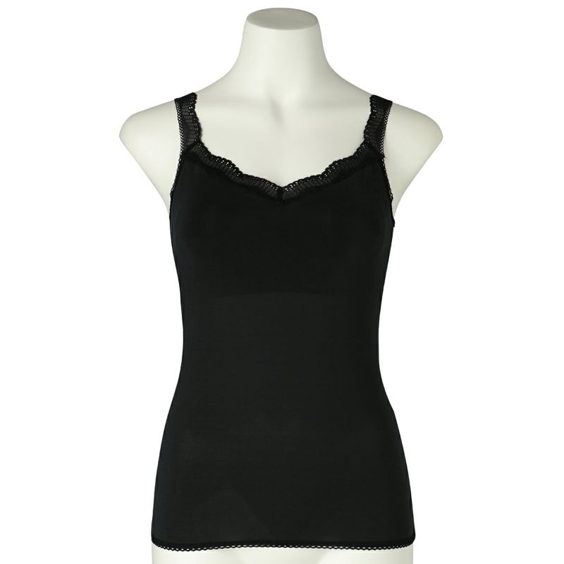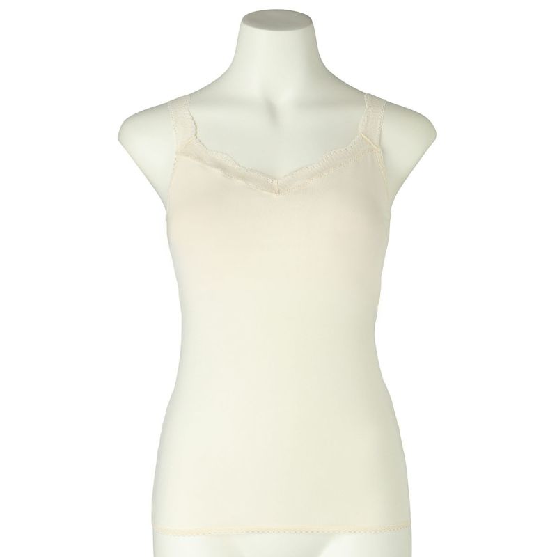 軽いV開きの取り外し可能のカップ付きのキャミソールは、ブラジャー無しで一枚で着れる便利なアイテム。