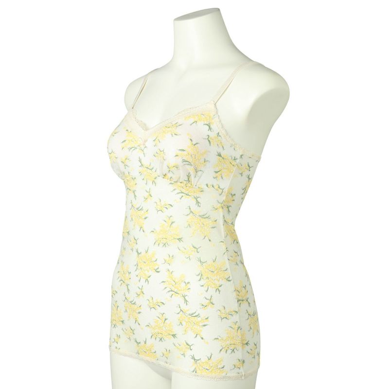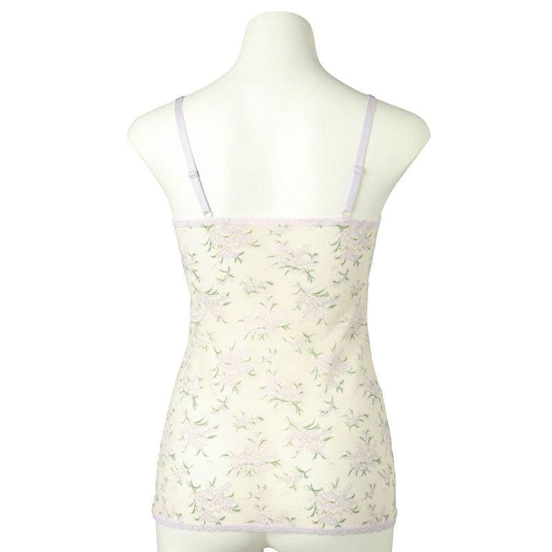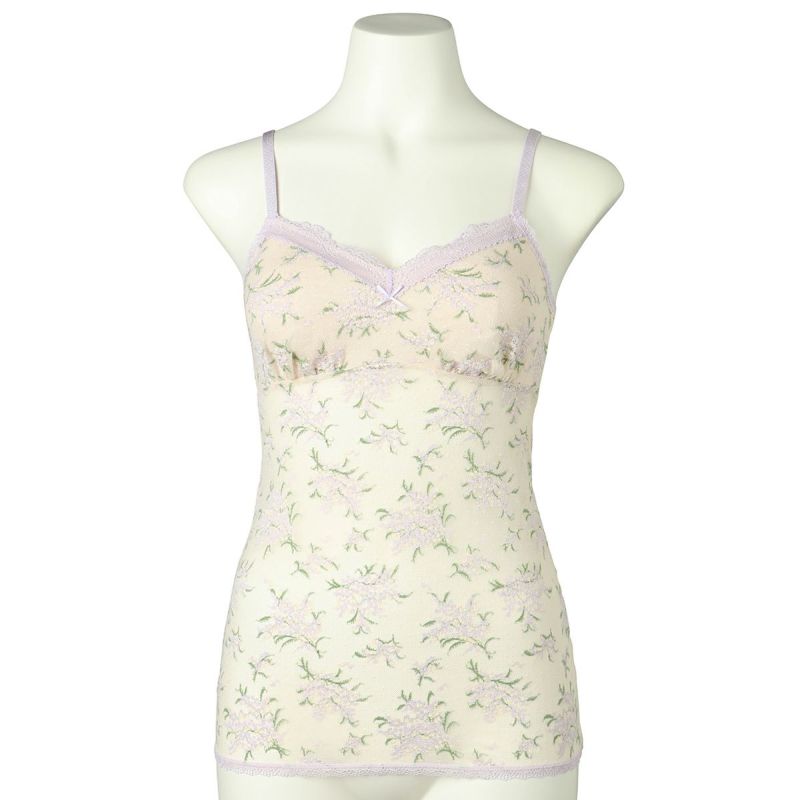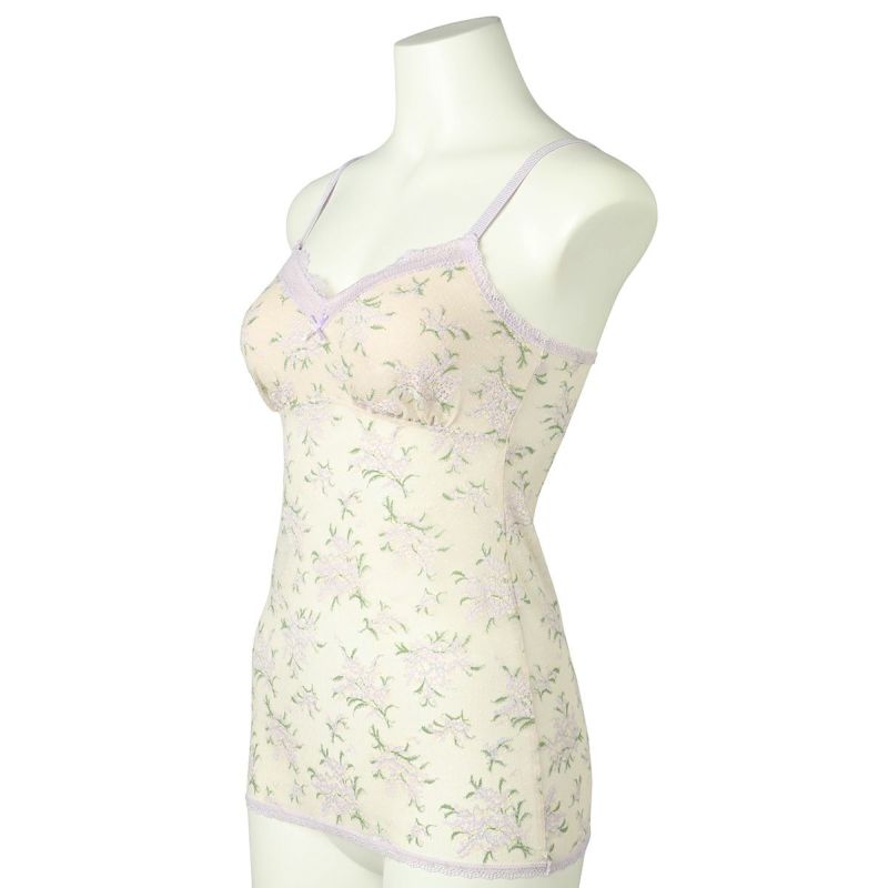 カップ付きキャミソールは、綿天竺のカップ裏地が前面のみでソフトな着用感。1枚で着用できます。