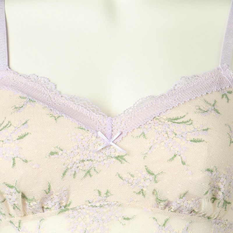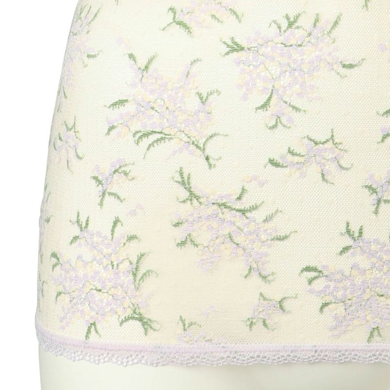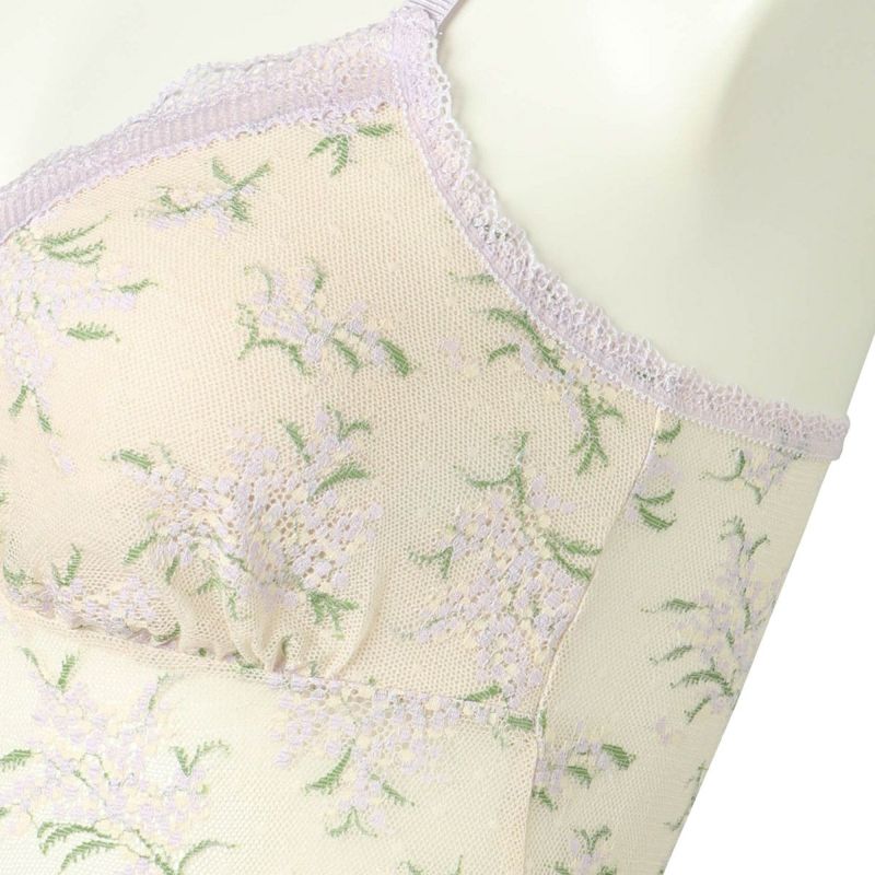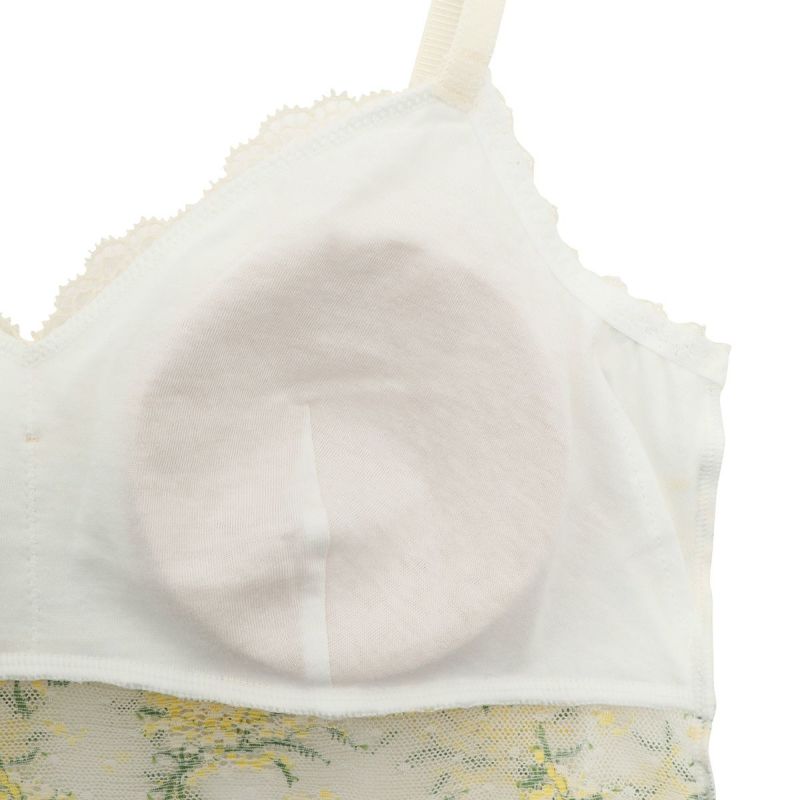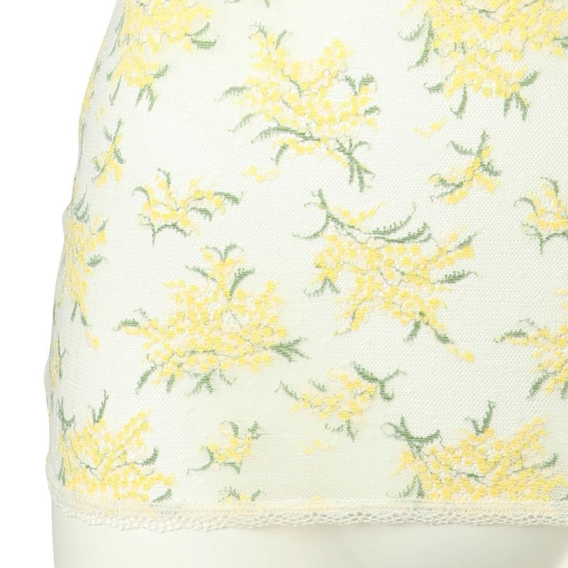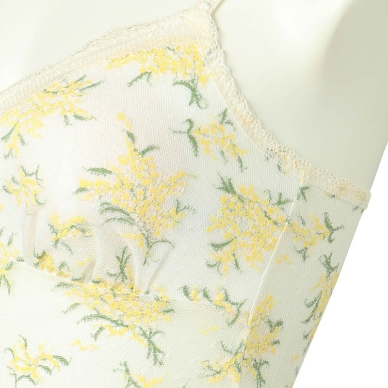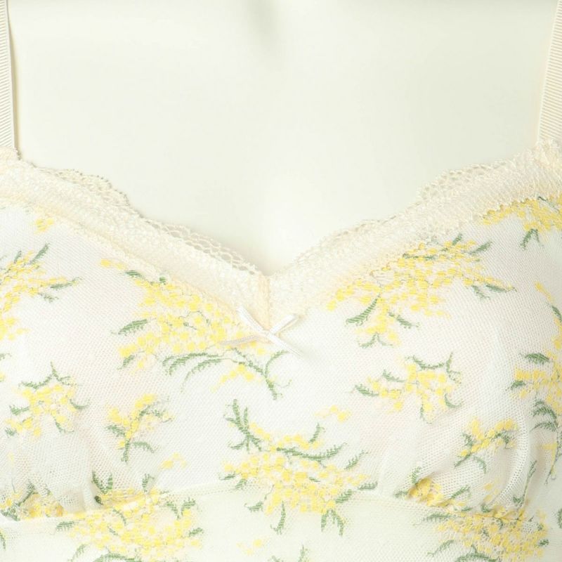 上品で華やかな人気のミモザレース柄が復刻。生地の一部にリサイクルナイロンを使用しよりサステナブルにブラッシュアップしたインナーシリーズ。先染めと後染めを使い分け、柄に立体感を出しました。