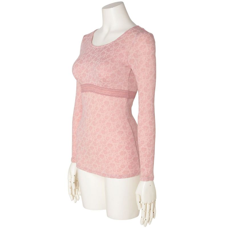 便利に使える、いま人気のカップ付き長袖インナー。胸元にはカップを内蔵しているので1枚で楽に着られるのも嬉しいポイント。アンダー部分にはぐるり1周レースを施し華やかさを添えながら、バストの安定感も高めてくれるデザイン。