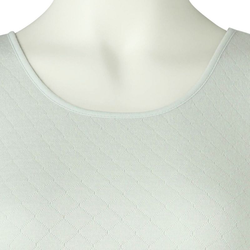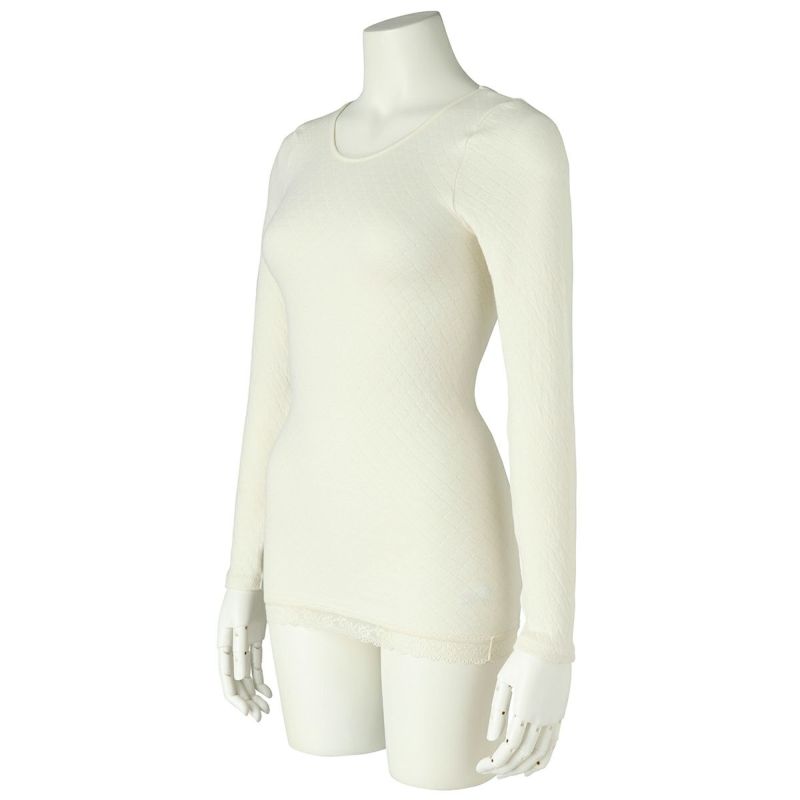 長袖インナーは、パイピングを施したやや小さめの襟開き。ニットの下にも防寒対策として◎
