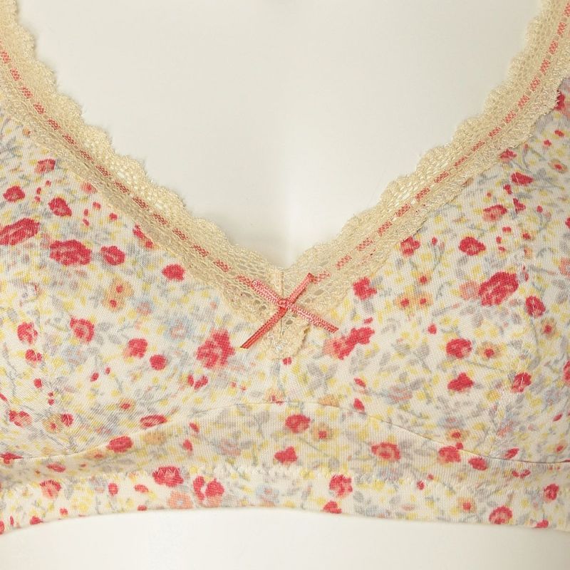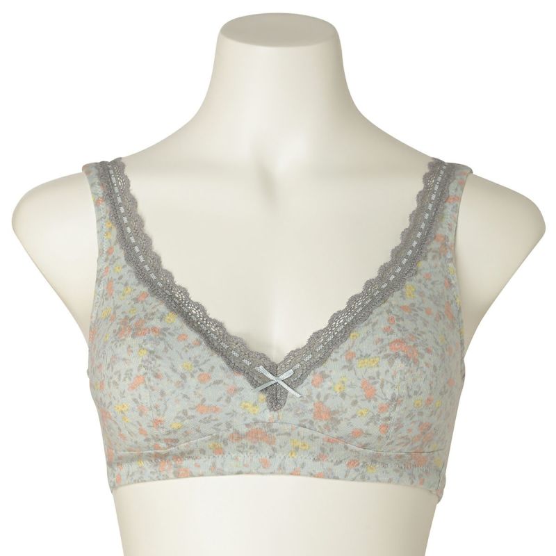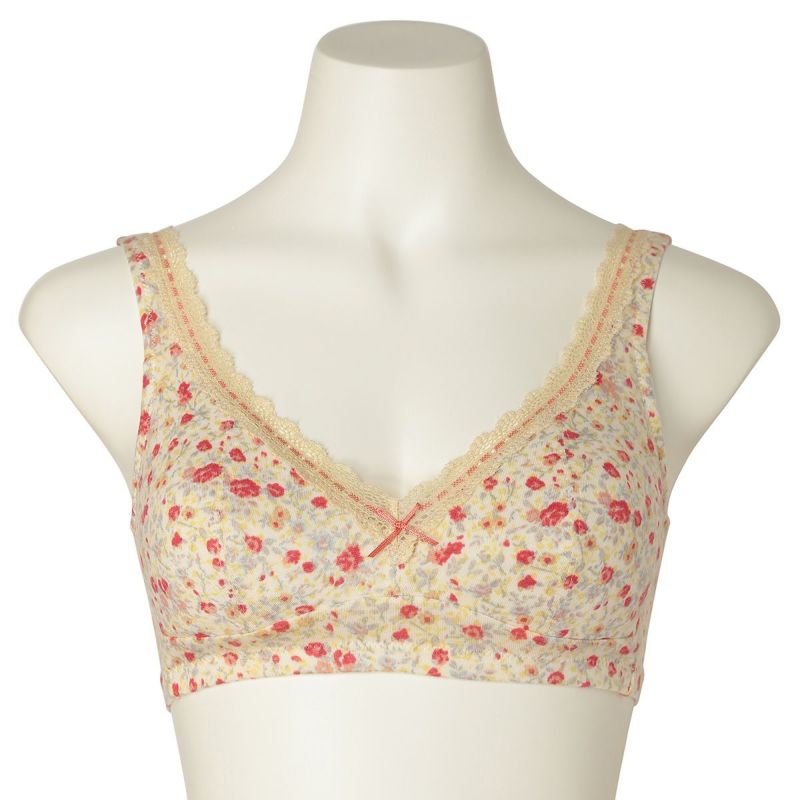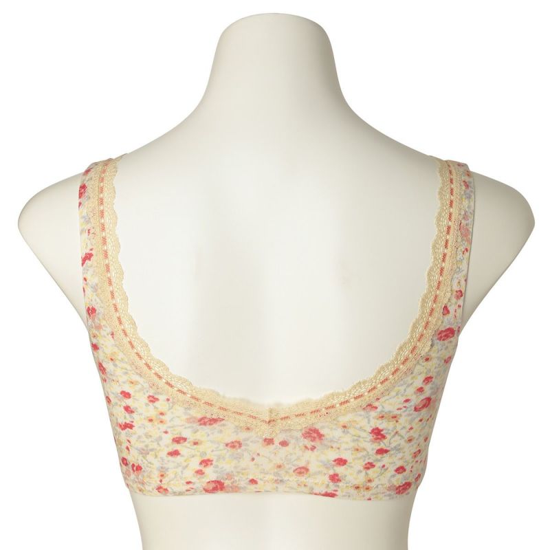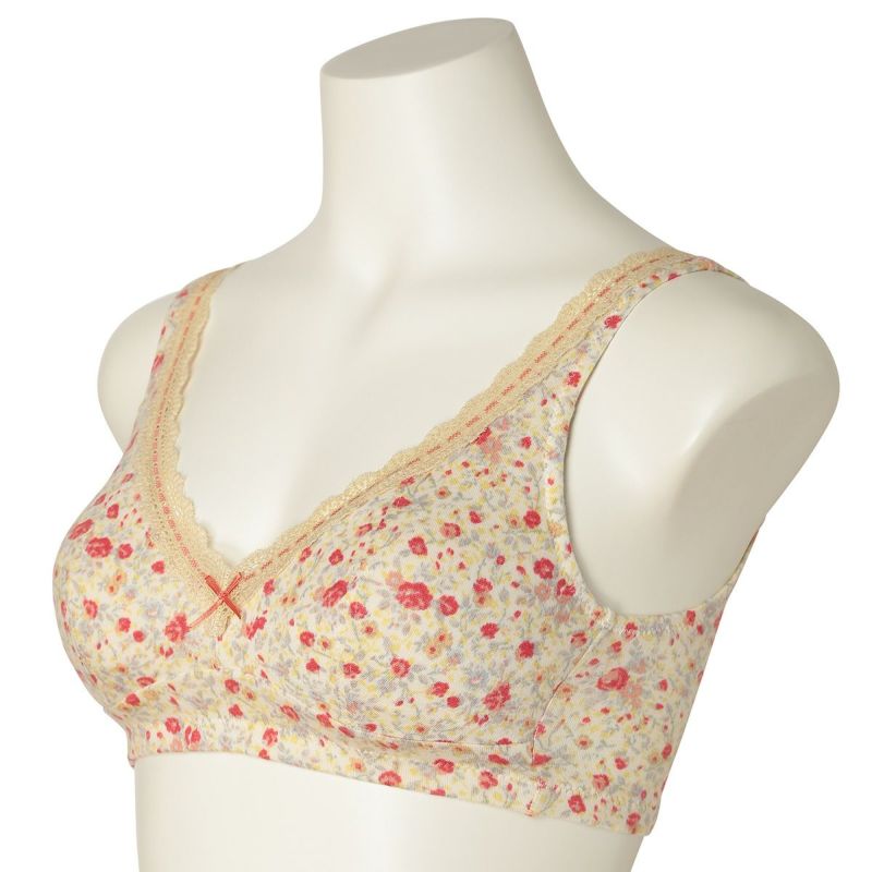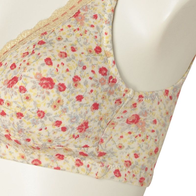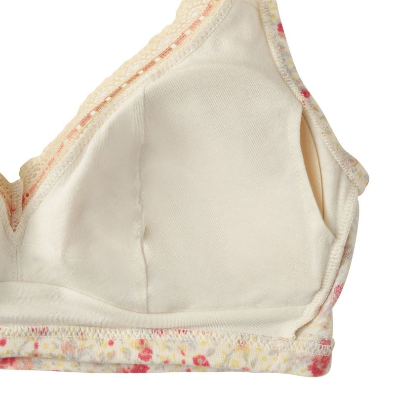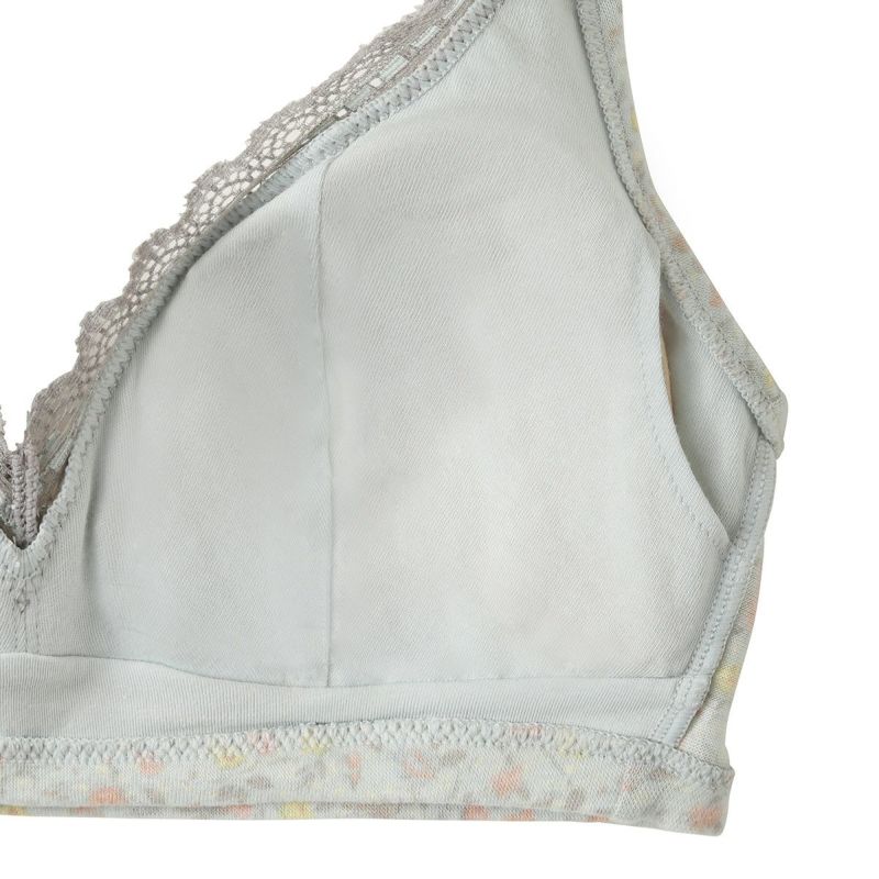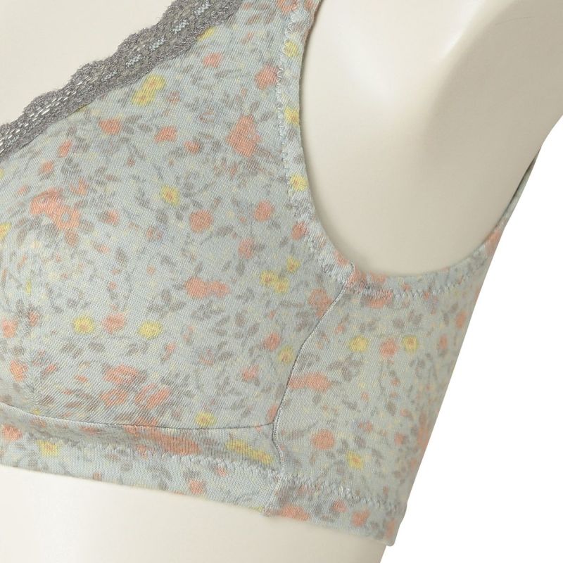 着脱のしやすさで人気のホックなしかぶりタイプのノンワイヤーブラジャー。ナチュラルなシルエットの三角パッドタイプ。フロントから背中まで組み合わせたハシゴレースが華やかさをプラス。カップから続く肩紐は、ずれにくいのもポイント。カップ肌側綿天竺。アンダーバックは裏地無しの1枚なので軽い付け心地。
