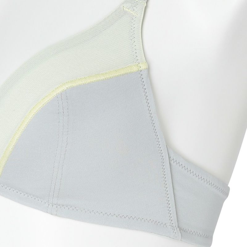 強撚糸を使用したさらっと肌触りの良い素材のインナーウェア。糸をガス焼き加工することで毛羽立ちが抑えられ、上品な光沢感と滑らかな風合いを実現しました。ノンレース仕様でスポーティな要素を取り入れつつ、切り替えデザインを効かせた快適な着心地のシリーズ。