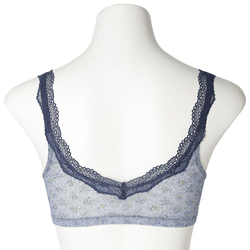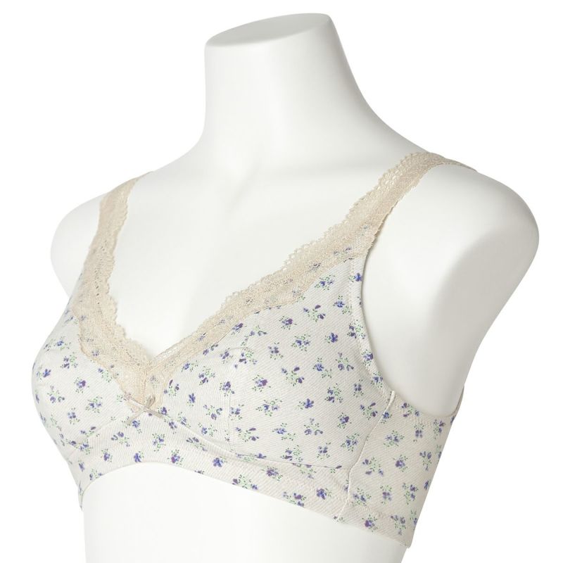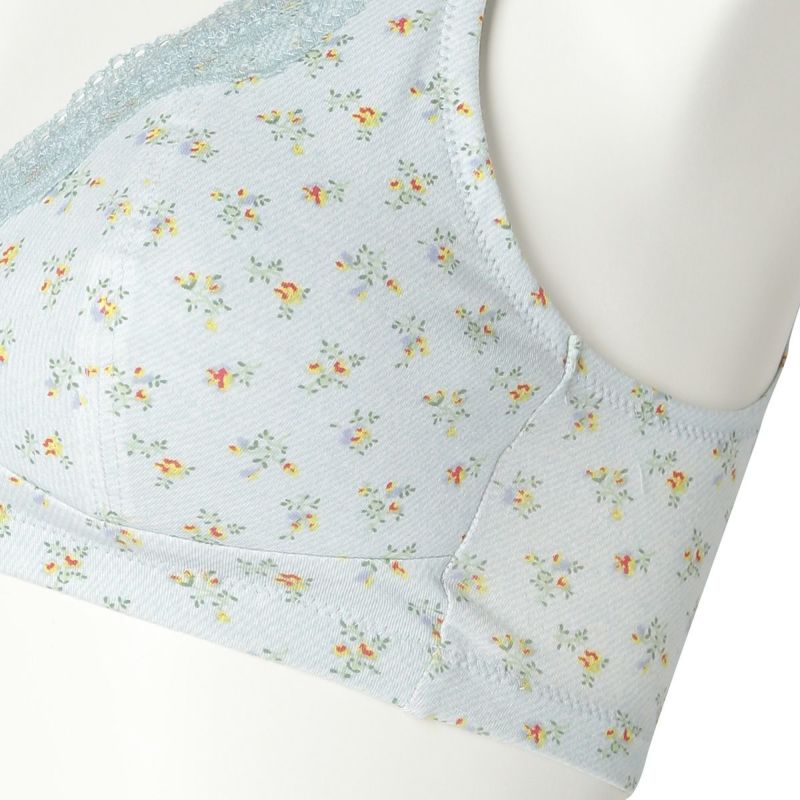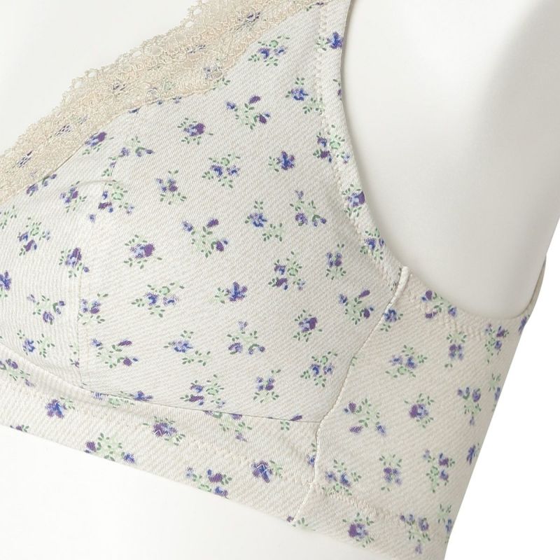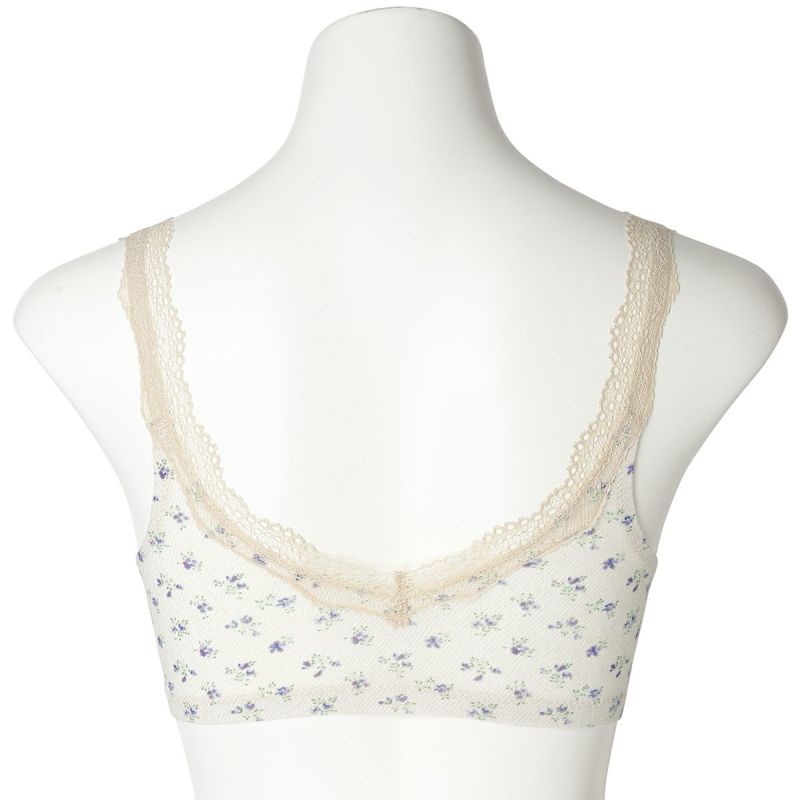 着脱のしやすさが人気のかぶりタイプノンワイヤーブラジャー。やや深めの開きですっきりとした見え感。カップ前中心から肩紐、背中まで続くレースを施し華やかかつ、ストラップがずれにくい嬉しい仕様。