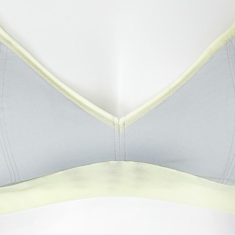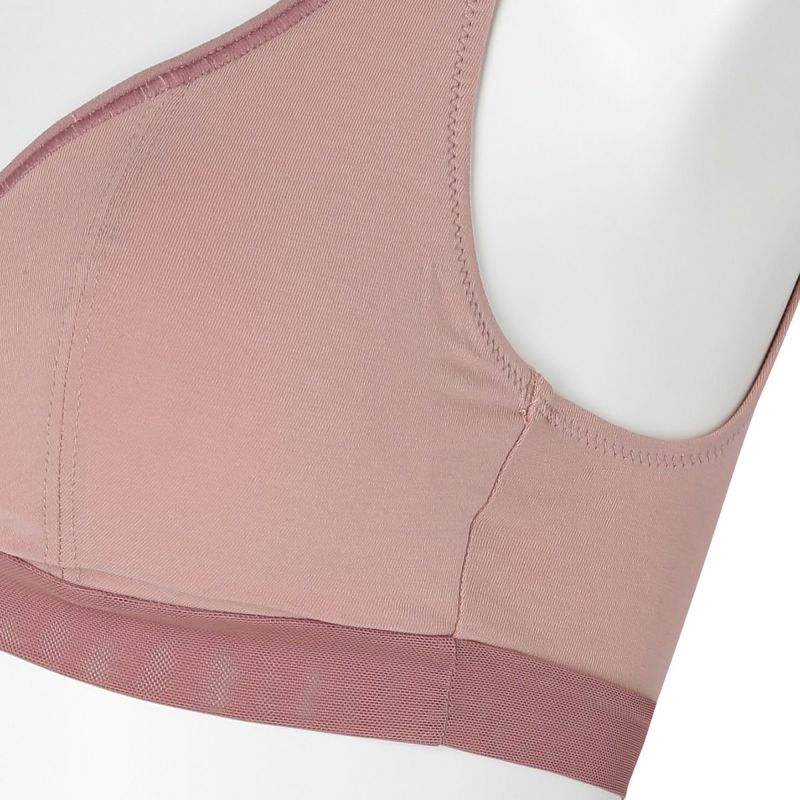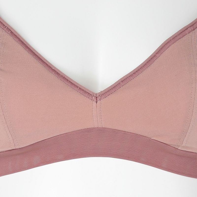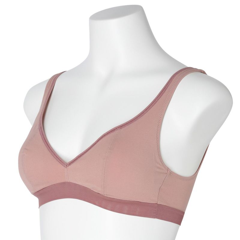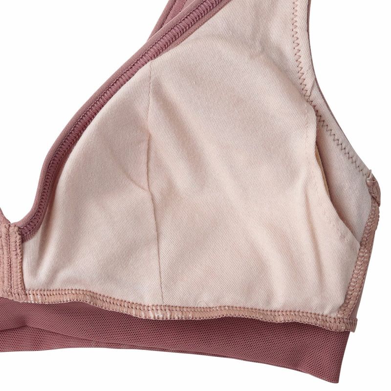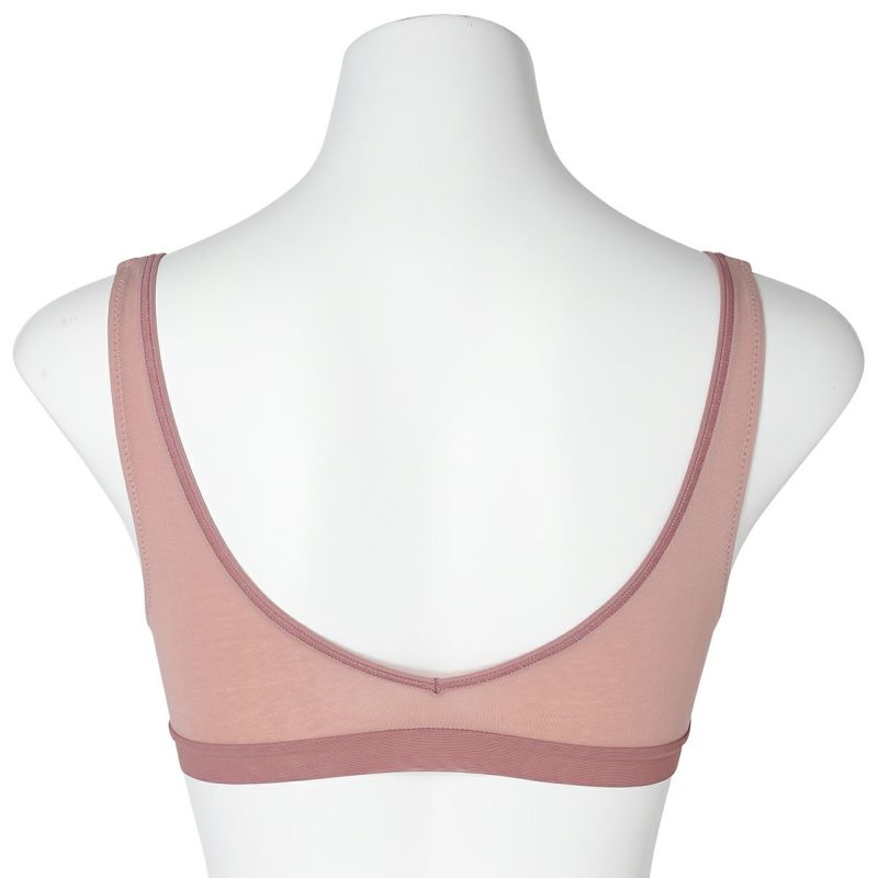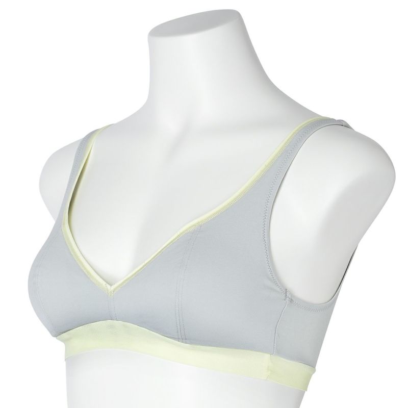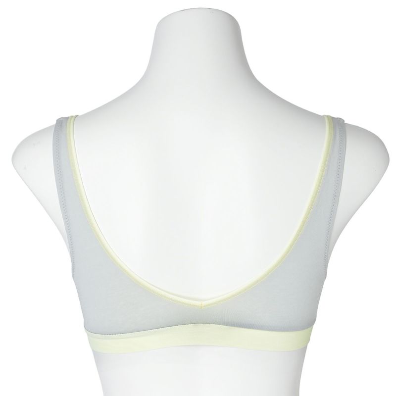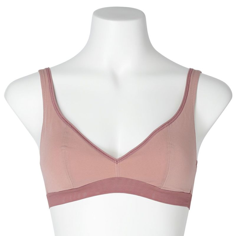 ホックのないかぶりタイプで着脱のしやすさが人気のノンワイヤーブラジャー。アンダー部分に伸びの良いパワーネットを使用。ピンクベージュとユーカリは上カップの配色にしたパイピングと共にアクセントに。肌ストレスの少ない着用感が魅力で、シンプルなスタイリッシュさが魅力です。