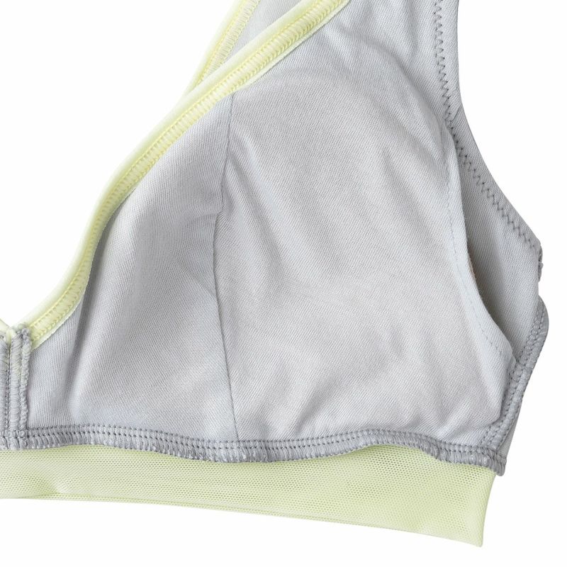 強撚糸を使用したさらっと肌触りの良い素材のインナーウェア。糸をガス焼き加工することで毛羽立ちが抑えられ、上品な光沢感と滑らかな風合いを実現しました。ノンレース仕様でスポーティな要素を取り入れつつ、切り替えデザインを効かせた快適な着心地のシリーズ。