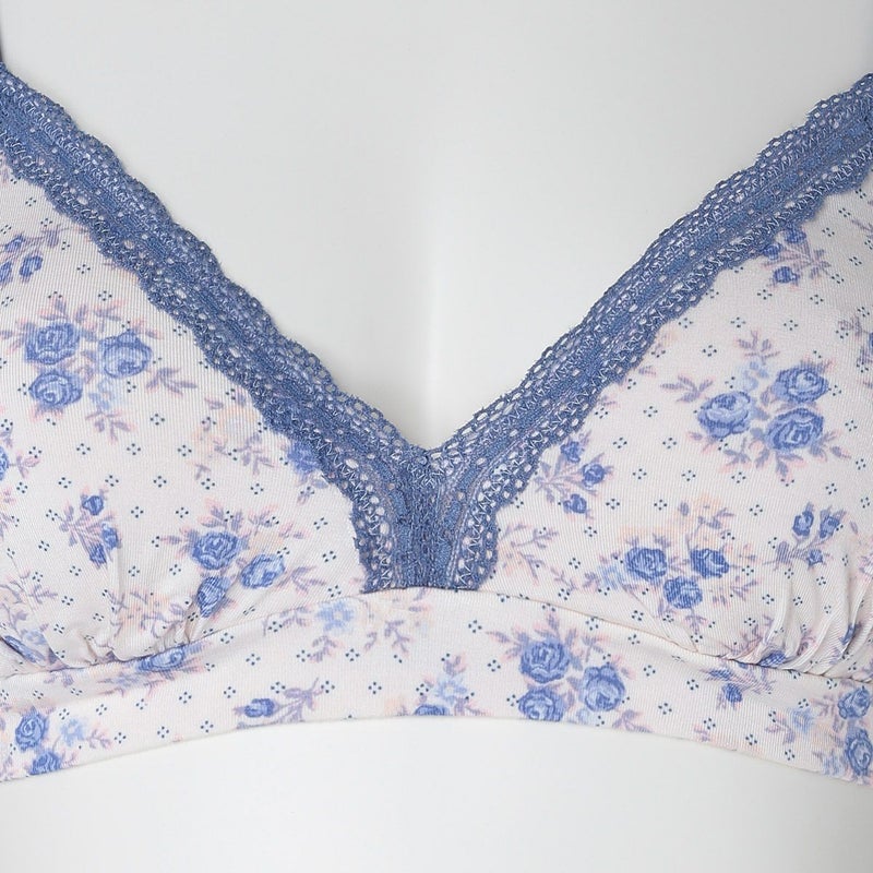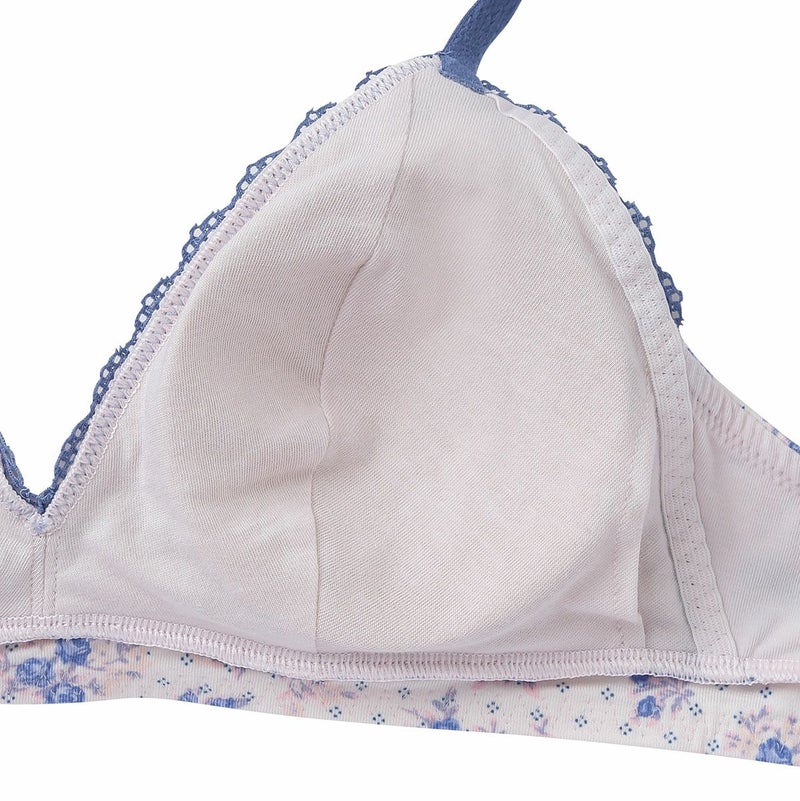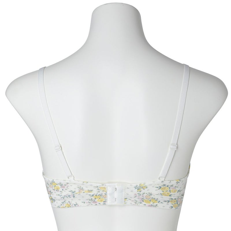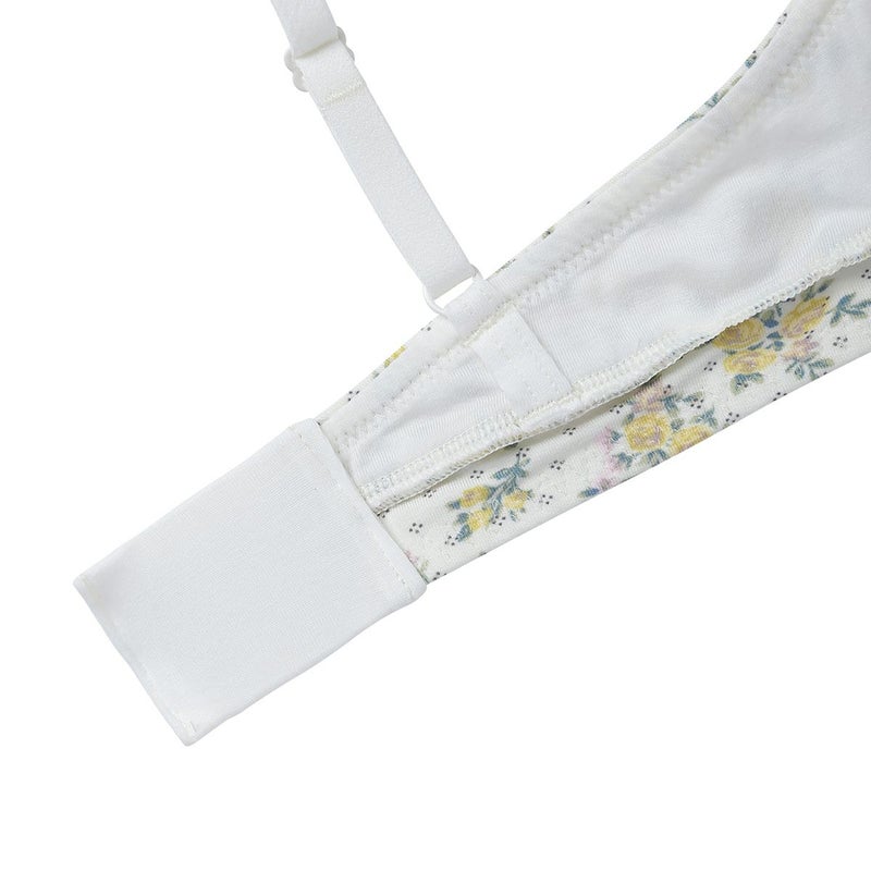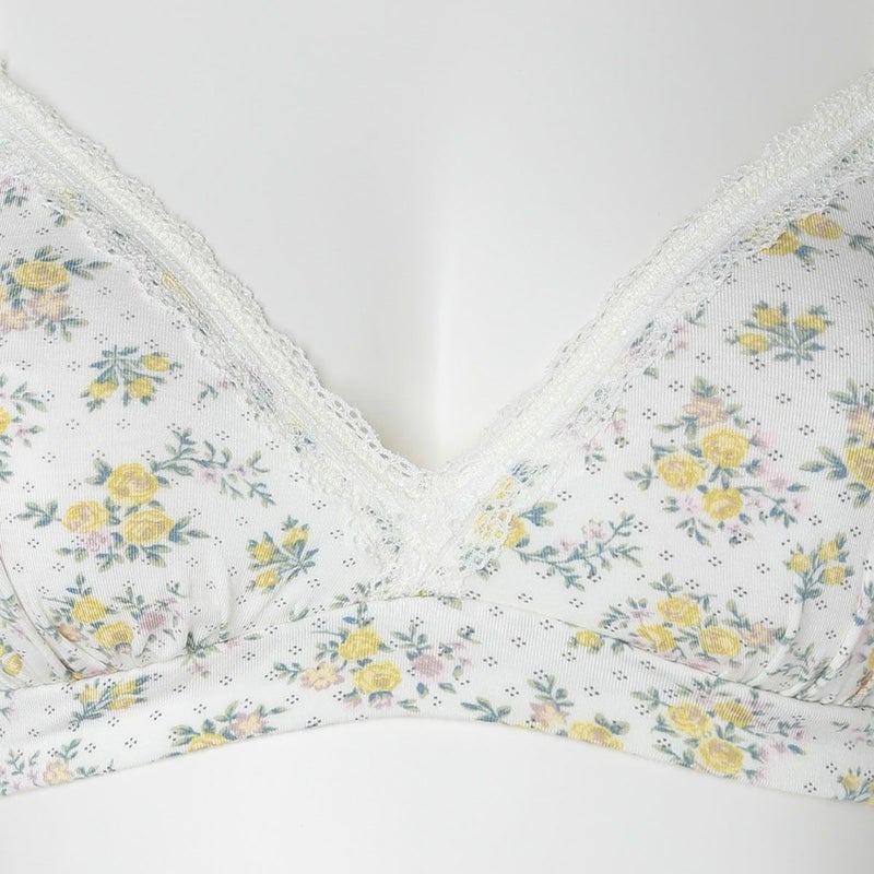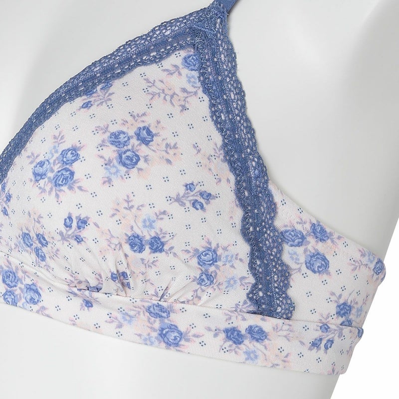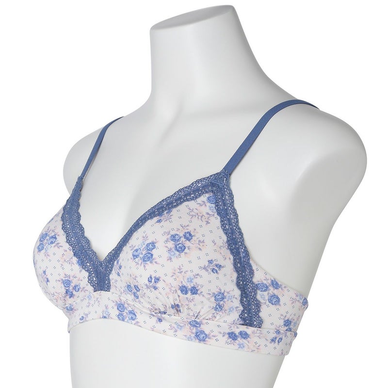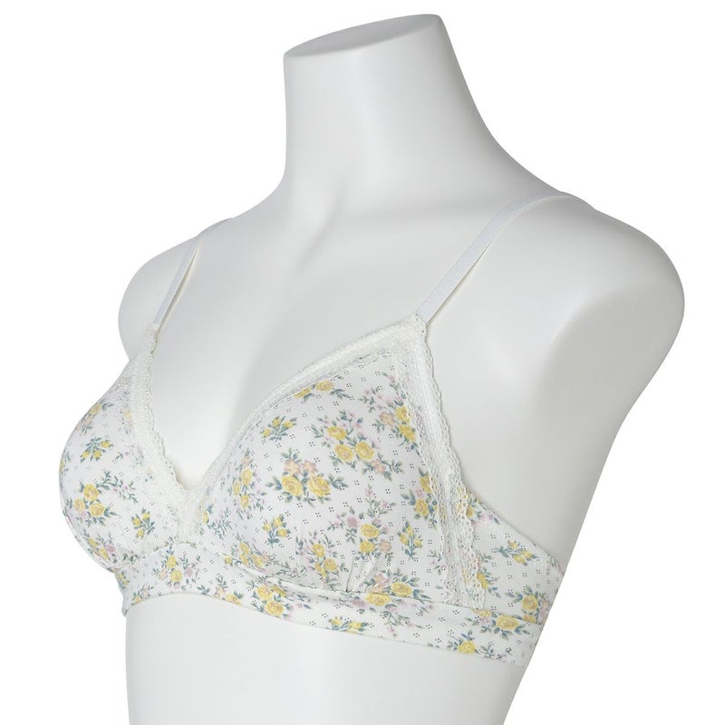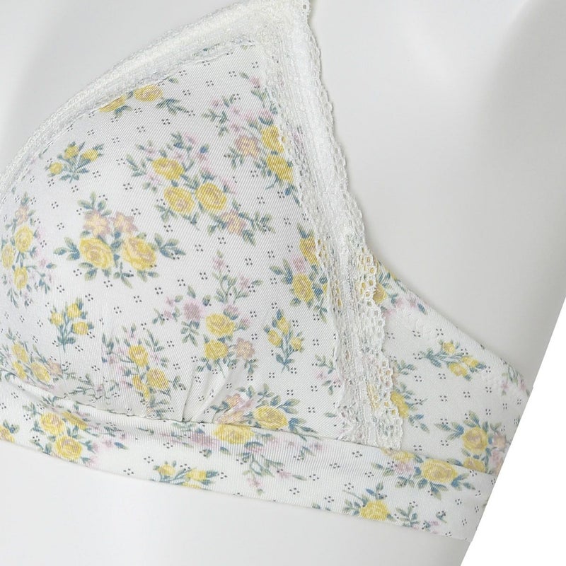 カップ表からアンダーまで華やかなフラワープリントのノンワイヤーブラジャー。