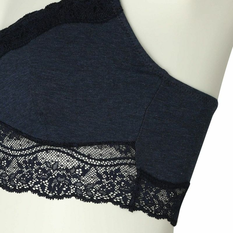 - 綿高混率で肌への負担も少ないため一年中愛用しています。このシリーズのノンワイヤーブラは、かぶり・フックの両方を使っていますが、かぶりのタイプは背中も幅広でしっかり体を包んでくれるので安心感があります。人にもよるかと思いますが、かぶりタイプの方がホールド力があり、サイズの許容も広いように思います。胸元のレースはとても素敵で、肌が弱い自分にも合っているようで肌荒れしたことはありません。