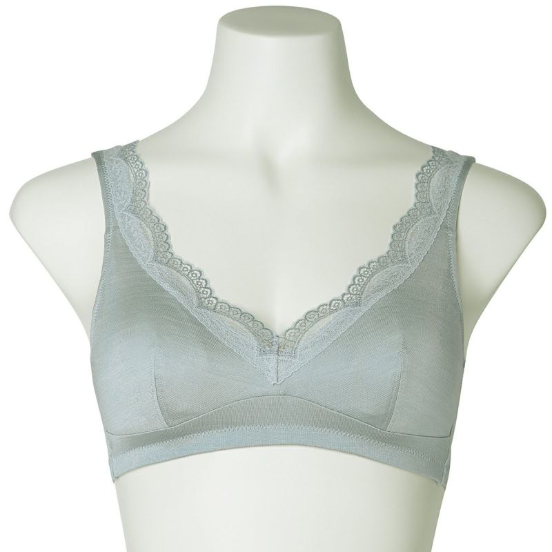 - 身長:164cm / 普段サイズ:M シーズンカラーのユーカリを購入。綺麗な色合いが大人っぽく、気分が上がります。シルクのインナーは肌触りも滑らかで1着は持っていたい素材です。カップブラは三角パッドでフロントも浅めになっていて、胸元をシャープに美しくみせてくれます。またかぶりのデザインもストレスなくリラックスして着用できるところが嬉しいです。