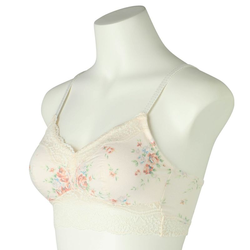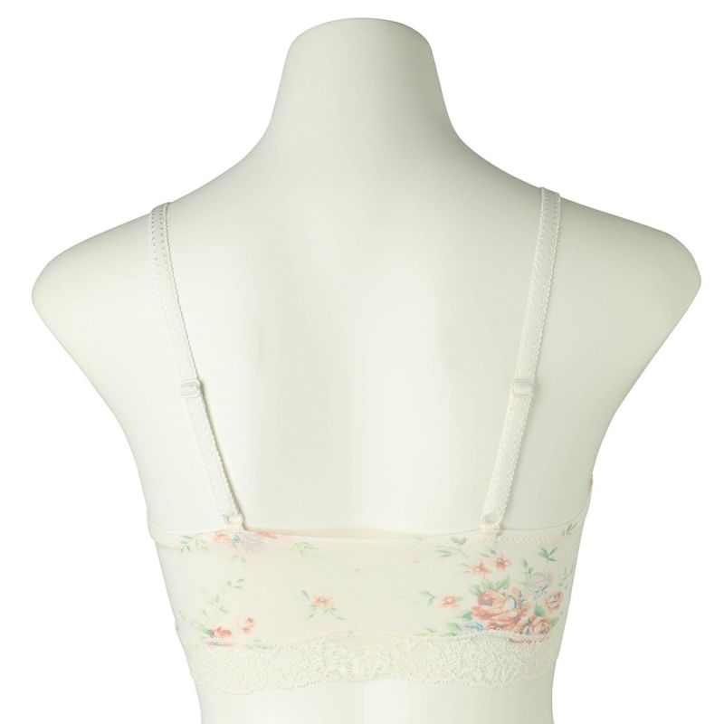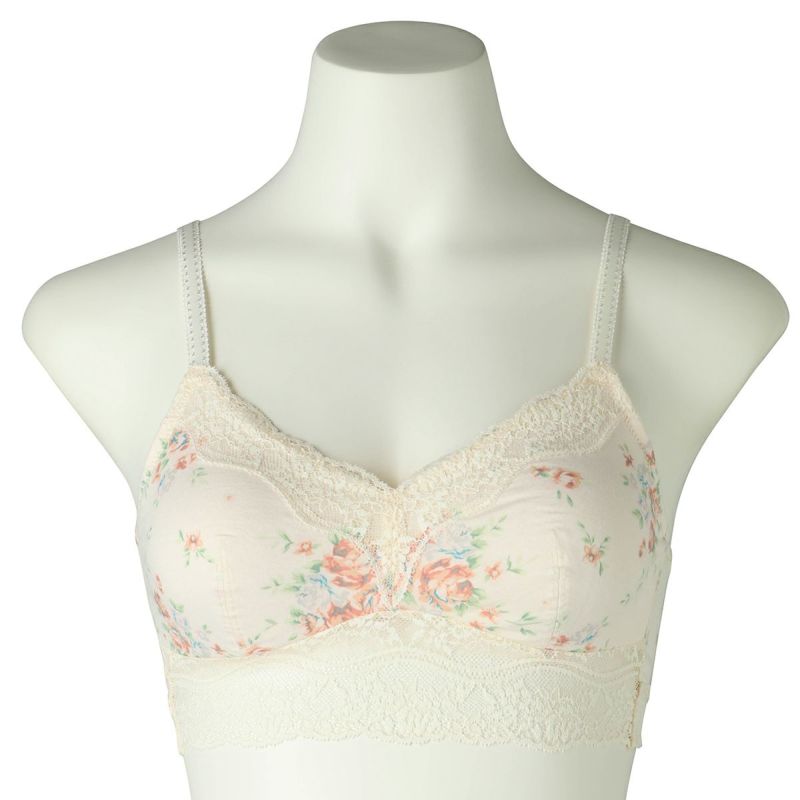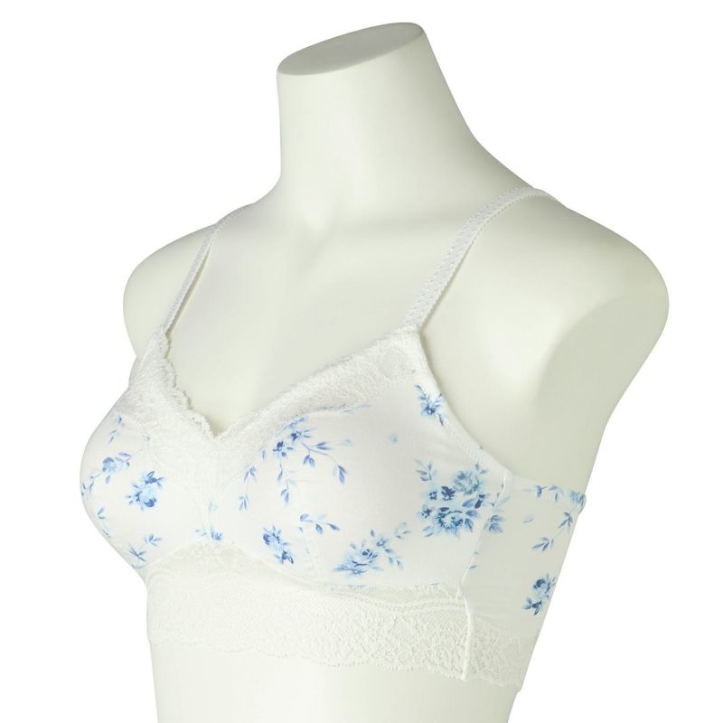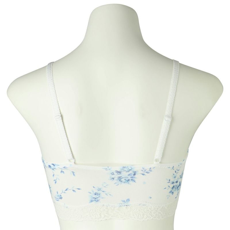 取り外し可能な丸パッド入りでナチュラルなラインのノンワイヤーブラジャー。上カップとアンダー部分に綿混レースをあしらいよりフェミニンに。ホックがなくかぶるタイプなので背中のごろつきもなく、リラクシーな着用感。
