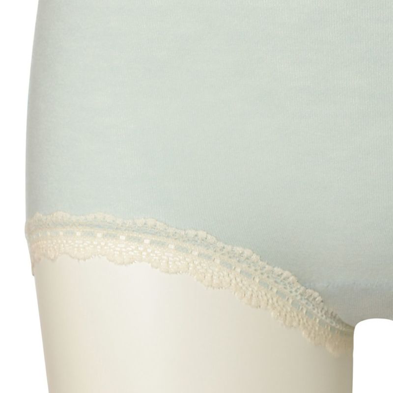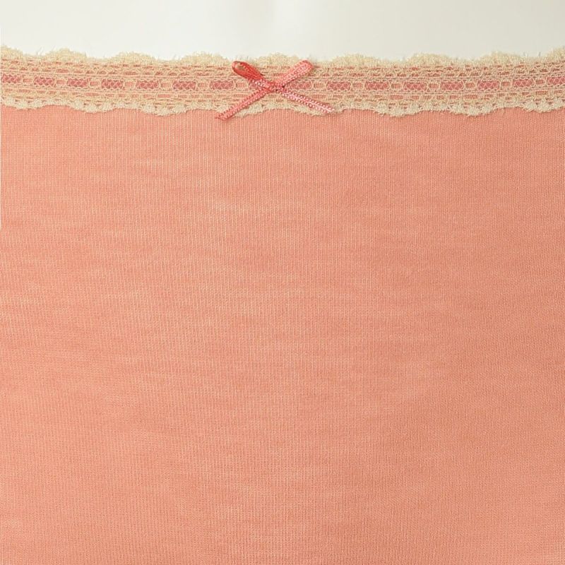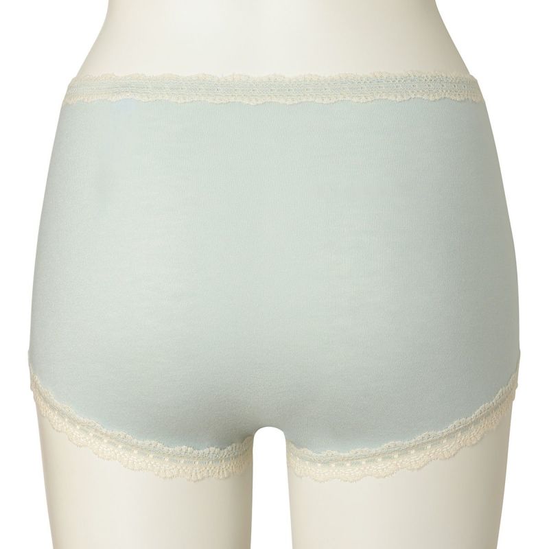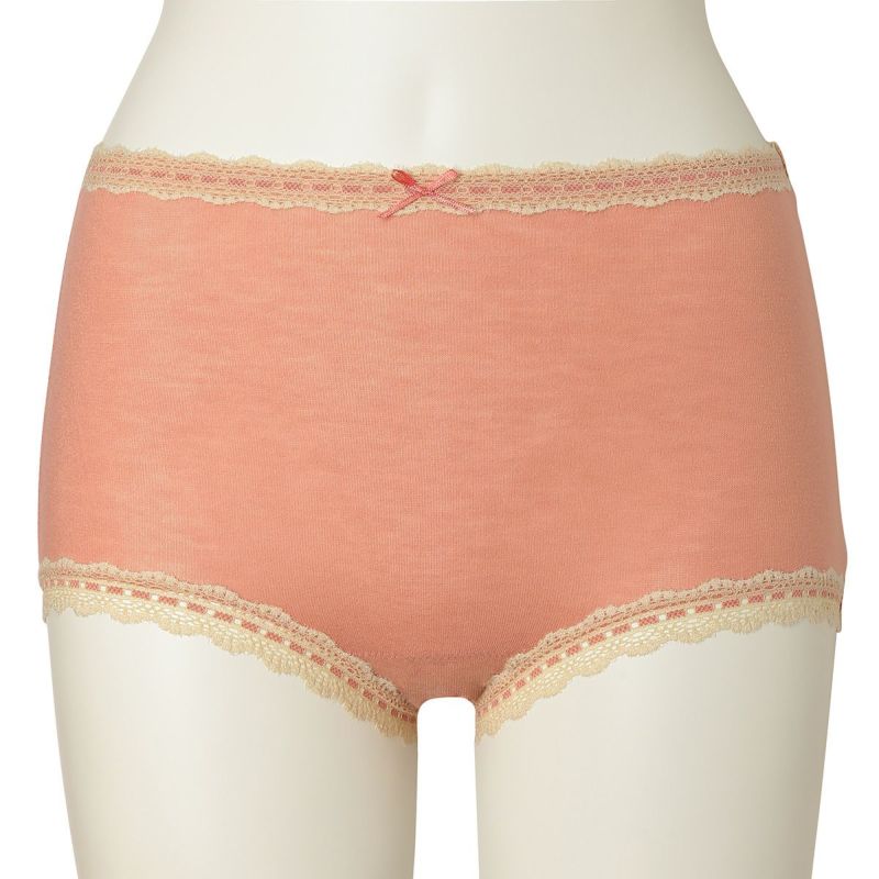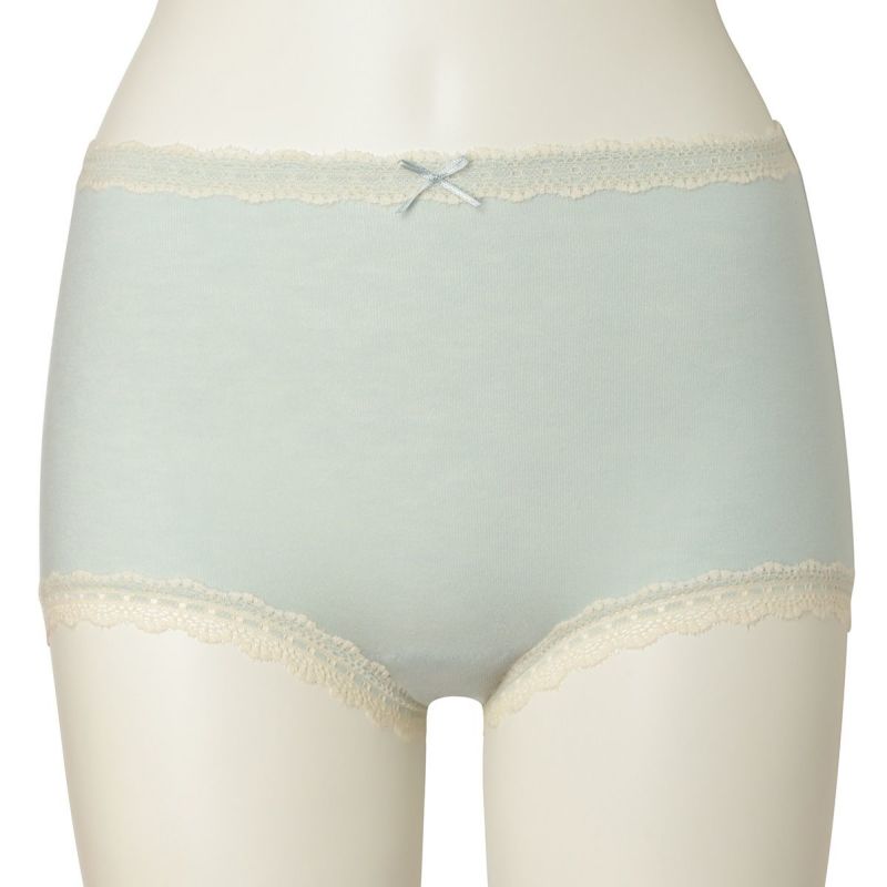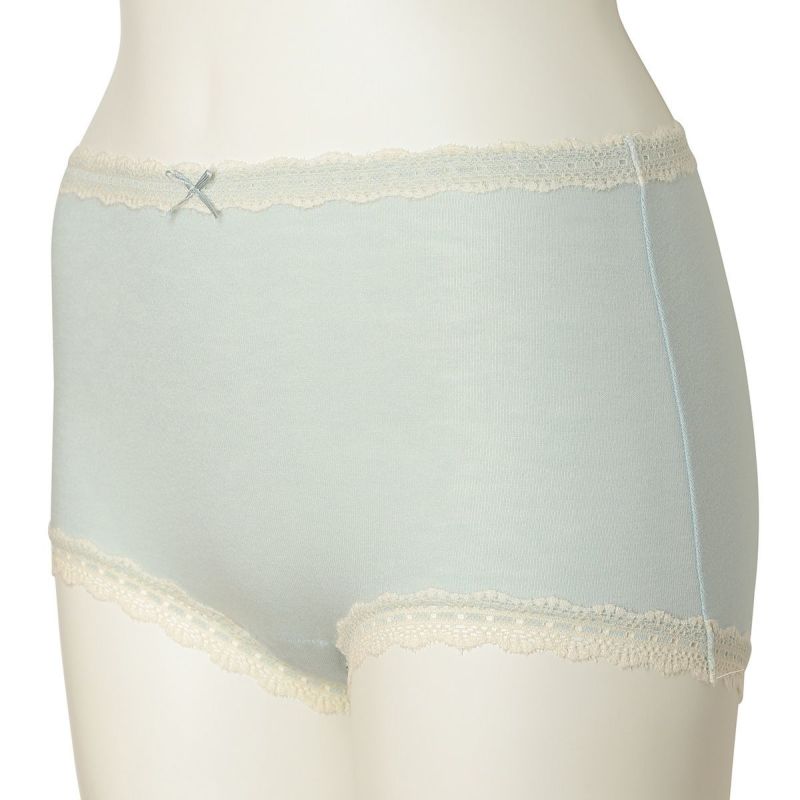 やや深めの丈でヒップの包み込みがよく安心感のある履き心地が人気のショートカルソン。ウエストと足ぐりにもリボンを通したようなレースを施しかわいらしく仕上げました。