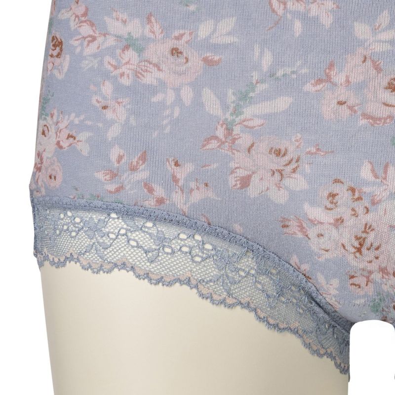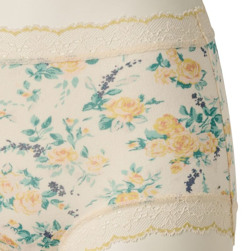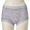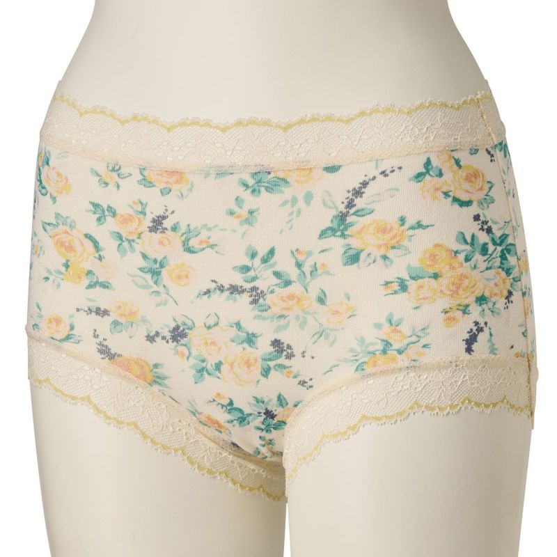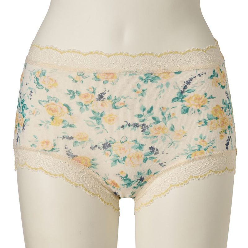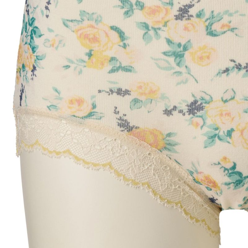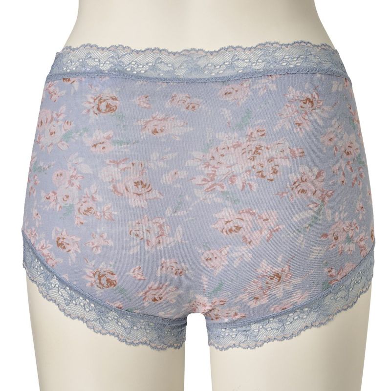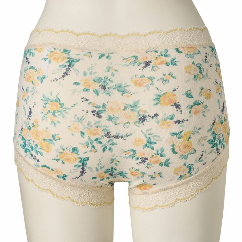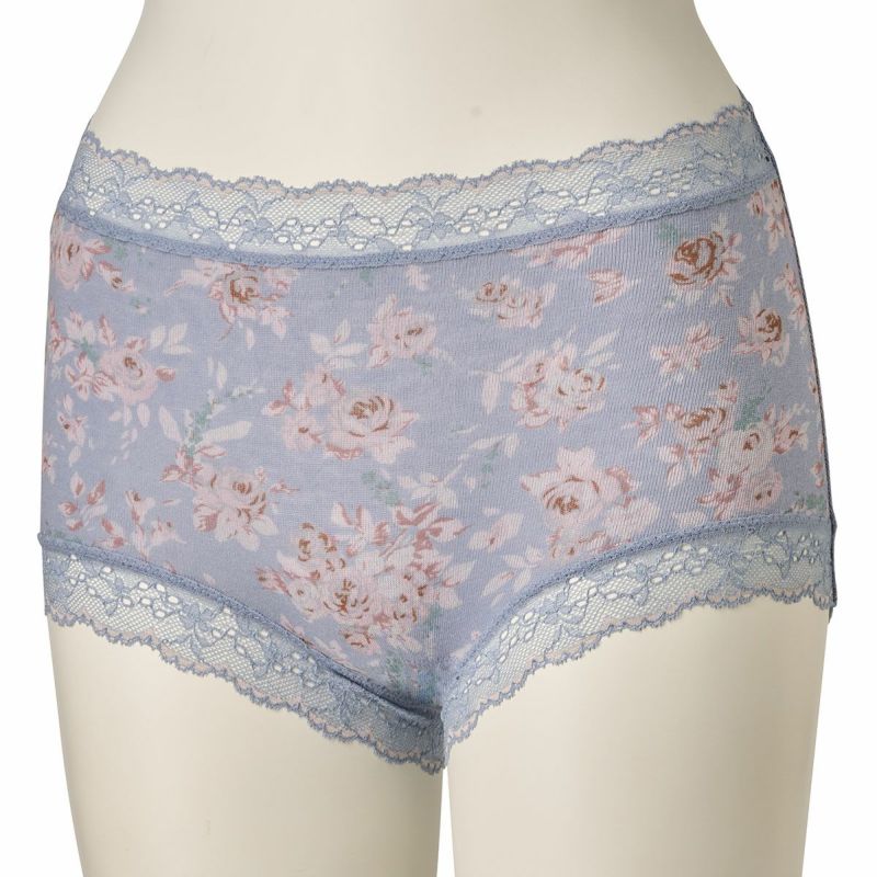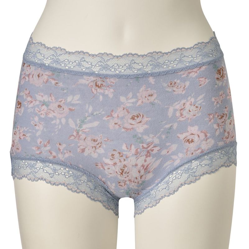 柄を楽しめる広めの布面積で、ヒップ全体を包み込んでくれるショートカルソン。ヒップがはみ出しにくいと履き心地に定評あり。脚ぐりはゴムではなくストレッチレースなので快適です。ブランドネームとサイズは生地にプリントしてあるので肌ストレスが少ない仕様。