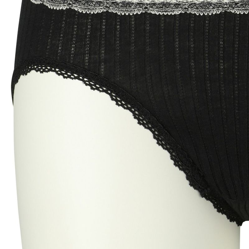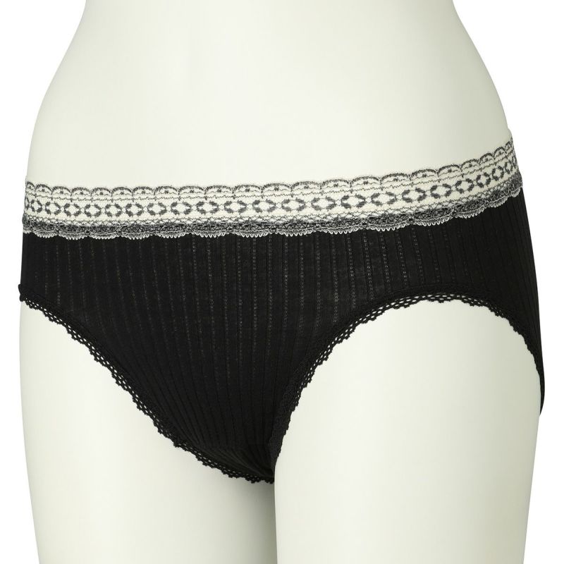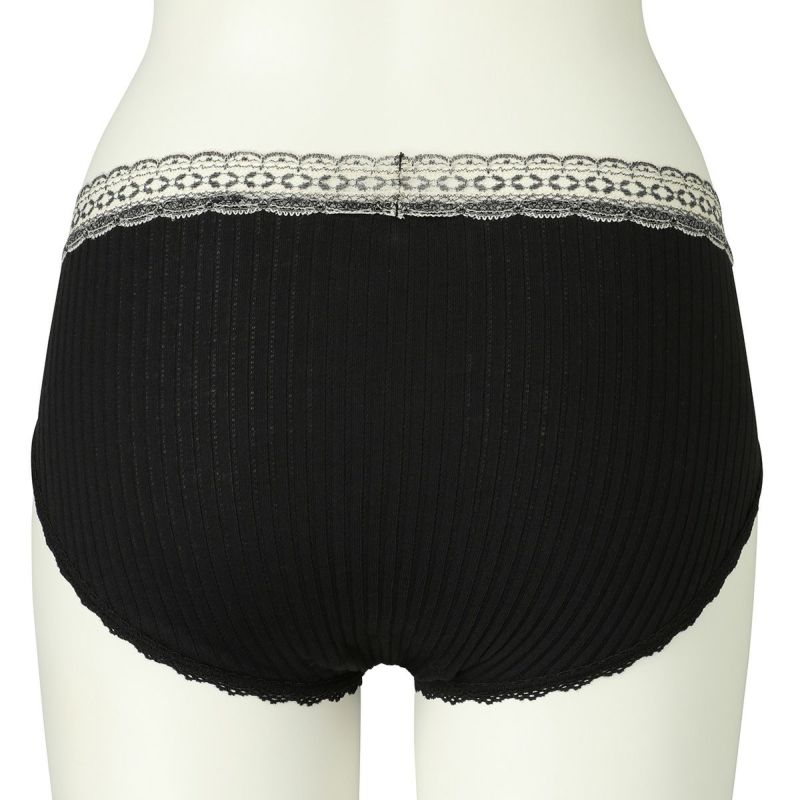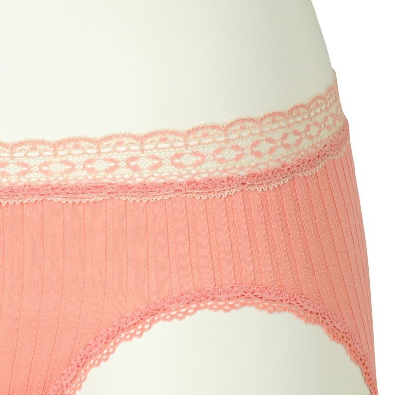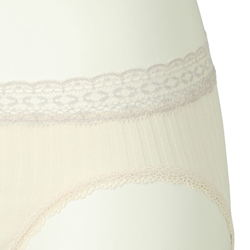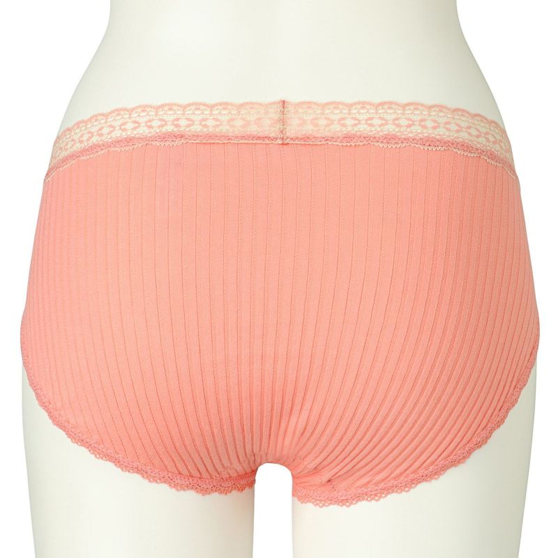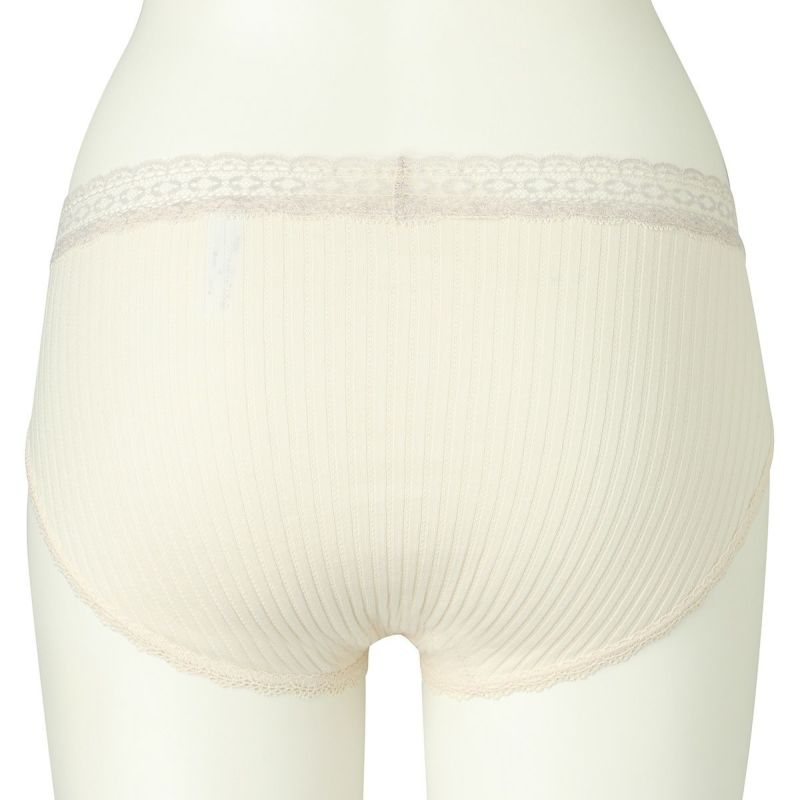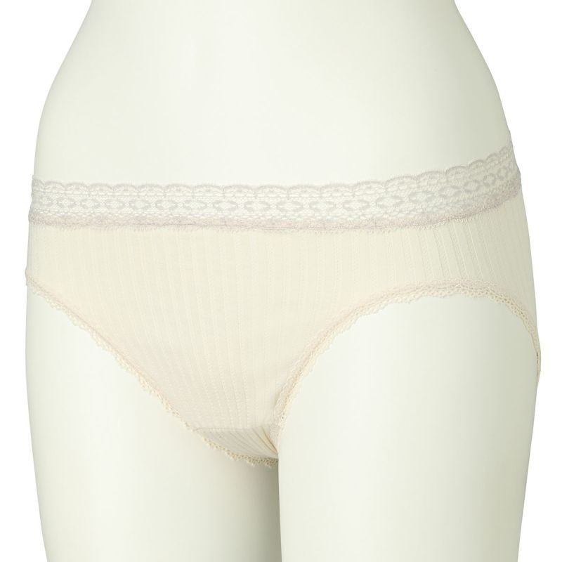 広い脚口で動きやすいノーマルショーツ。サイドの縫い目がないのでごろつきなく履ける。ウエストはストレッチレースなので優しい肌当たり。