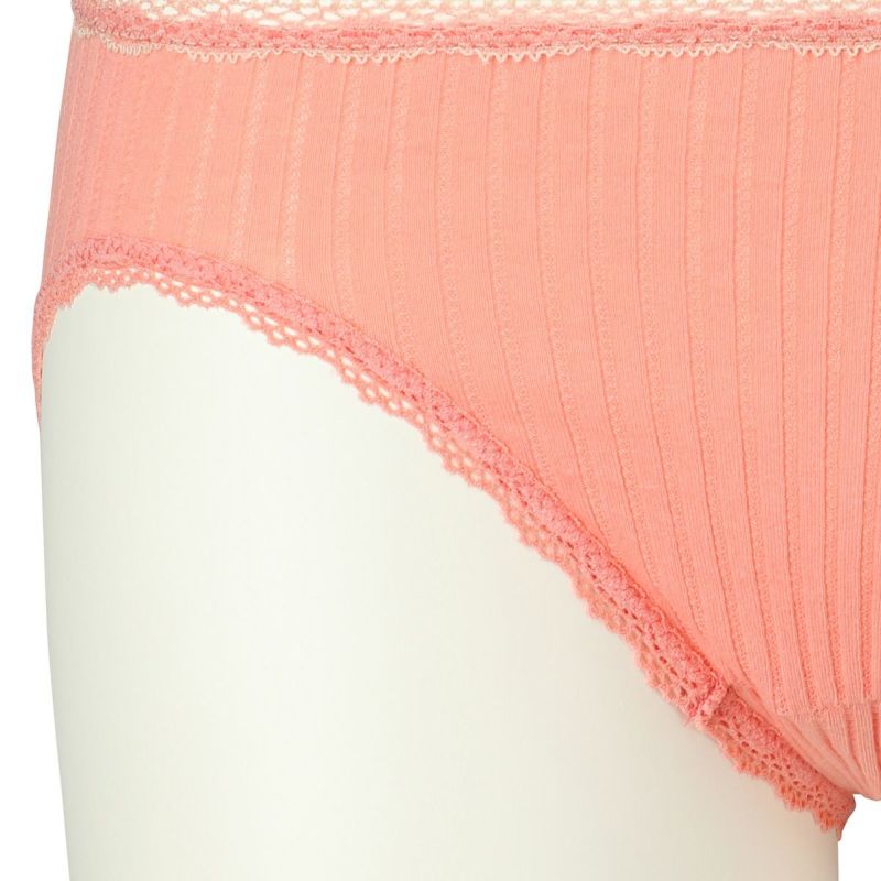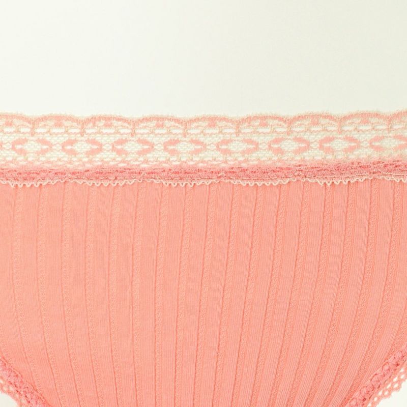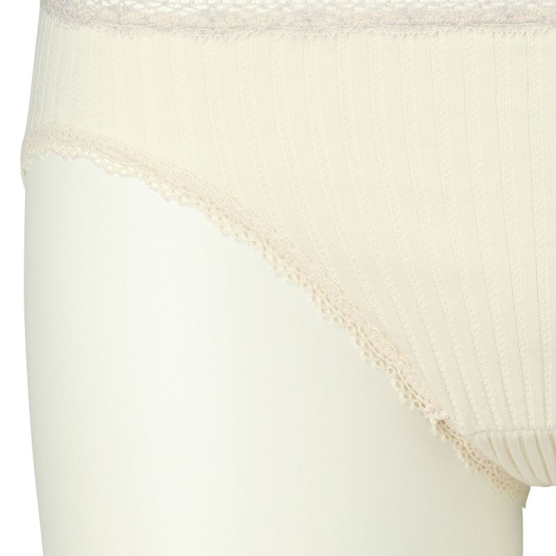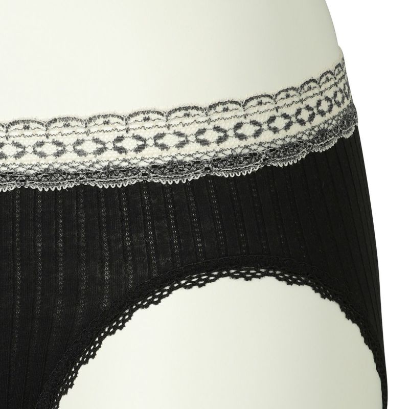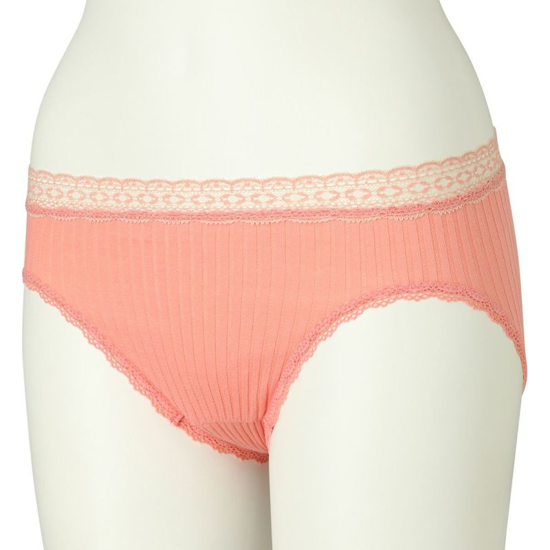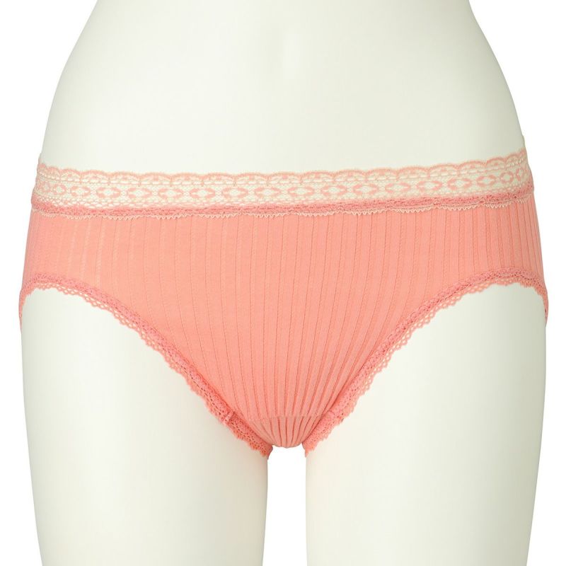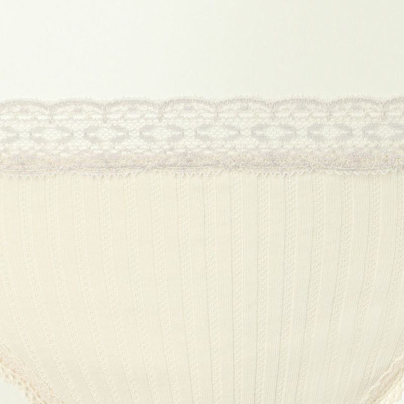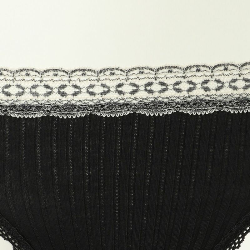 オーガニックコットン100%のリブ素材。リブならではの柔らかで軽い伸び感が心地いいインナー。ベーシックなアイボリーとブラック、肌映えし発色がよいサーモンピンクの3色展開。配色レースがアクセント。
