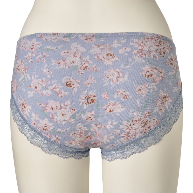 サテンパイピングを効かせたスタンダードショーツ。足ぐりにはレースをたっぷりあしらい華やかに仕上げました。ブランドネームとサイズは生地にプリントしてあるので肌ストレスが少ない仕様。
