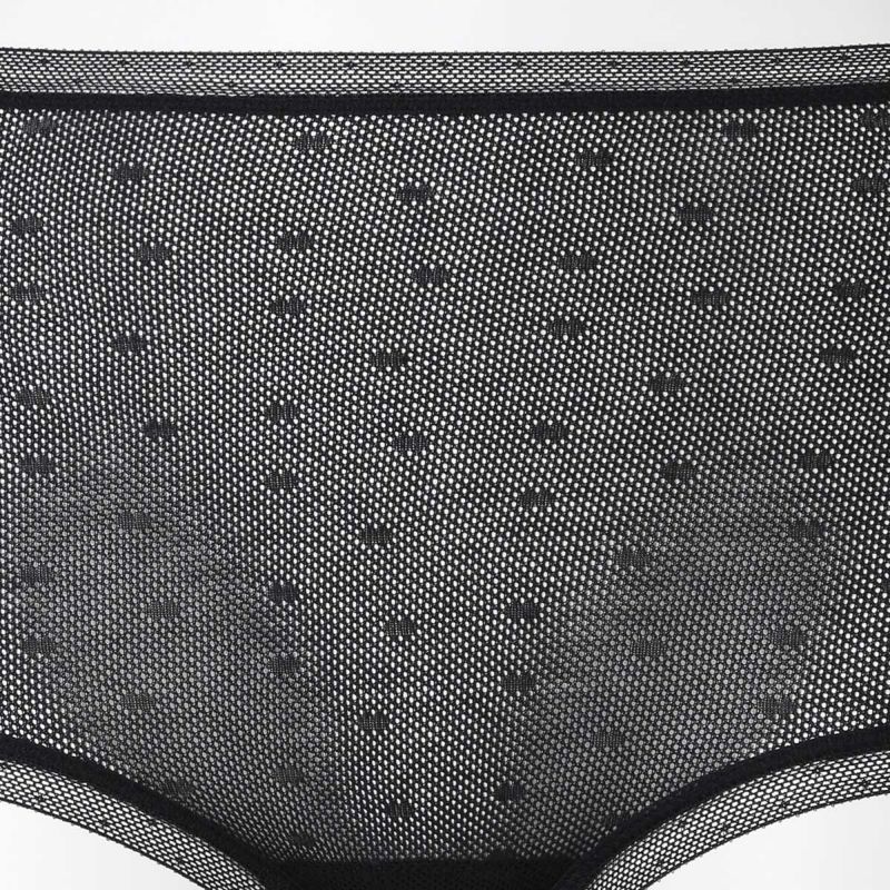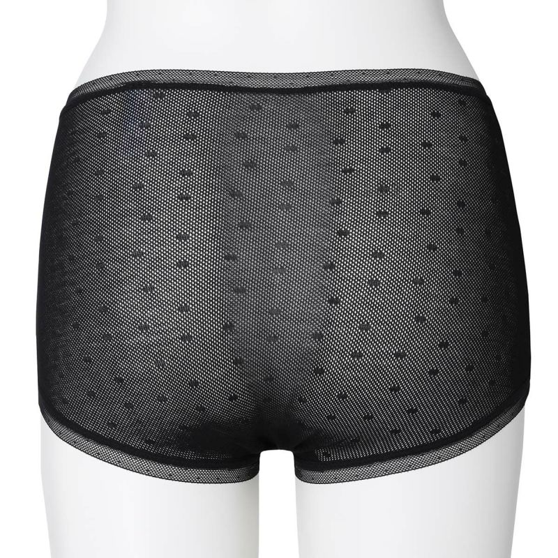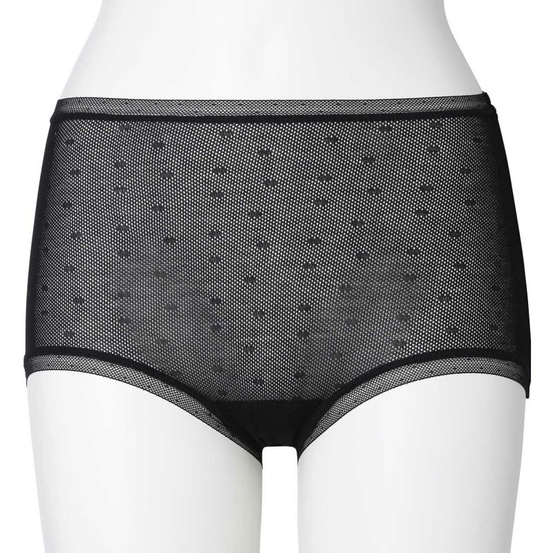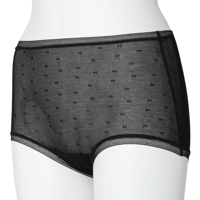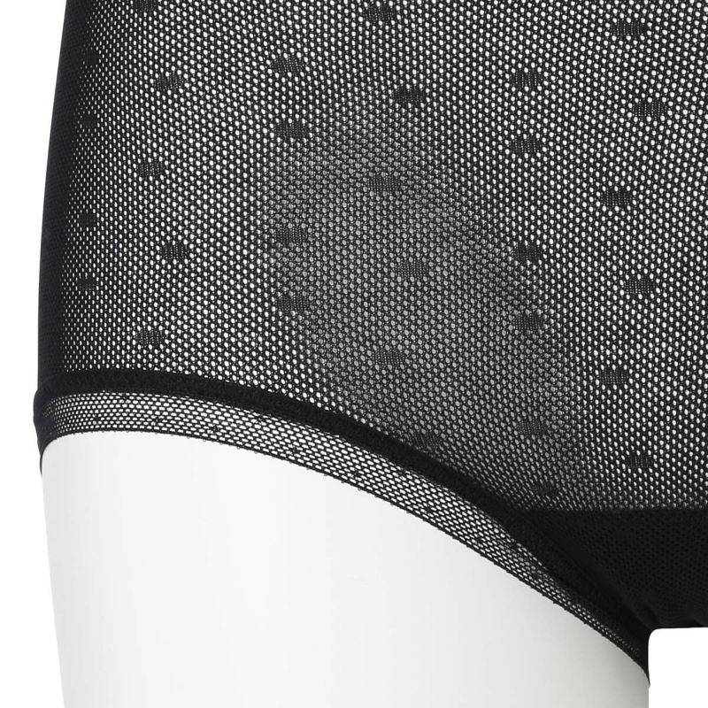 大人気だったドットメッシュ素材をドットのサイズを小さくしリニューアル。糸にシルケット加工を施すことで、きれいな風合いに仕上げ着用によるダレ感も軽減。メッシュの清涼感と通気性で蒸れやすい夏の時期におすすめ。さりげないドット柄をレースにも散りばめて上品な中にも可愛らしさをプラス。