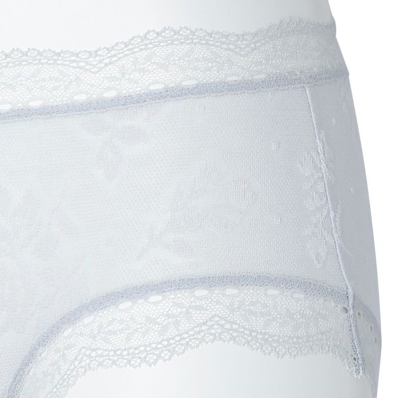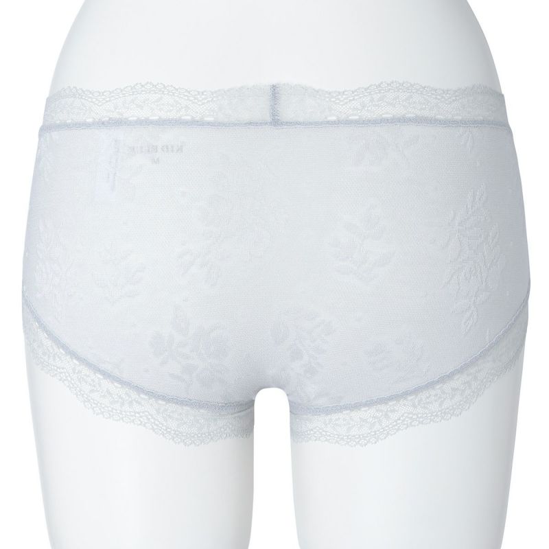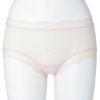 浅めの履き丈でウエスト位置が低いため、お腹周りを締め付けずリラックスした履き心地のヒップハンガーショートカルソン。布面積が少ない分、スタイリッシュな見え感。ウエスト・脚口には華やかなレースをあしらい可愛らしく仕上げました。ブランドネーム・洗濯表示はパッドプリントでストレスフリーな履き心地。
