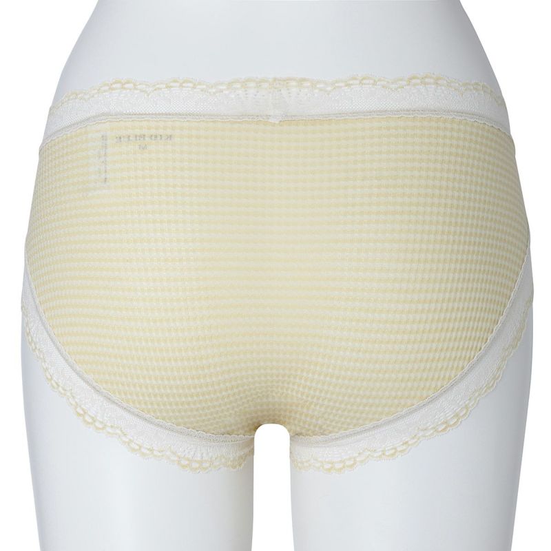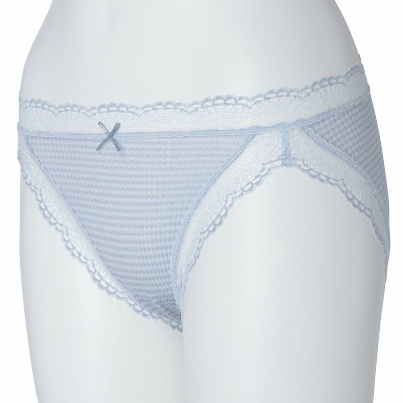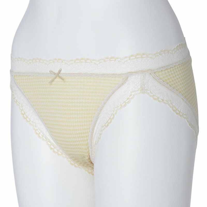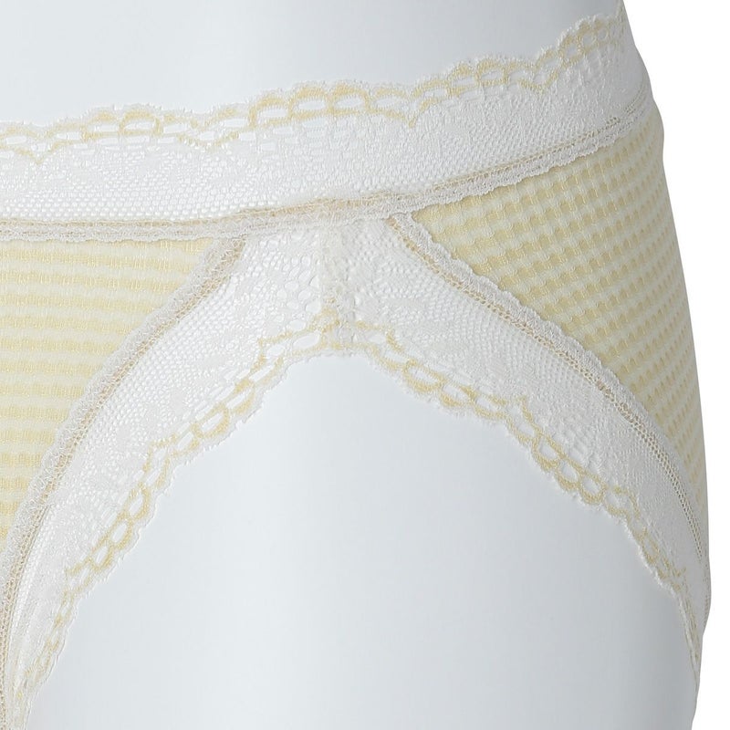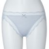 ベンベルグと綿の交編で凹凸を出しており、さらりとした肌当たりが心地よいインナーウェア。吸放湿機能があり蒸れにくく汗ばむ季節におすすめ。ボーダーのカラーと合わせた同色系のやや太幅の配色レースで品よくきまる。伸びがよくエアリーな透け感と主張しすぎないボーダーの絶妙なバランスが魅力です。