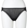 ノーマルショーツは、鼠径部に沿った足ぐりで動きやすくすっきり見えるスタンダードタイプ。フロント、バックともコットン100%のメッシュ素材で爽やかな着用感。ウエストはレースでかわいさに加えゴムではなくレースのストレッチでフィットするので肌当たりがソフト。