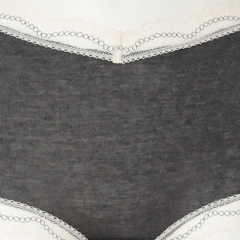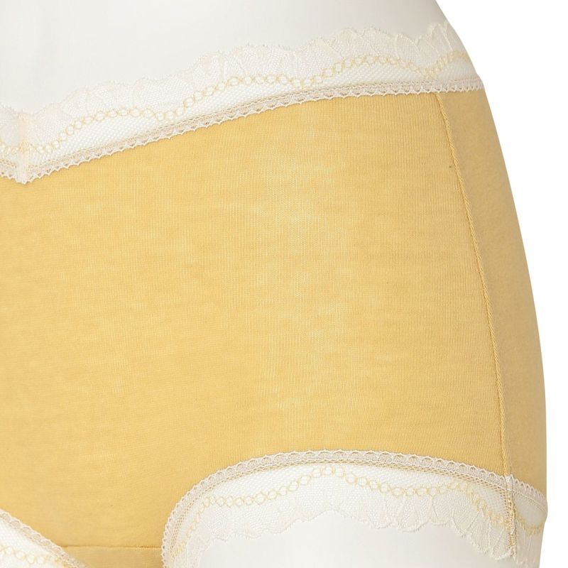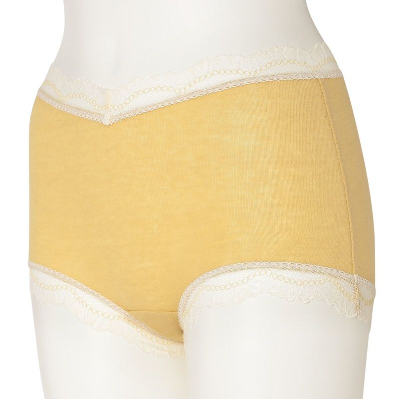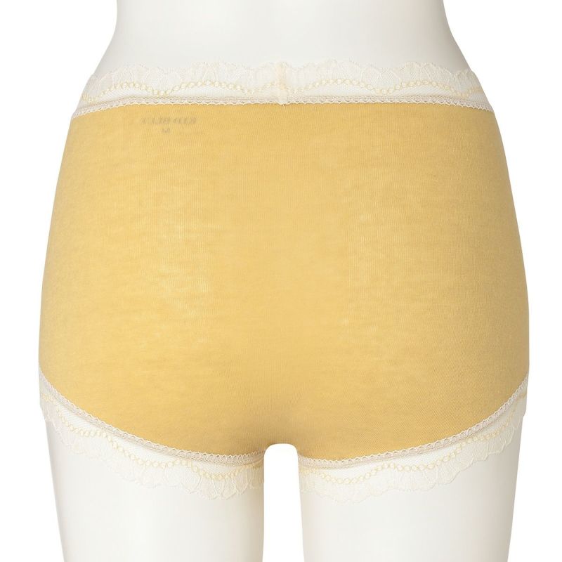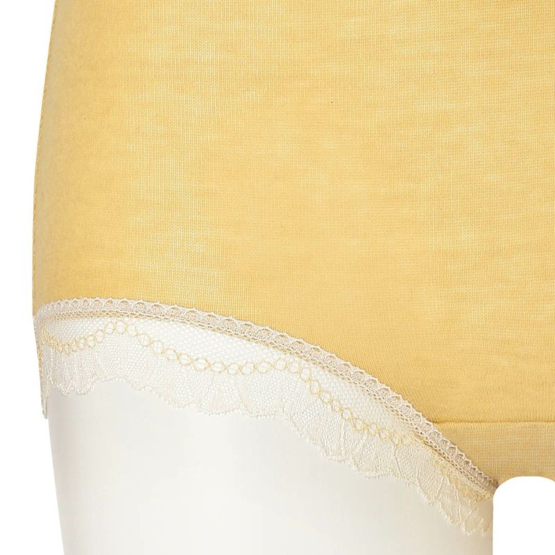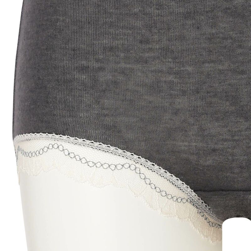 ほどよいウエストの深さとヒップの包み込みが人気のショートカルソン。たっぷり施したウエストと脚口のレースがポイントです。ブランドタグとサイズタグは生地にプリントする仕様にし、肌へ触れるごろつきを軽減。優しい履き心地にこだわりました。