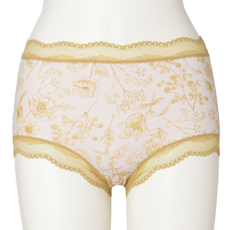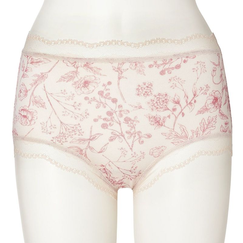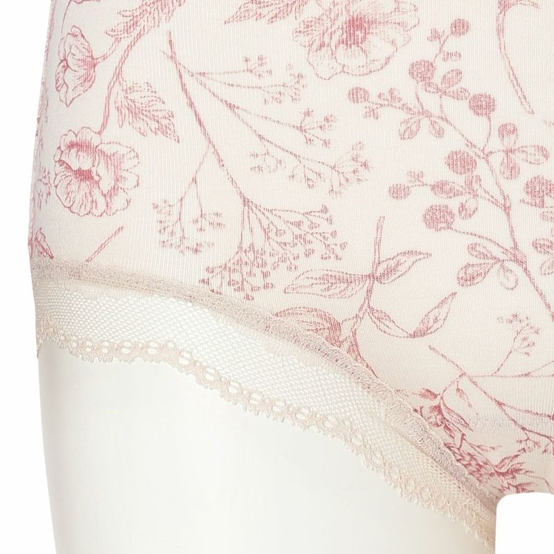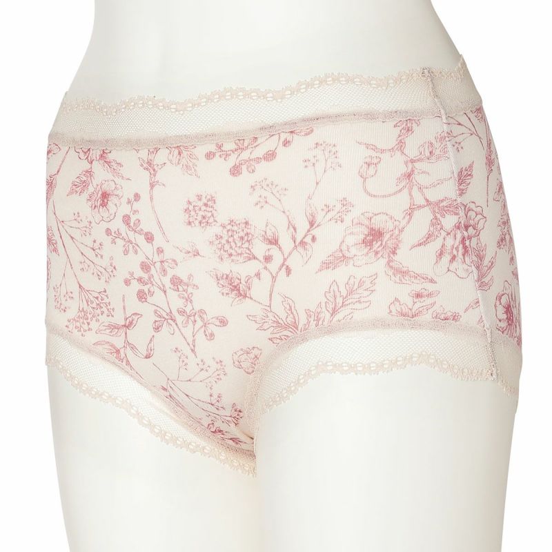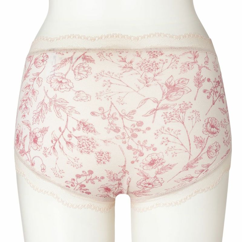 お腹やヒップまで包み込み安心感のある履き心地が魅力のショートカルソン。まるでスケッチのように描かれた花々が楽しめます。ウエスト部分や脚口にほどこしたストレッチレースで大人のかわいらしさをプラス。ブランドネームやサイズタグは生地にプリントを施しているので肌ストレスが少ない仕様。