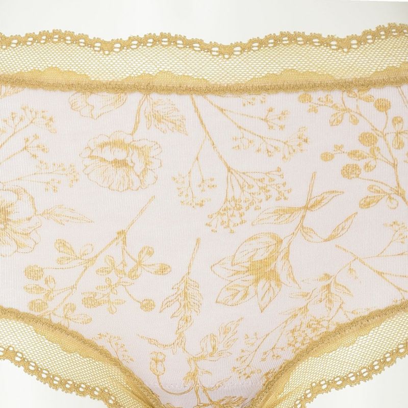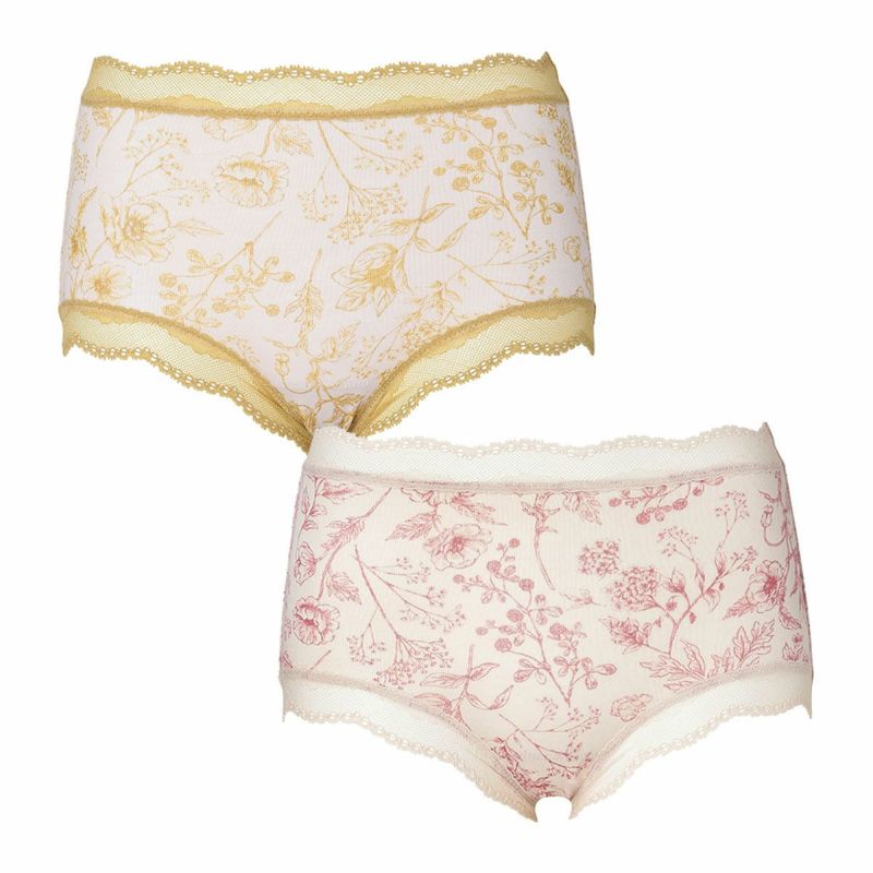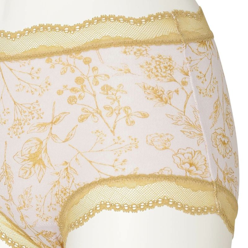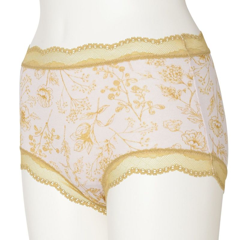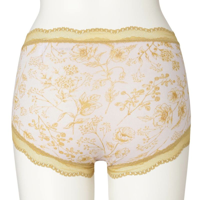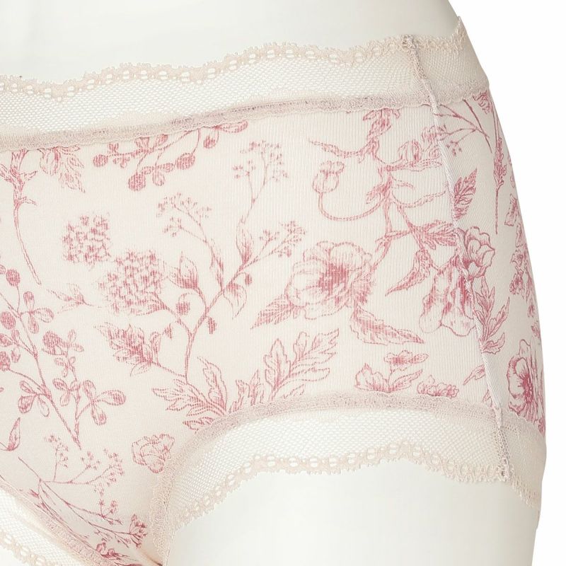 お腹やヒップまで包み込み安心感のある履き心地が魅力のショートカルソン。まるでスケッチのように描かれた花々が楽しめます。ウエスト部分や脚口にほどこしたストレッチレースで大人のかわいらしさをプラス。ブランドネームやサイズタグは生地にプリントを施しているので肌ストレスが少ない仕様。