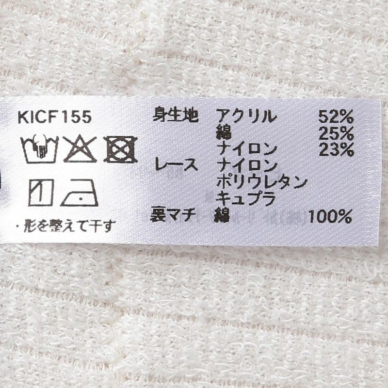 - 身生地 アクリル52% 綿25% ナイロン23% レース ナイロン ポリウレタン キュプラ 裏マチ 綿100%
