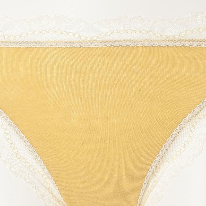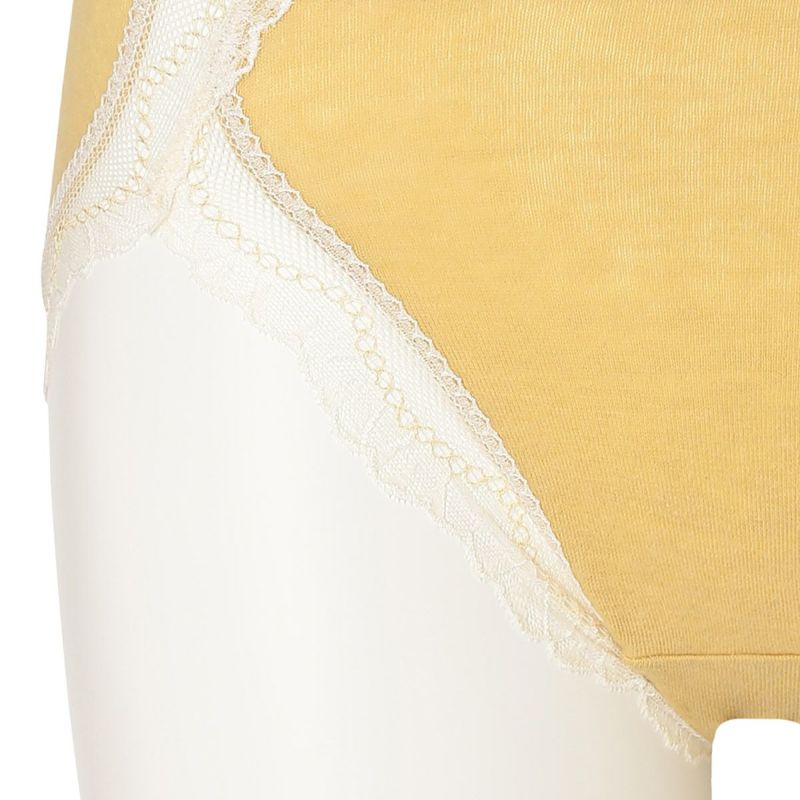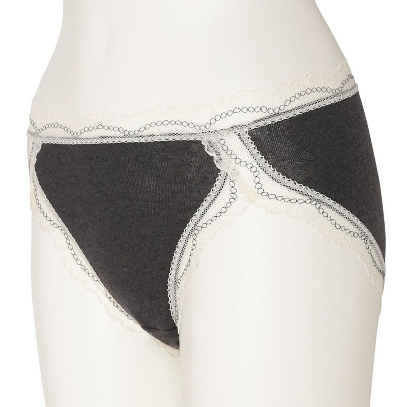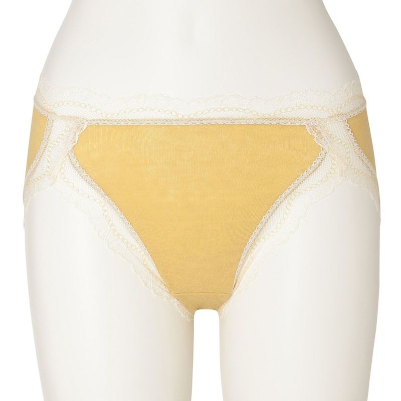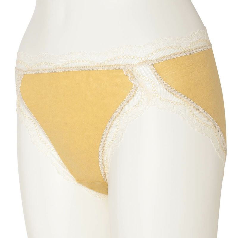 たっぷり施した配色レースがかわいらしいノーマルショーツ。鼠径部に沿った足ぐりのデザインは動きやすい。ブランドタグとサイズタグは生地にプリントする仕様にし、肌へ触れるごろつきを軽減。優しい履き心地にこだわりました。