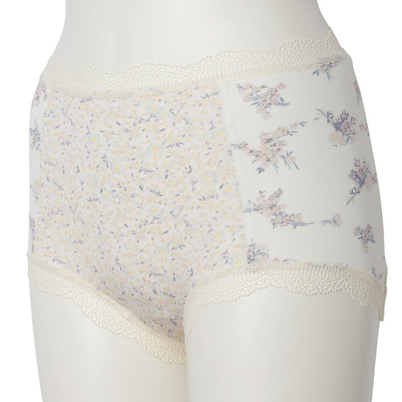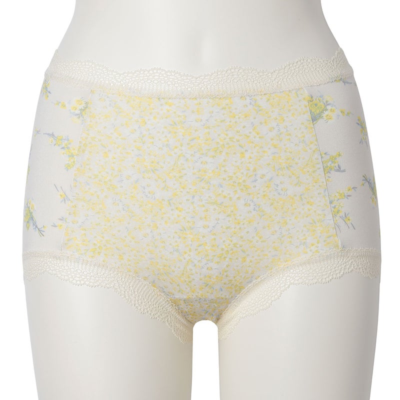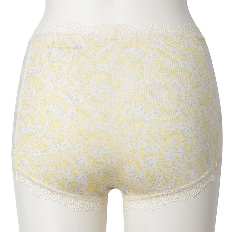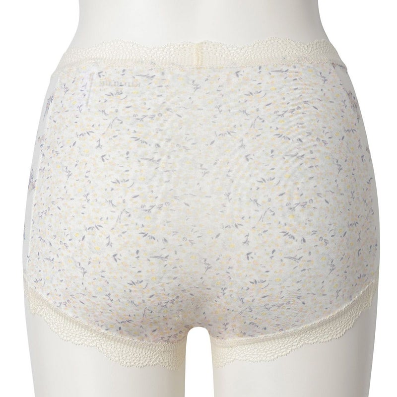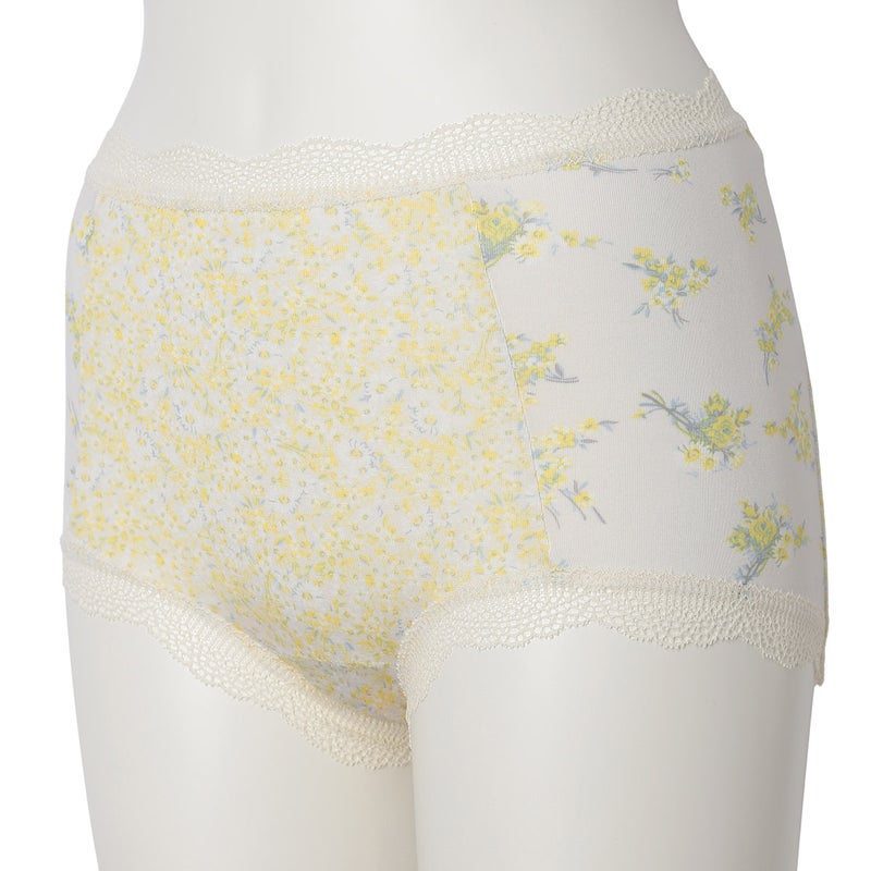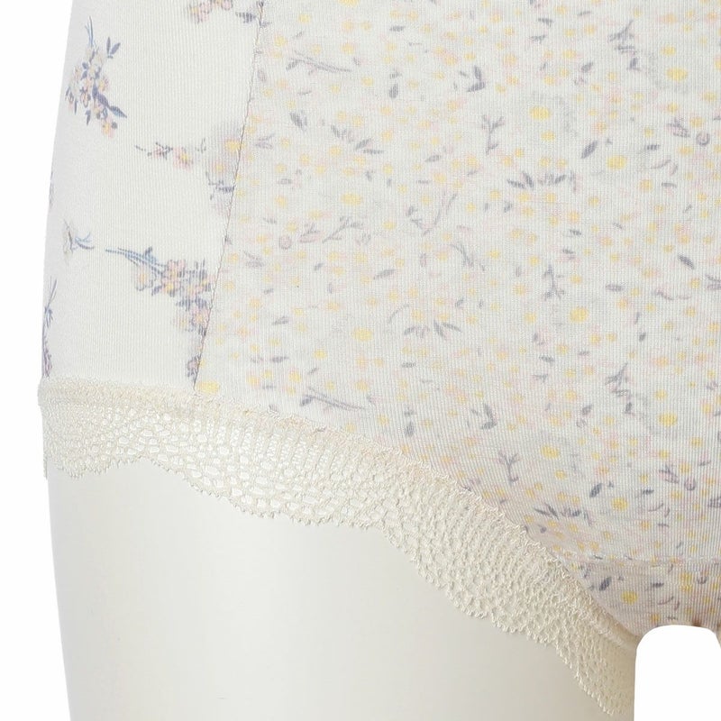 プリントの切り替えデザインにウエスト・裾にレースをあしらった華やかショートカルソン。お腹やヒップまで包み込み安心感のある履き心地が魅力です。ブランドネームやサイズタグは生地にプリントを施しているので肌ストレスが少ない仕様。