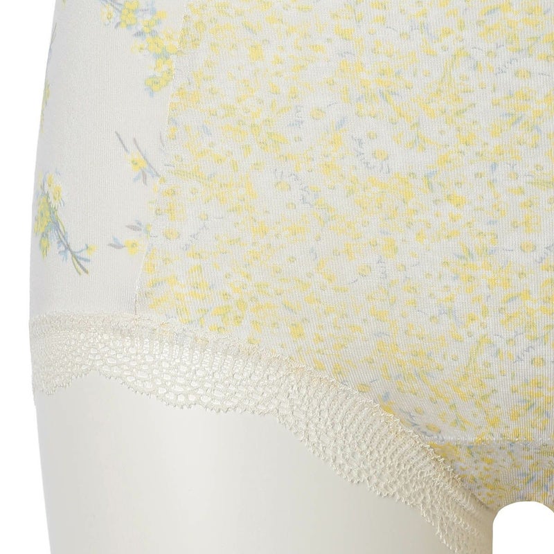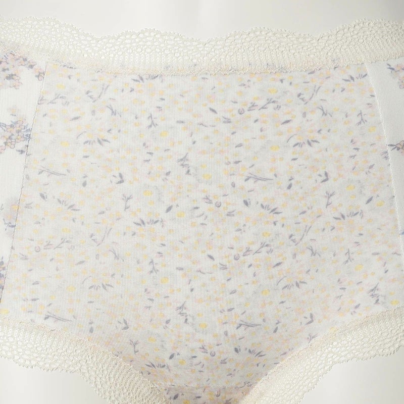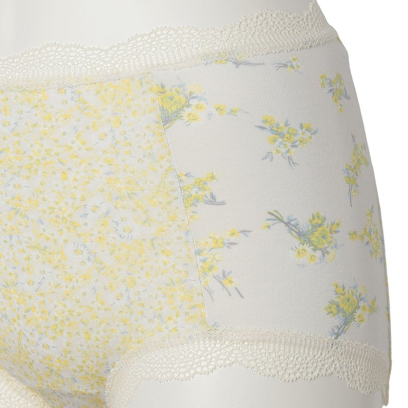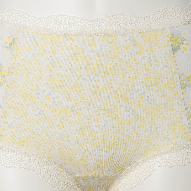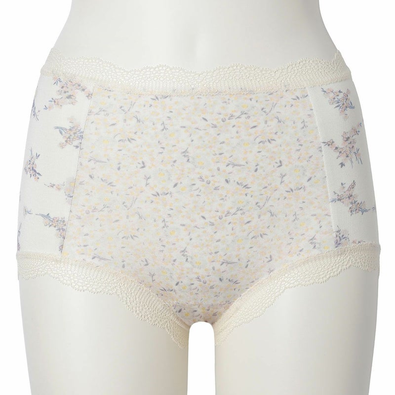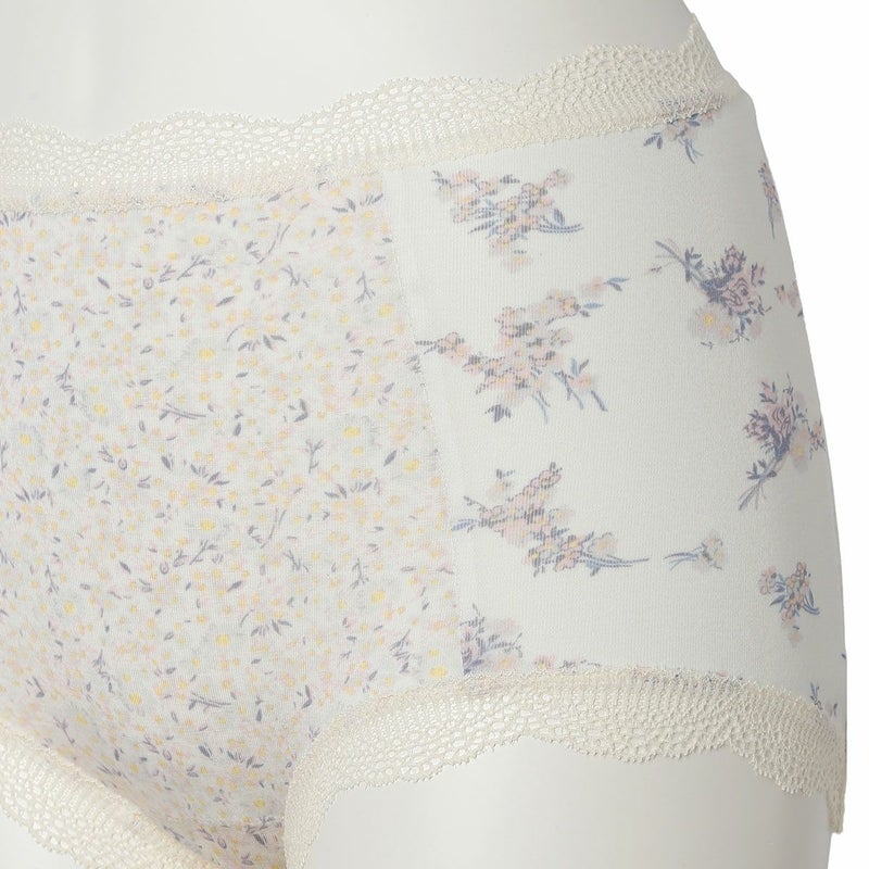 プリントの切り替えデザインにウエスト・裾にレースをあしらった華やかショートカルソン。お腹やヒップまで包み込み安心感のある履き心地が魅力です。ブランドネームやサイズタグは生地にプリントを施しているので肌ストレスが少ない仕様。