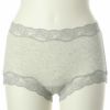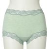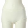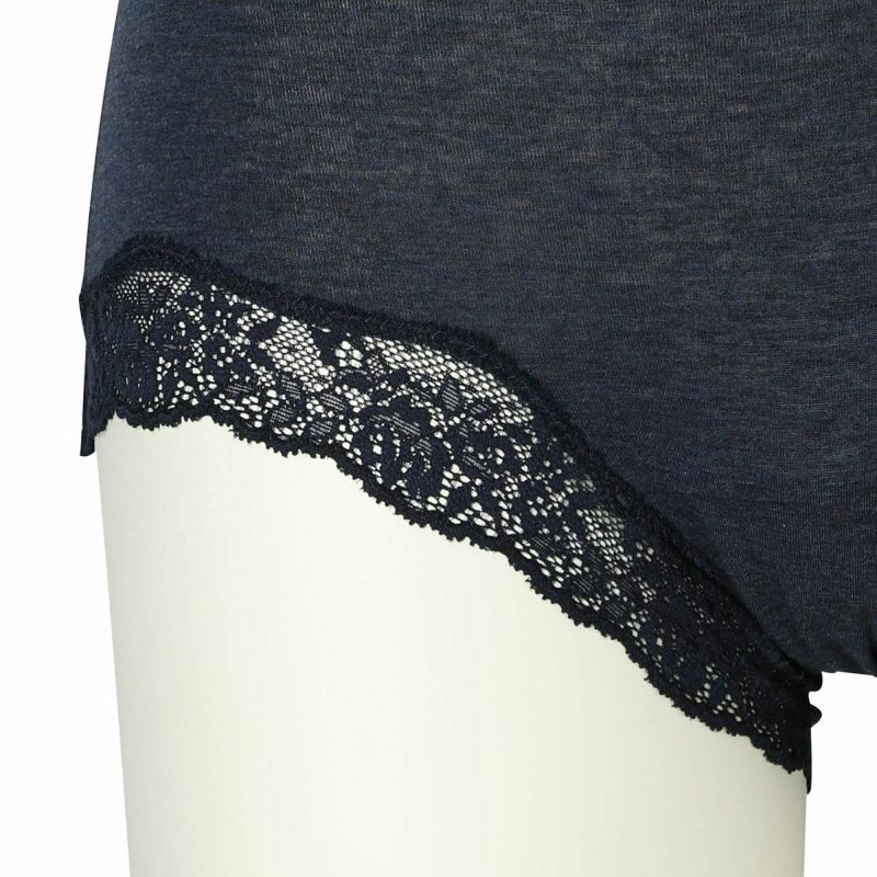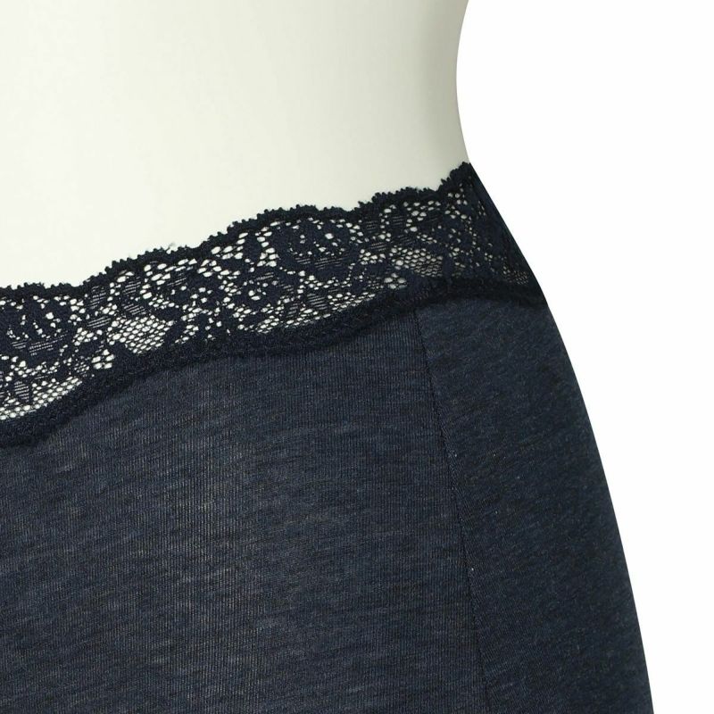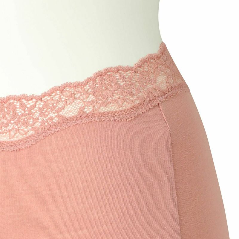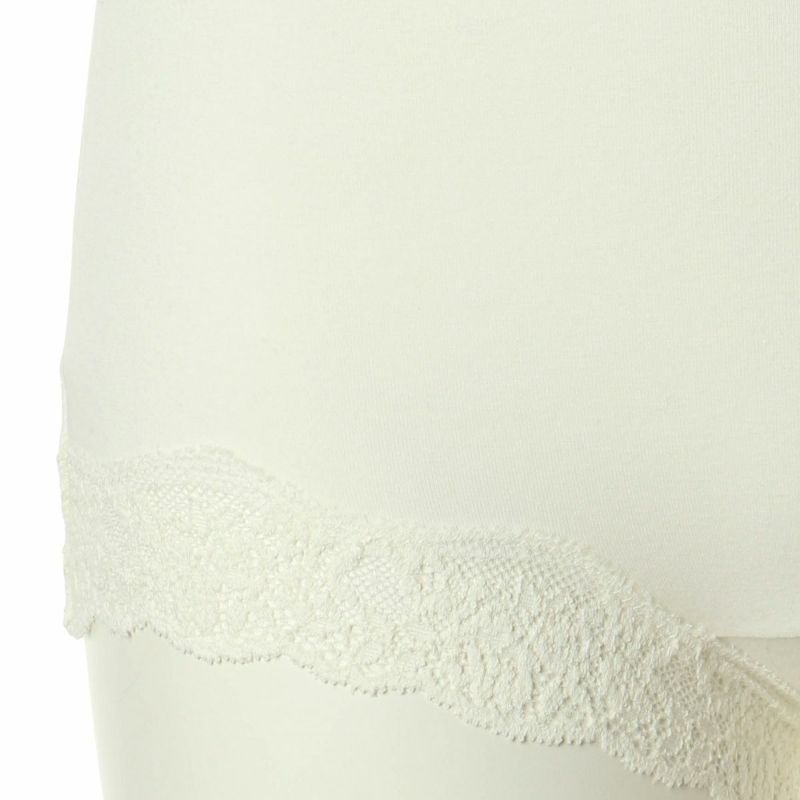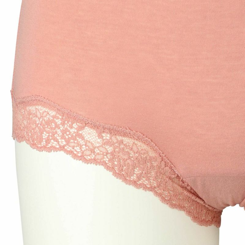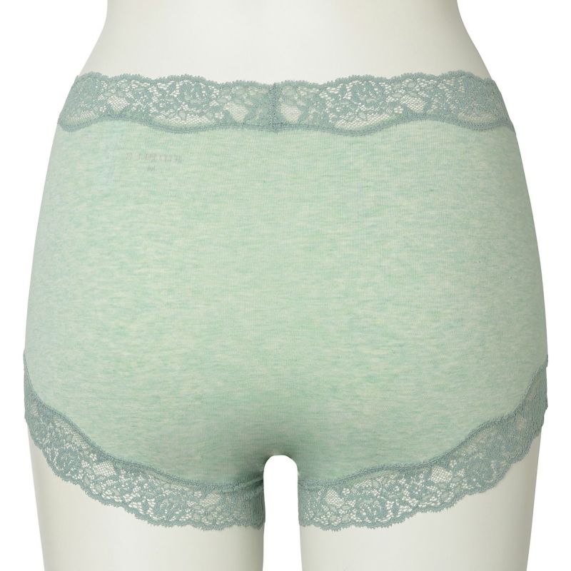 ショートカルソンは、やや深めの履きこみでお腹を包み込むような安心感あり。脚口まで生地があるのでヒップがはみ出る心配もなし。ウエストと脚口に施した綿混レースは柔らかく足さばきもよい、リピーター多数の人気パターン。