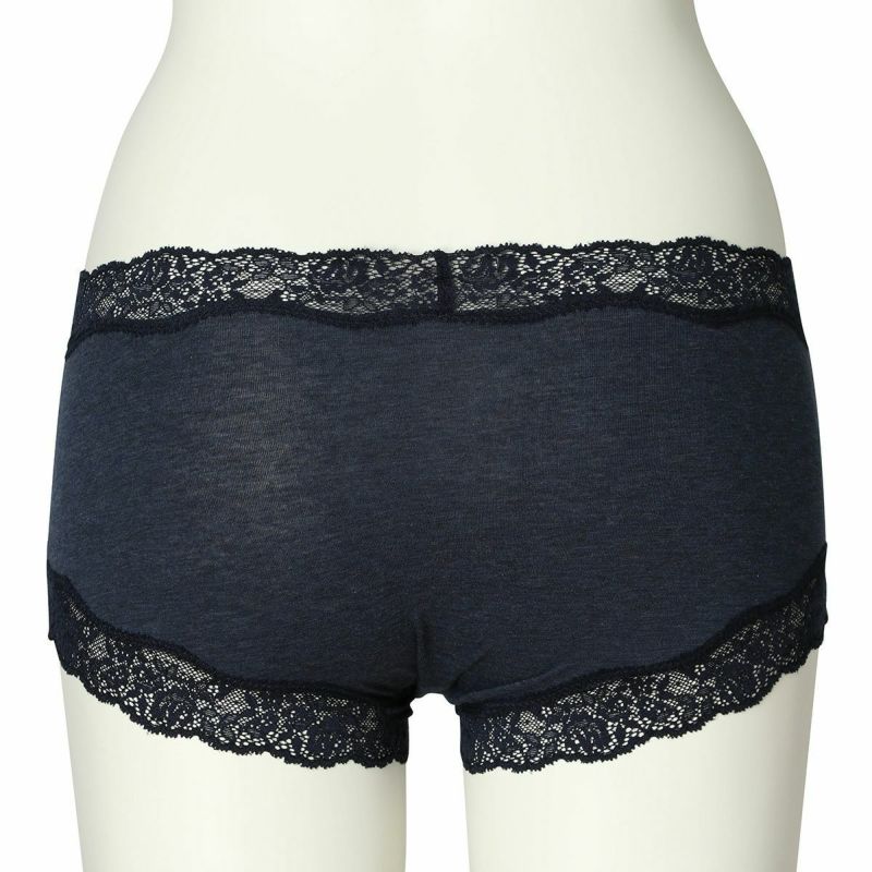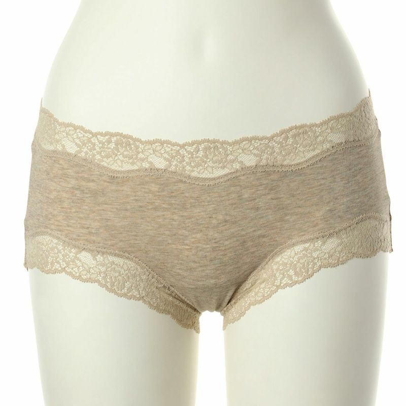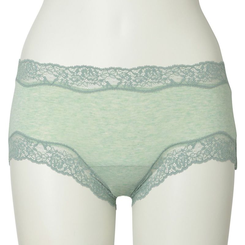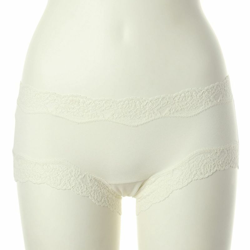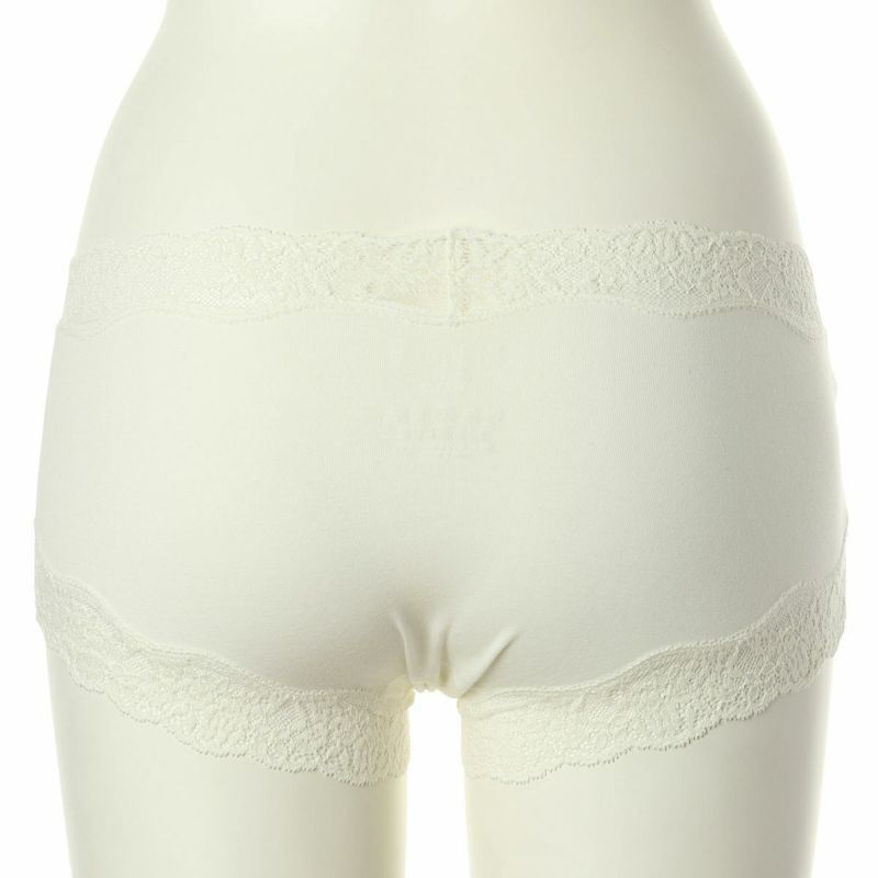 ヒップハンガーショートカルソンは、ボトムに響きにくい浅めのウエスト。ウエストと脚口に綿混レースを施しました。