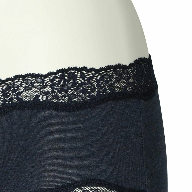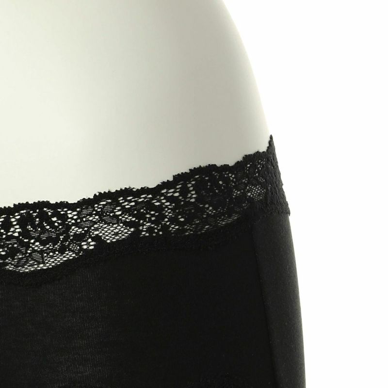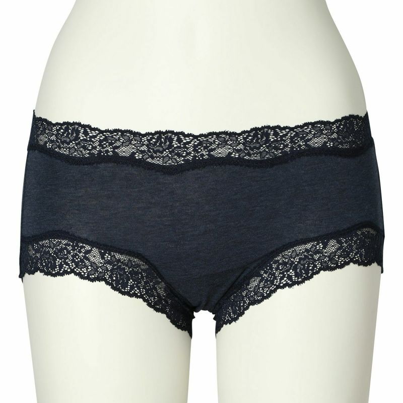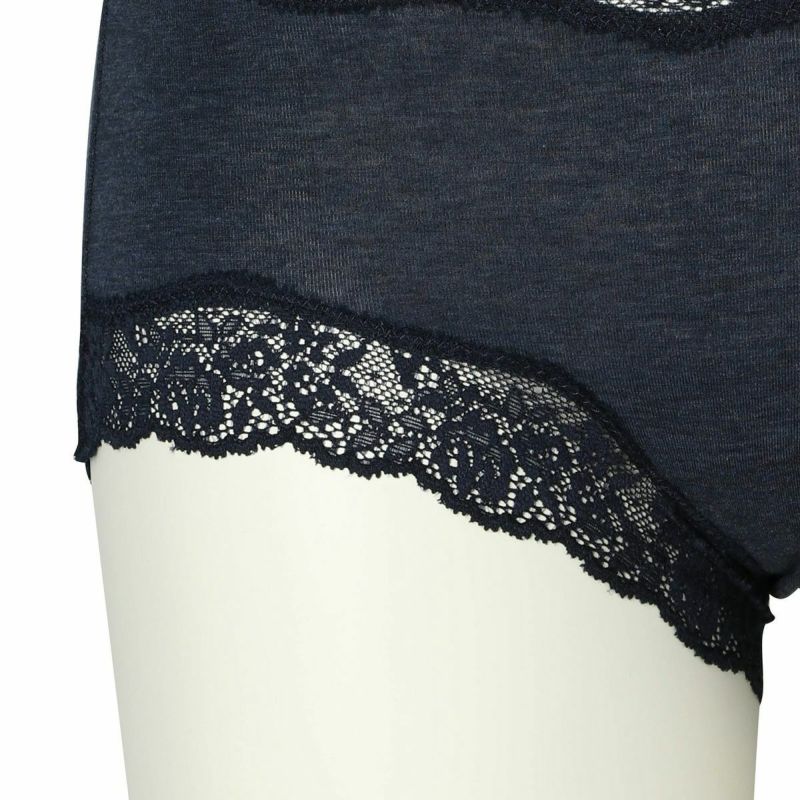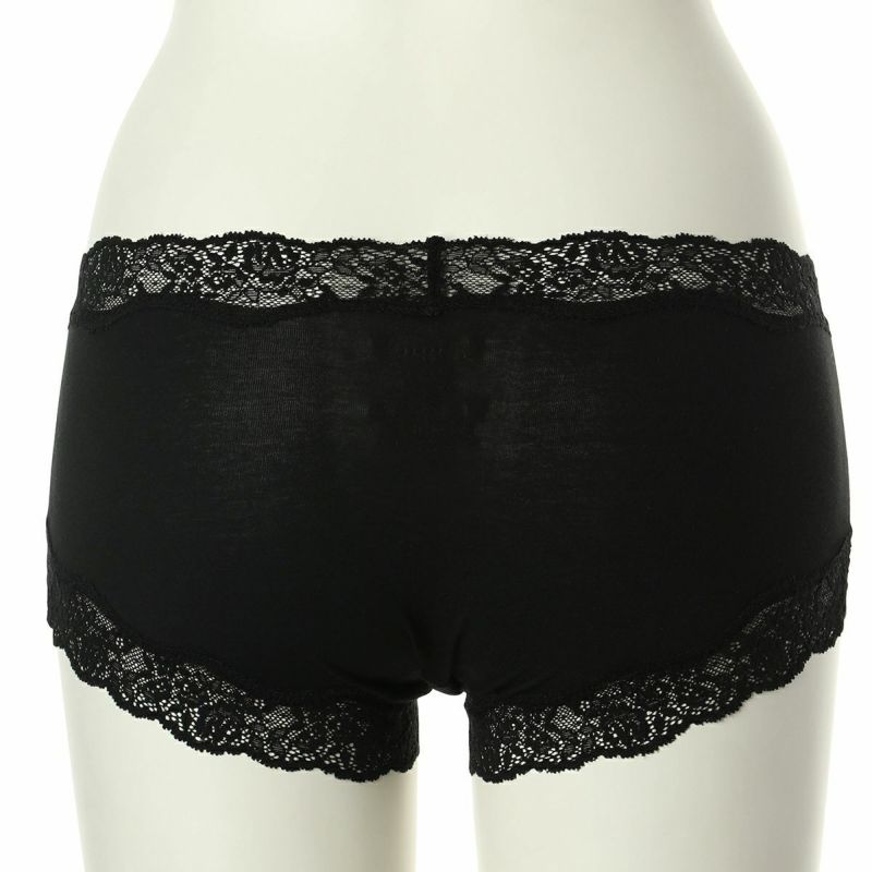 ヒップハンガーショートカルソンは、ボトムに響きにくい浅めのウエスト。ウエストと脚口に綿混レースを施しました。