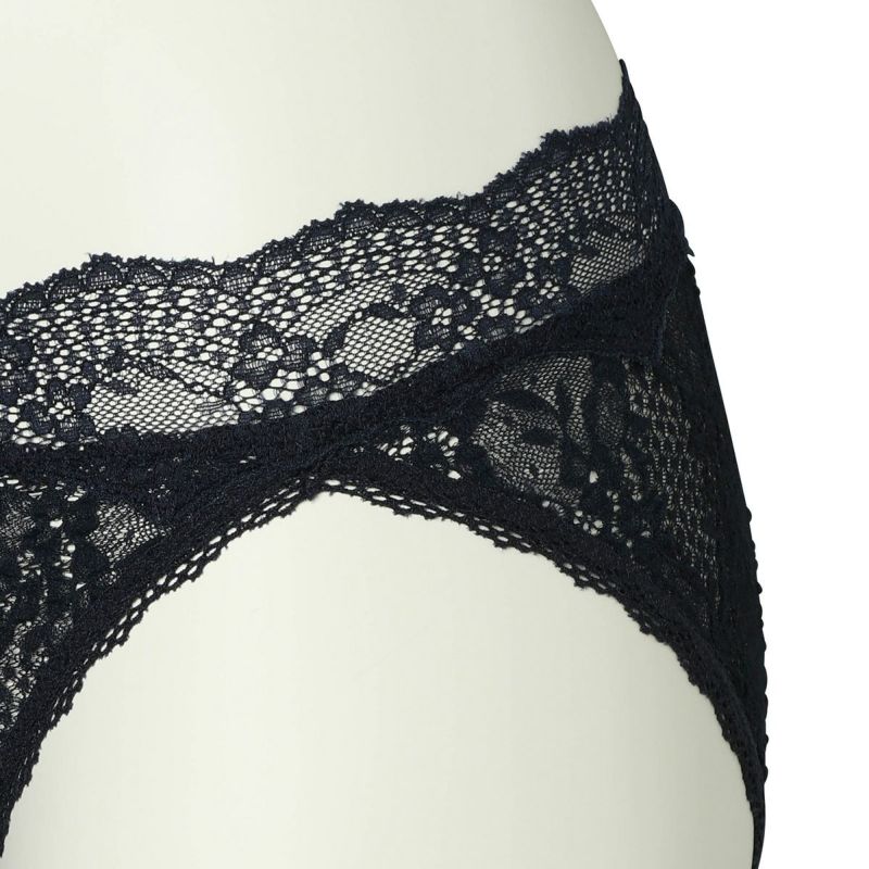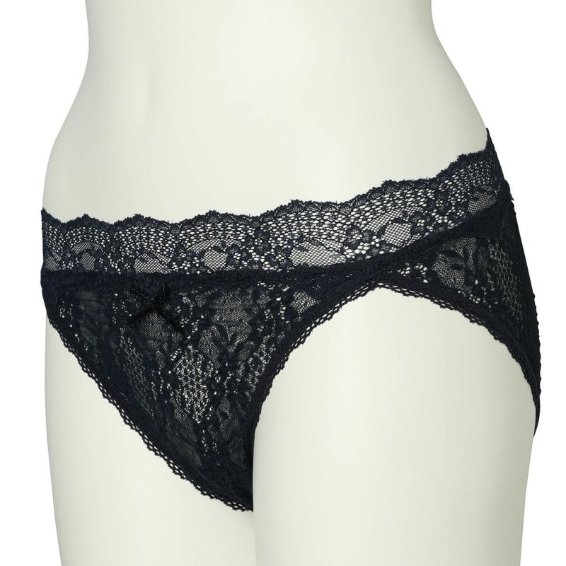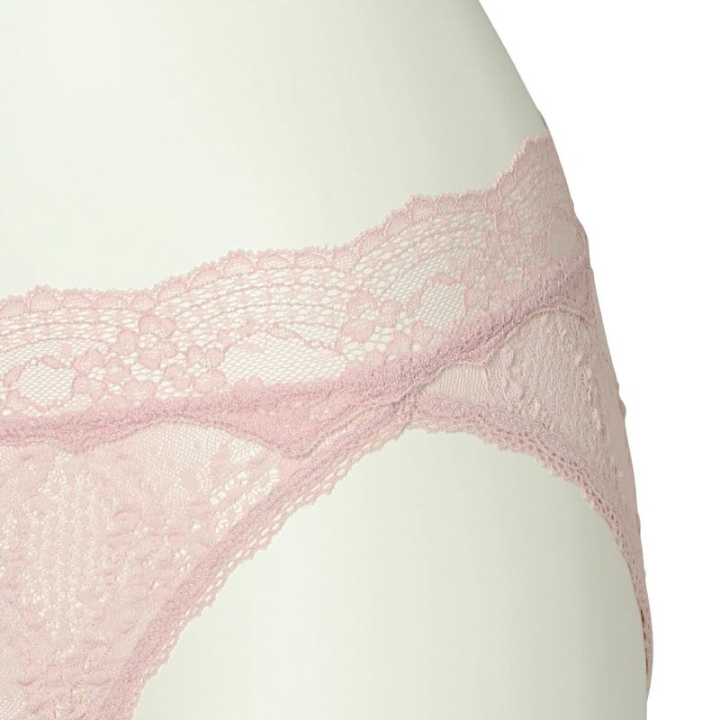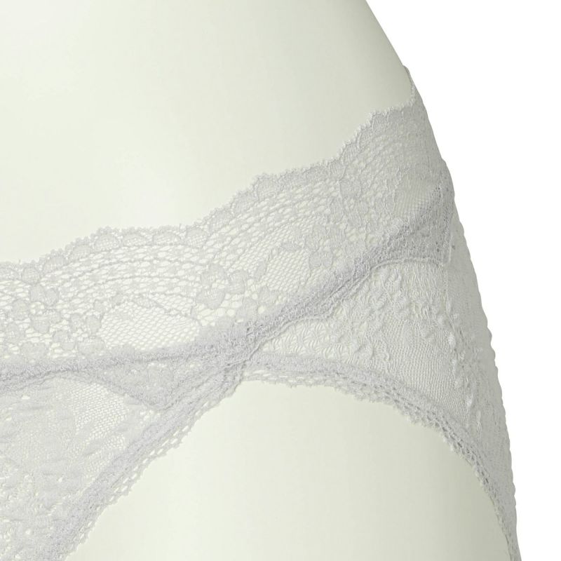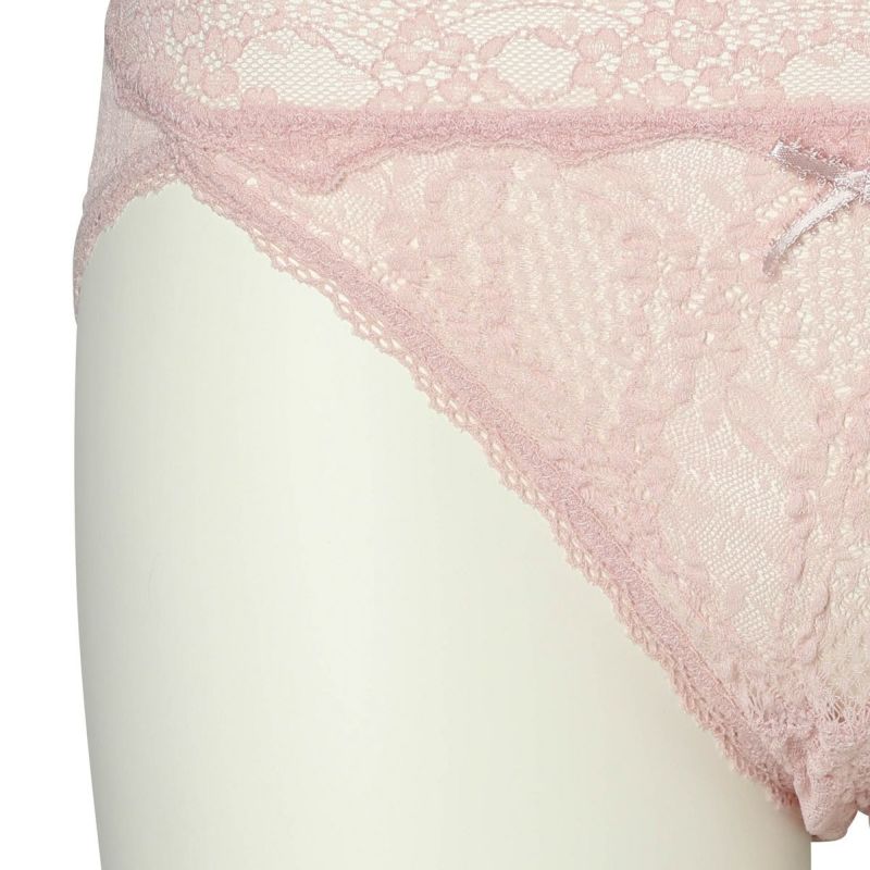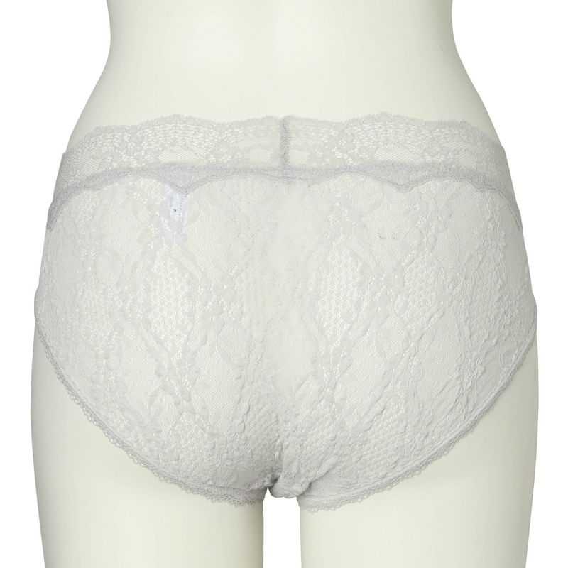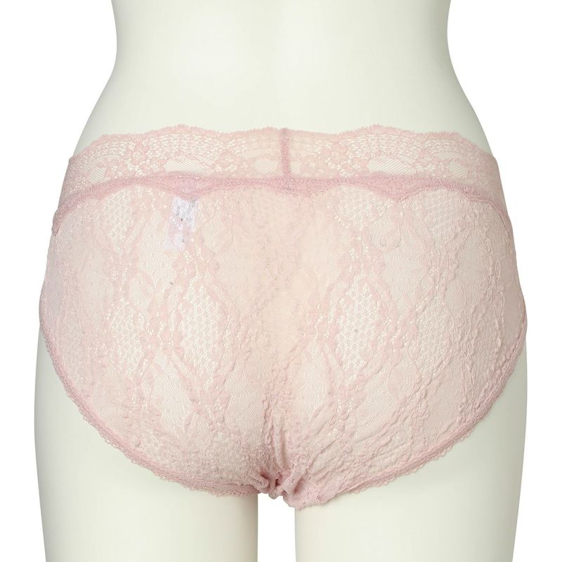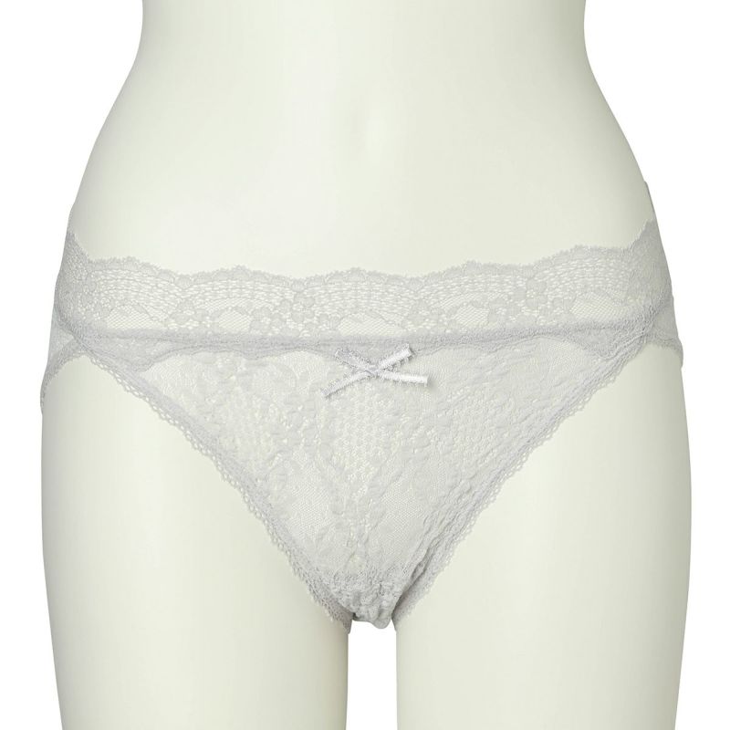 ノーマルショーツは、ウエスト部分に切り替えた、透け感のある華やかなレースがデザインポイント。