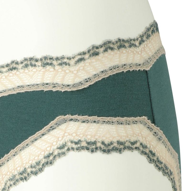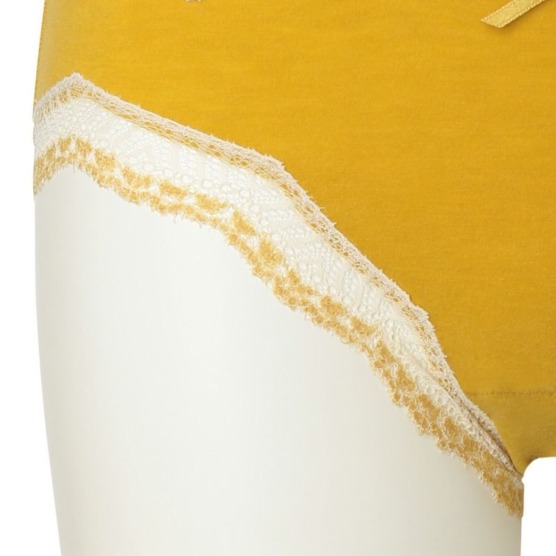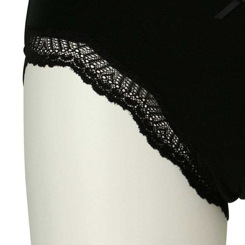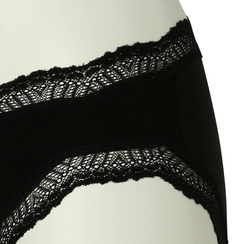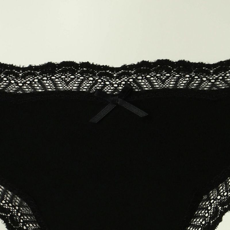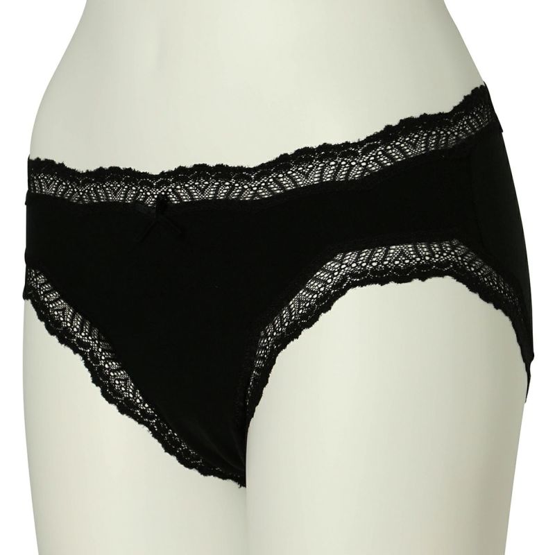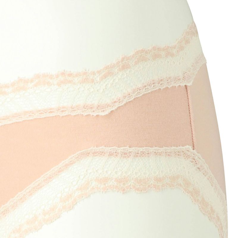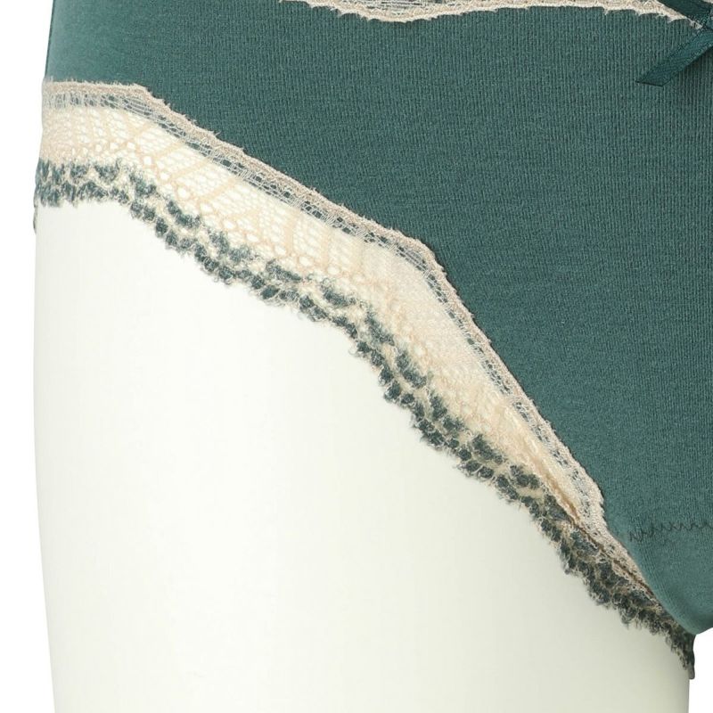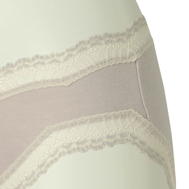 ノーマルショーツは、鼠径部に沿った脚口が広く動きやすい。ウエストはゴムではなくストレッチレースの為、楽な履き心地。フロントのリボンがワンポイント。ブランドネーム・サイズは生地にプリントしてあるので肌ストレスの少ない仕様。