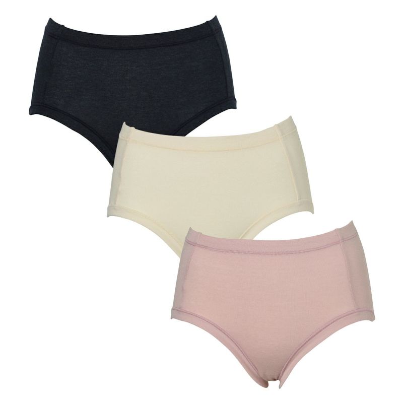 深型ショーツは、すっぽり安心の履き心地で、肌に優しいノンレース仕様。ブランドネーム・洗濯ネームをプリントにし、ストレスフリーな履き心地に。
