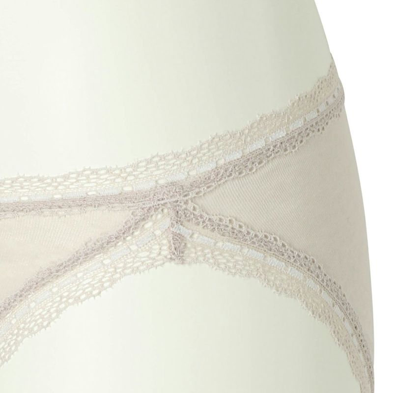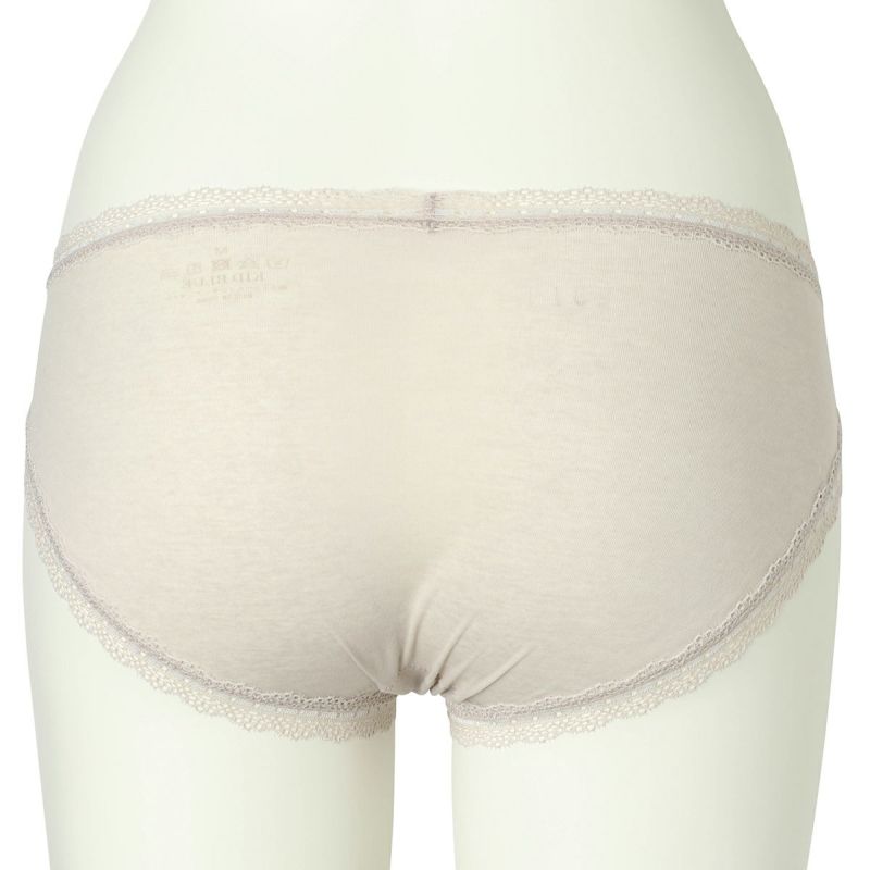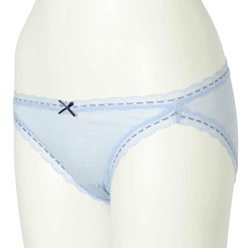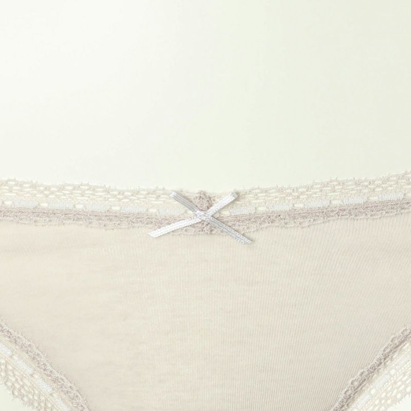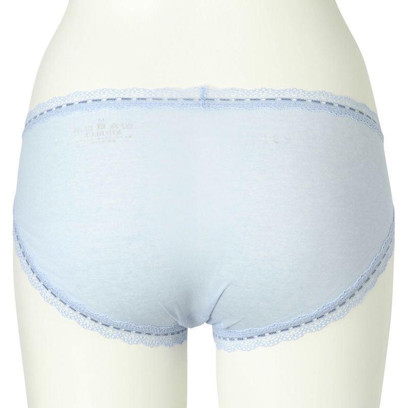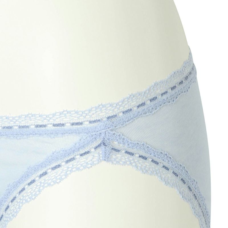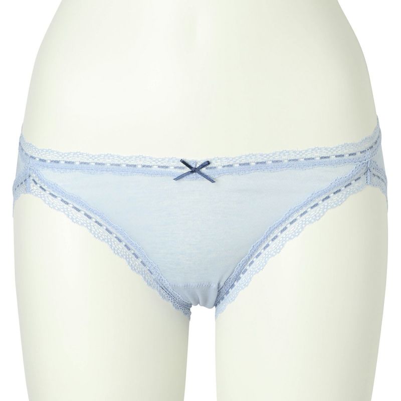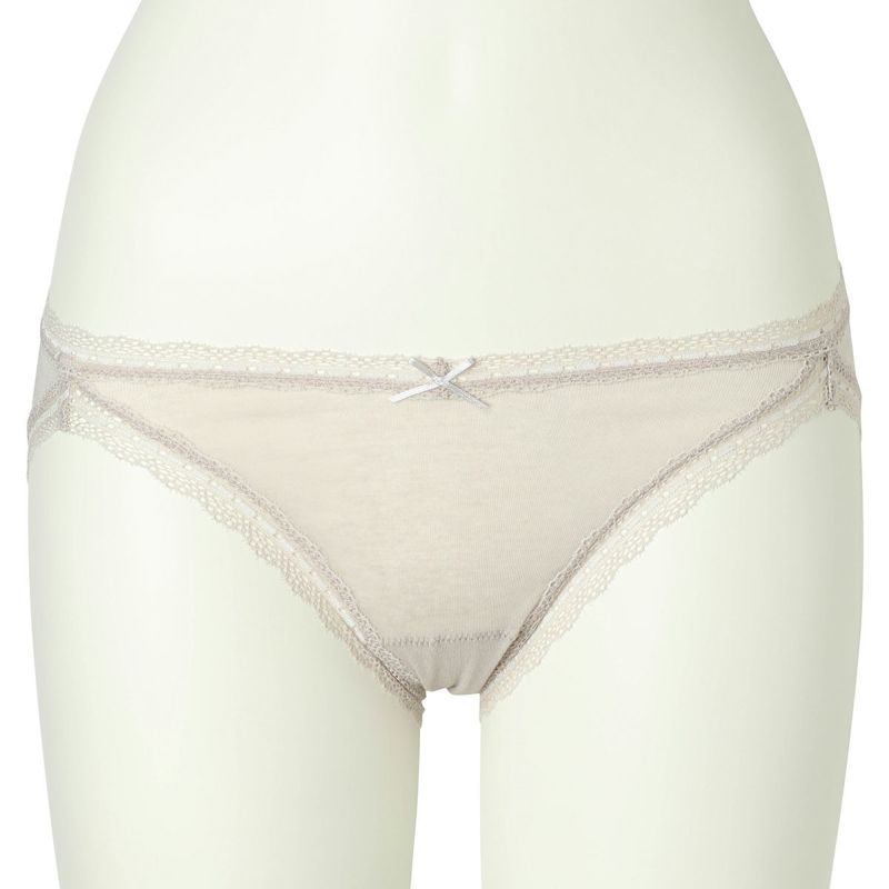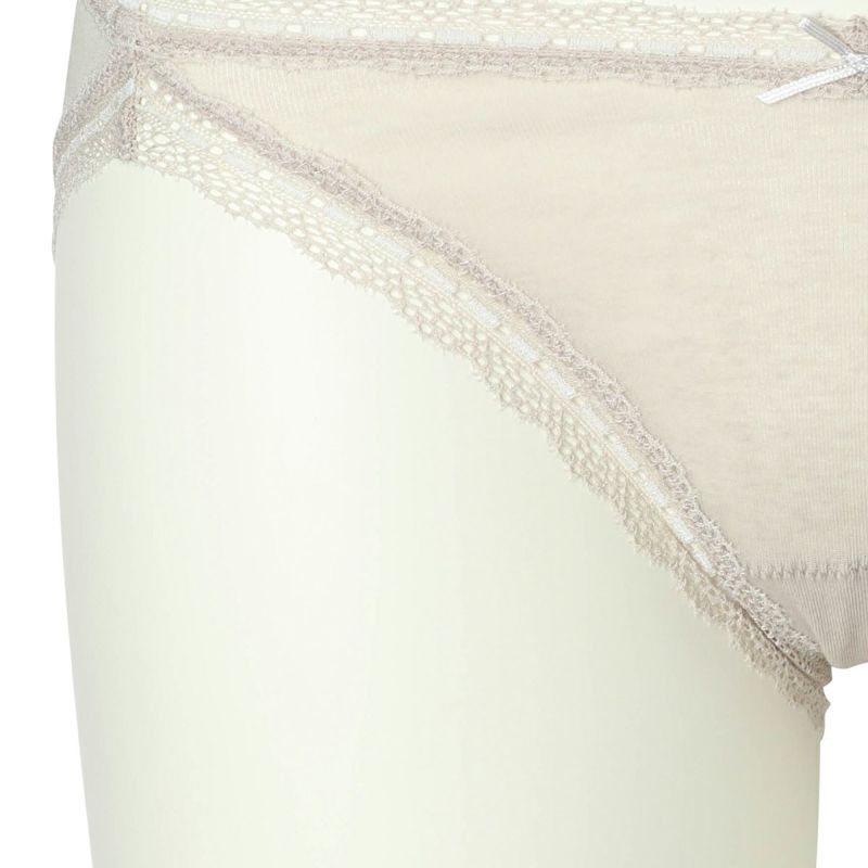 強撚糸を使用したサラサラとした肌触りの夏向けインナーシリーズ。レースは二浴染めを行い、リボンを通したような見え感に。