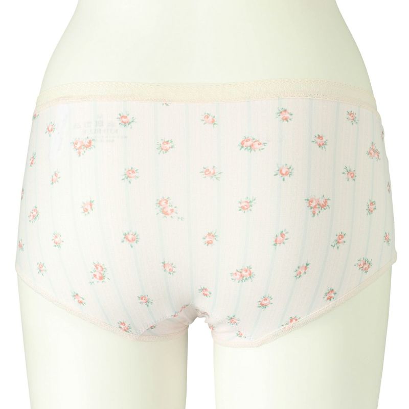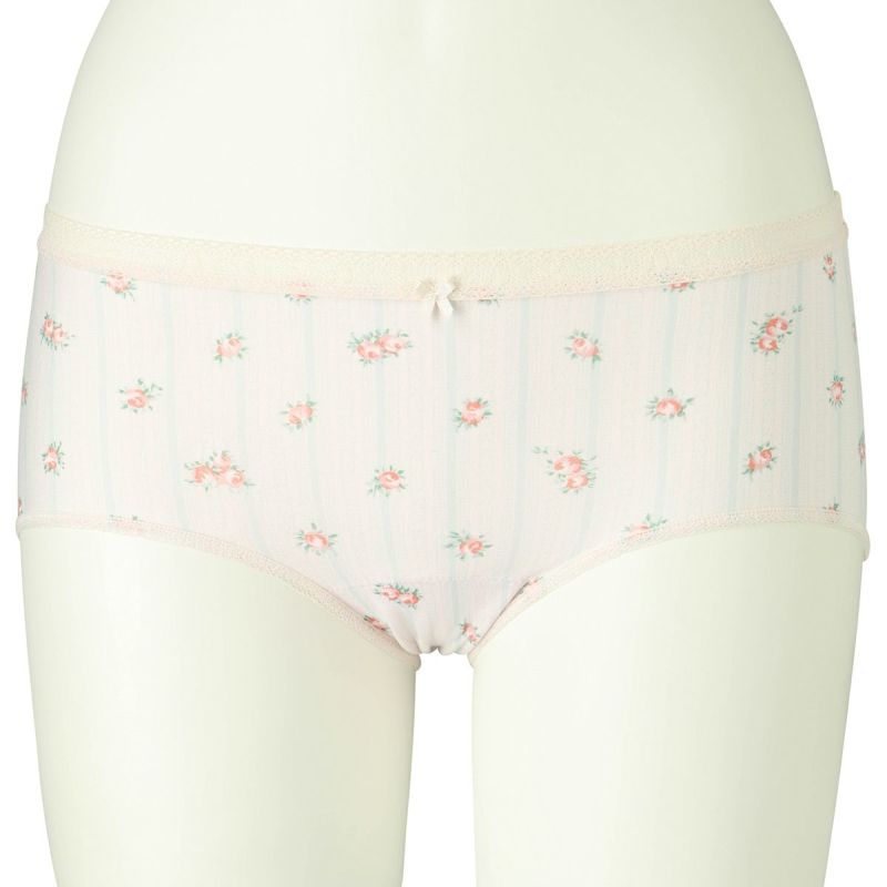 ヒップハンガーショートカルソンは、すっきりと履ける浅履きタイプ。センターのプチリボンがさりげないアクセント。ブランドネーム・洗濯表示はパッドプリント。