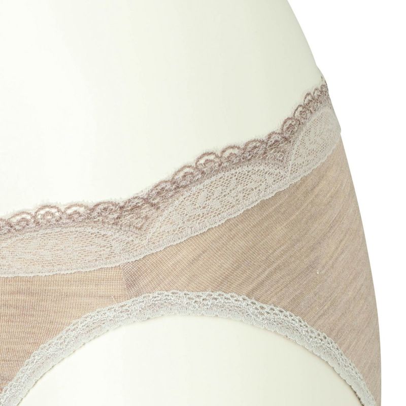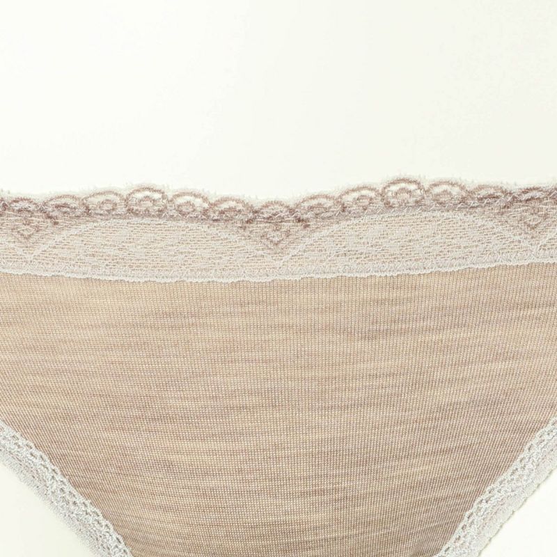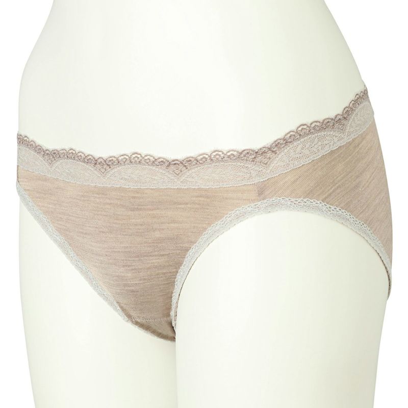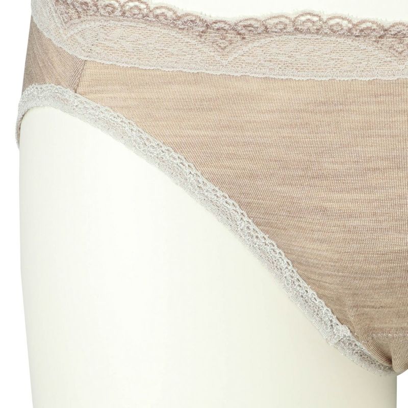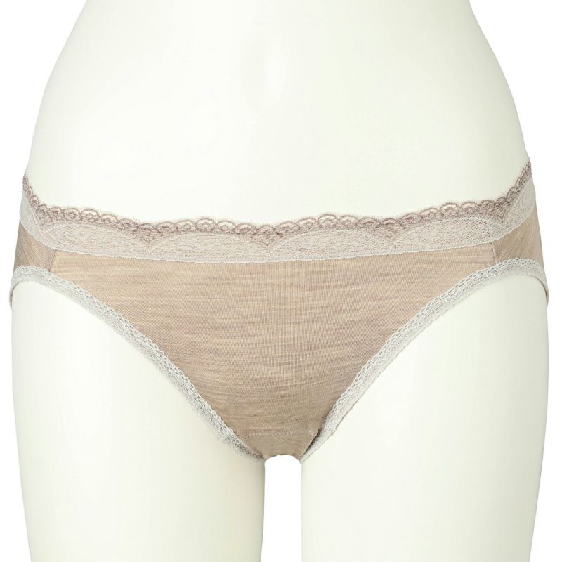 ウエストには品よく映える配色レース、脚口には細幅レースをあしらいました。