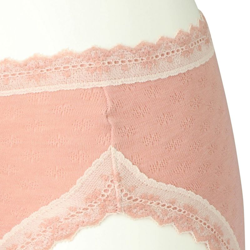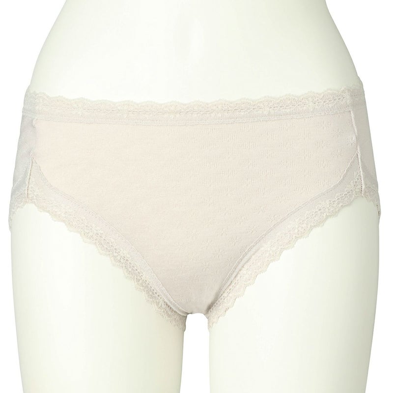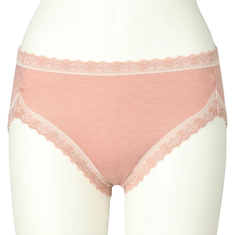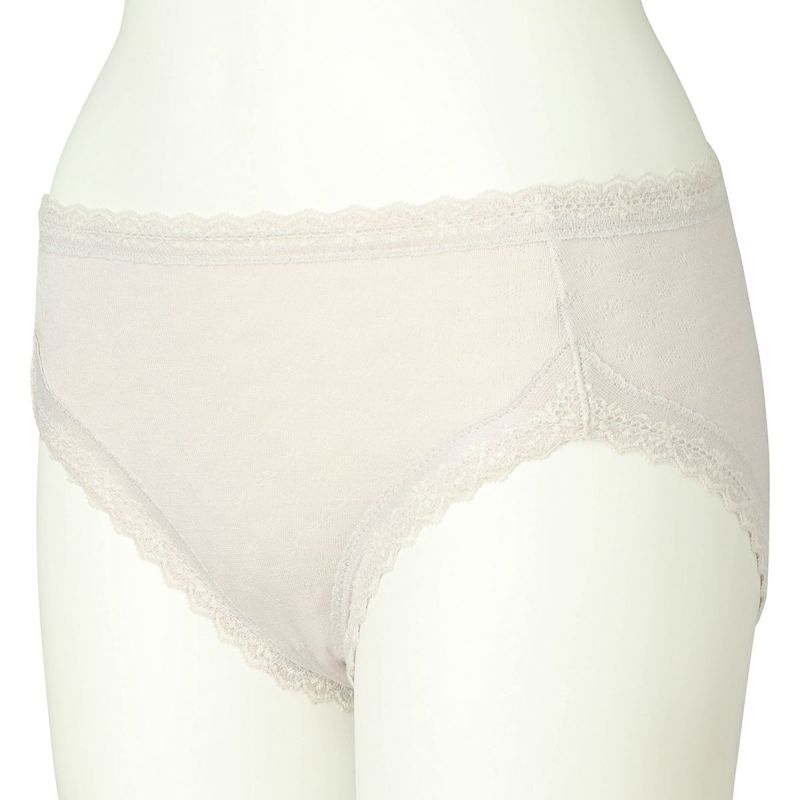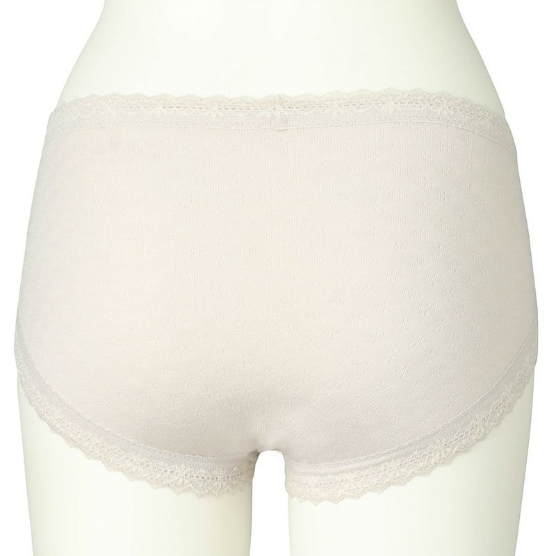 深型ショーツは、広い脚口と深めの履き込み。お腹〜お尻を包み込むような履き心地。ブランドネーム・洗濯表示はパッドプリントで、タグを無くした仕様。
