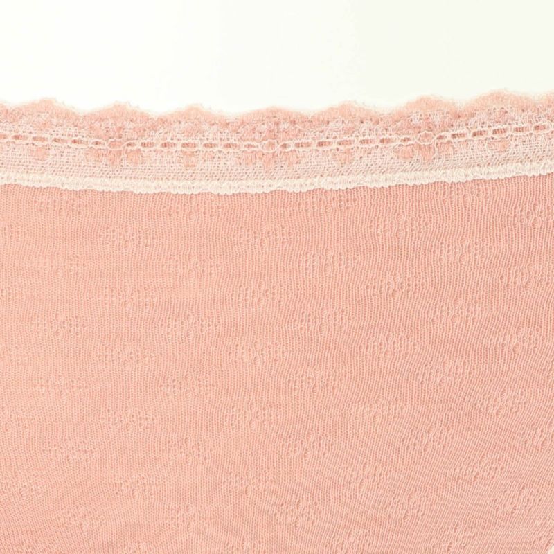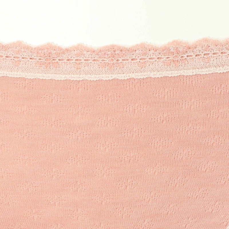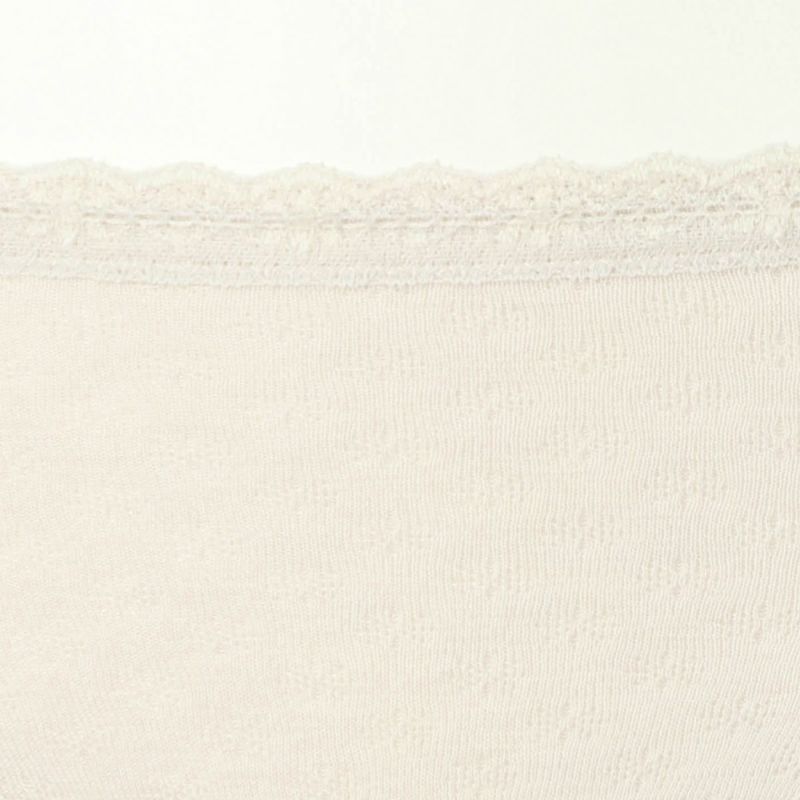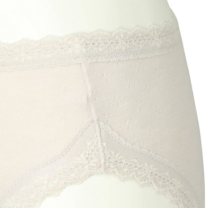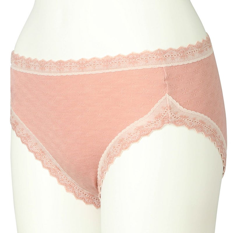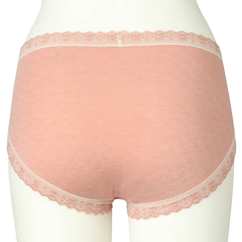 深型ショーツは、広い脚口と深めの履き込み。お腹〜お尻を包み込むような履き心地。ブランドネーム・洗濯表示はパッドプリントで、タグを無くした仕様。