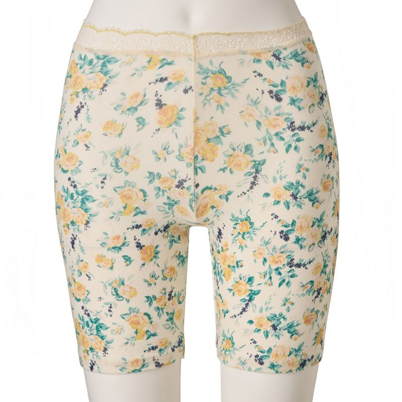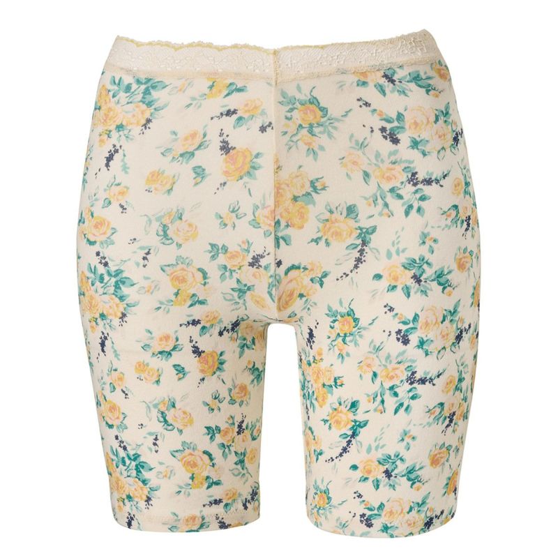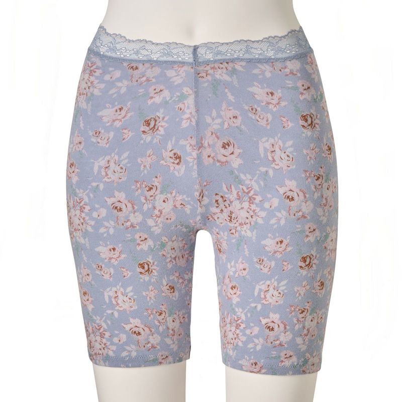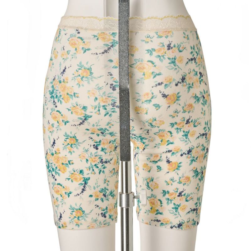 太ももの中間あたりまでの3分丈カルソン。クロッチマチ付きで1枚履きでも、防寒対策としてショーツの上から重ね履きも可能です。ウエストはレースなのでお腹周りが楽に履いていただけます。ブランドネームとサイズは生地にプリントしてあるので肌ストレスが少ない仕様。