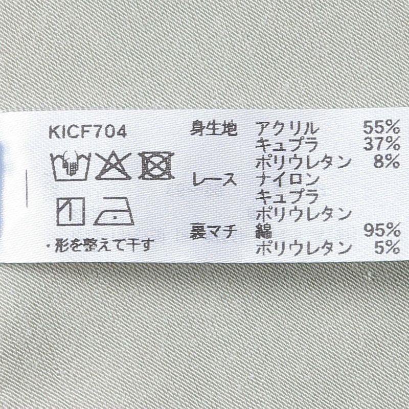 - 身生地 アクリル55% キュプラ37% ポリウレタン8% レース ナイロン キュプラ ポリウレタン 裏マチ 綿95% ポリウレタン5%