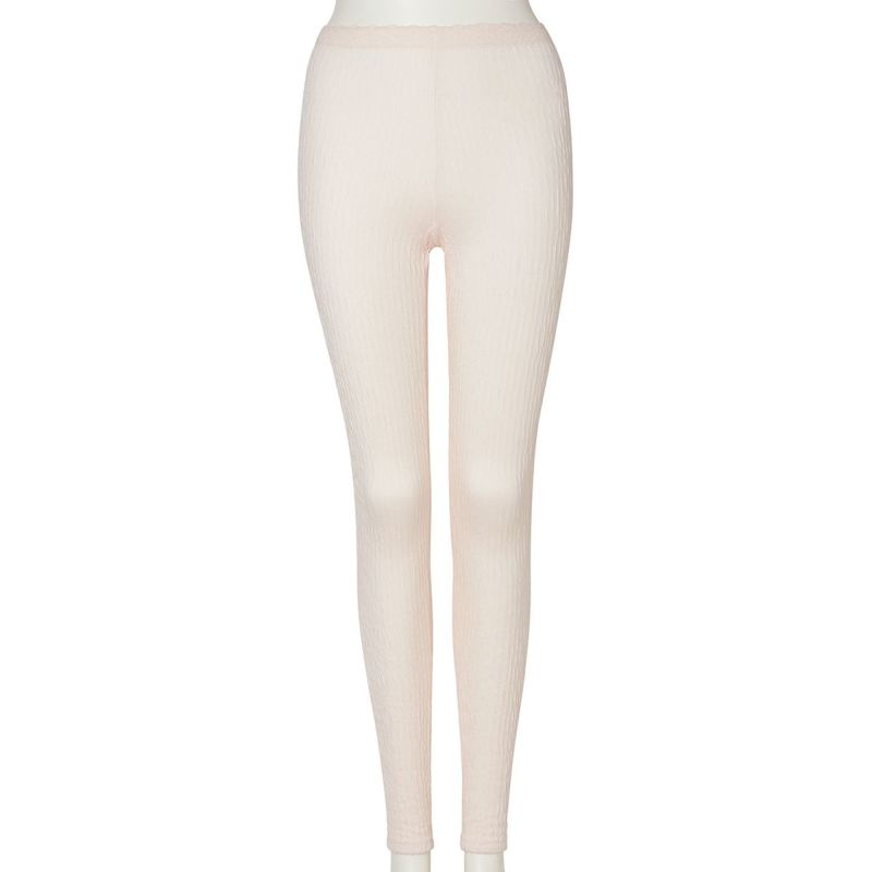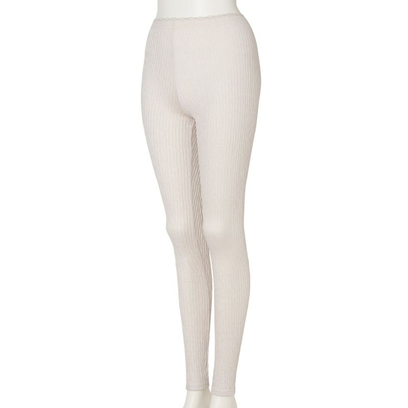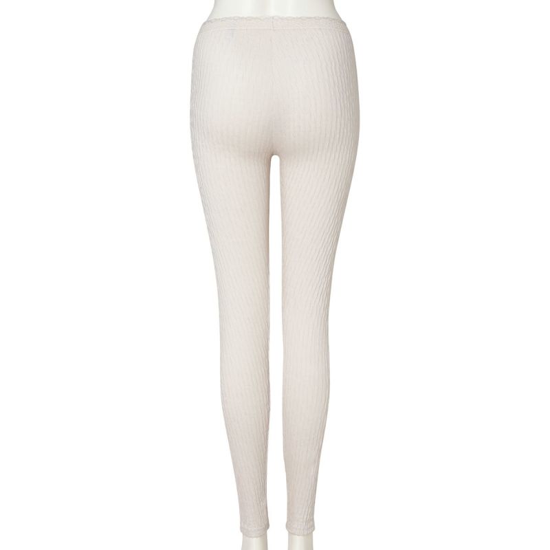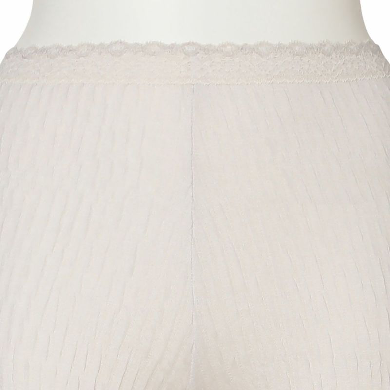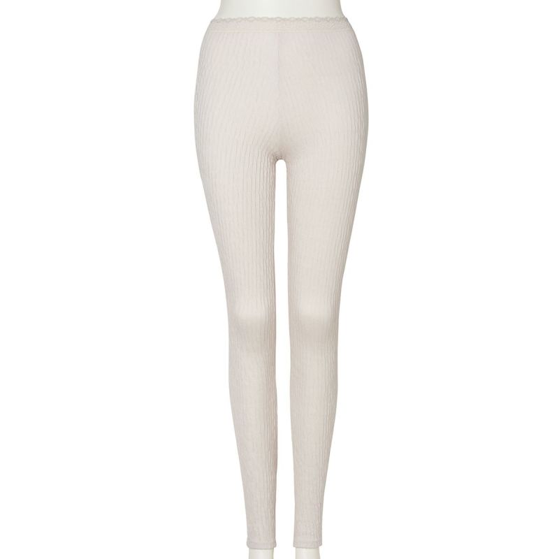 寒い季節に大活躍のロングカルソン。ポイントのウエストレースは生地の上に重ねているためレースが直接肌に当たらない優しい仕様に。お腹から足首まであたためる10分丈。